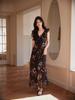 Falda de Seda con Manga de Hoja de Loto y Cuello en V Verano Dulce Estilo Viajero Resort Falda Larga Floral Vestido de Atmósfera Romántica