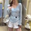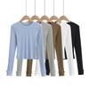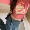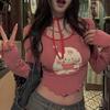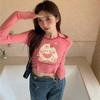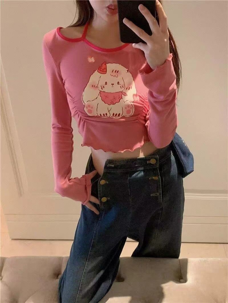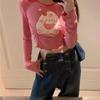 2025 Deseo Puro Camiseta de Manga Larga con Estampado de Dibujos Animados de Chica Caliente para Mujer, Diseño de Borde Ondulado, Corte Ajustado, Top Corto