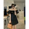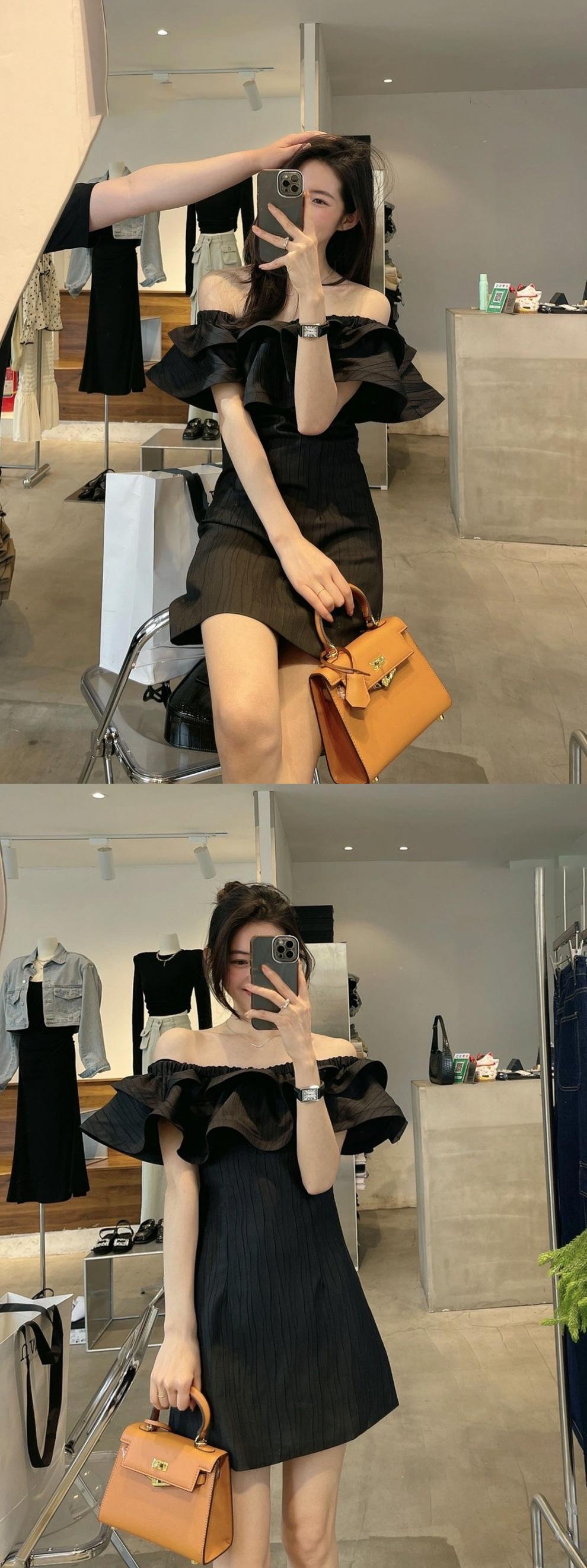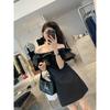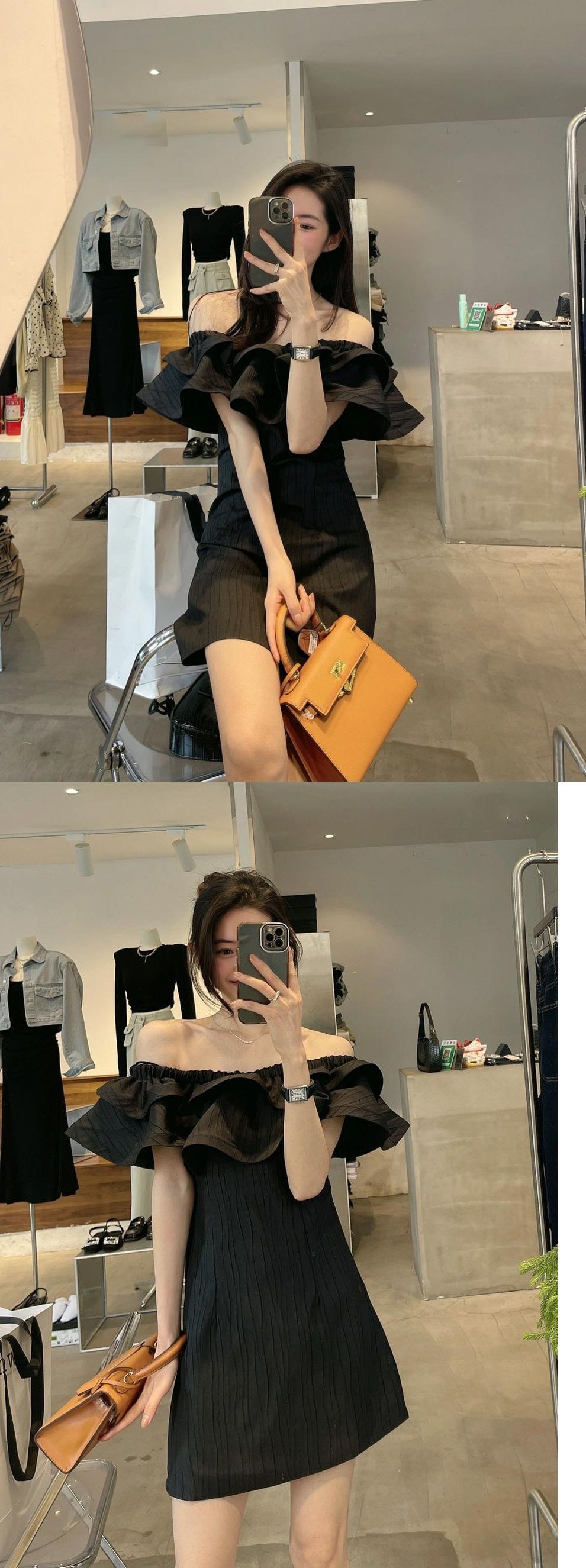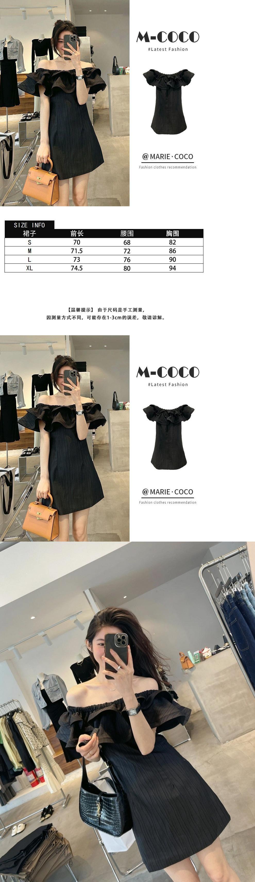 Ropa de Verano para Mujer 2023 Talla Grande Chica Gorda de Alta Gama Hombro Descubierto Cintura Adelgazante Look Estilo Lujuria Pura Vestido con Volantes