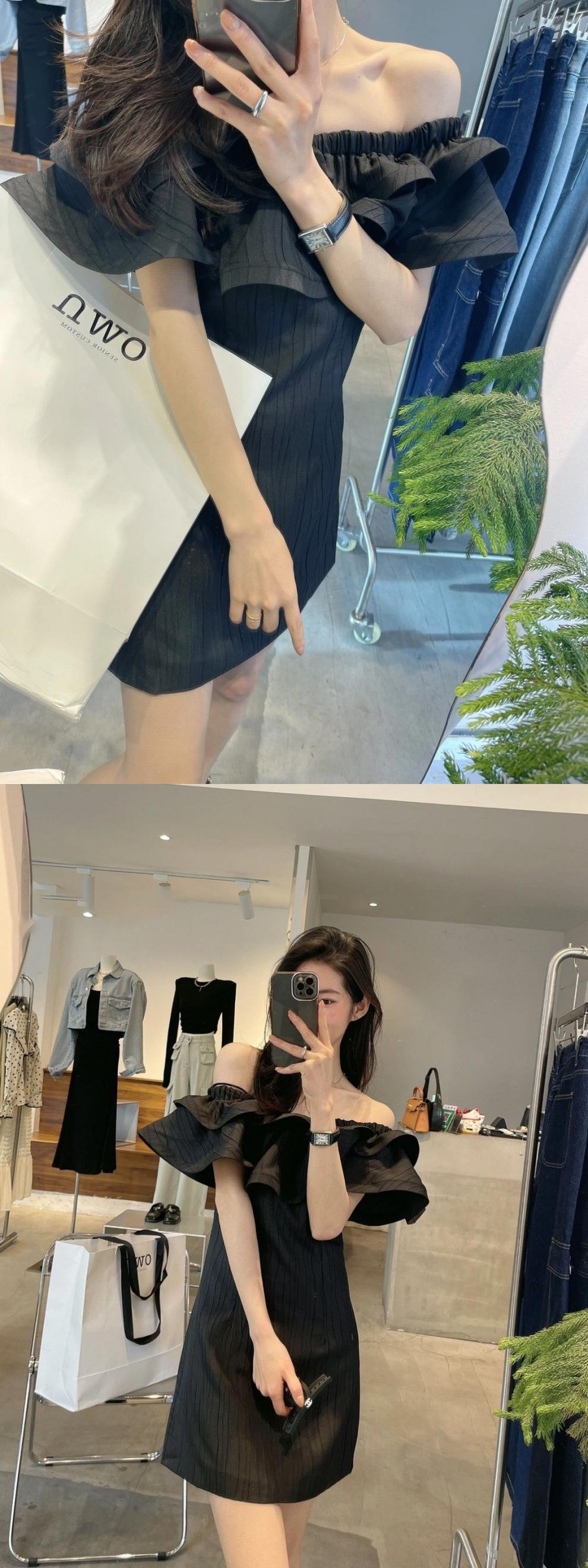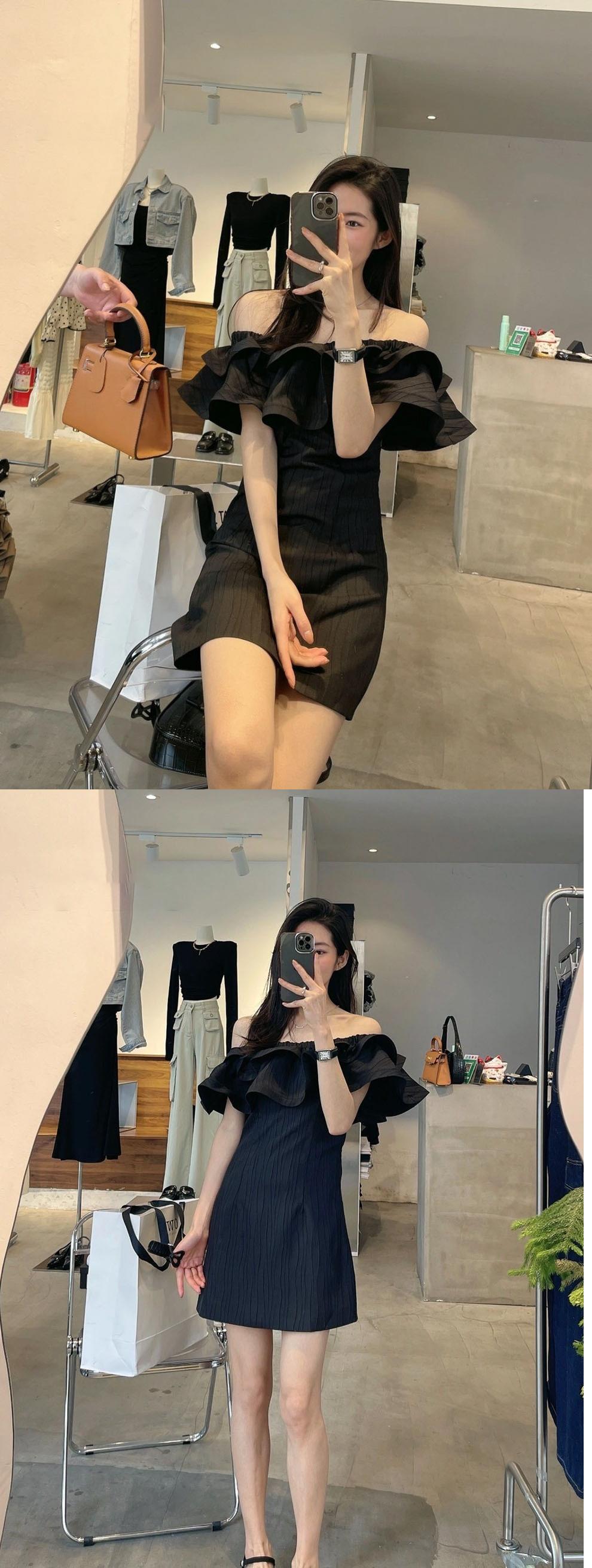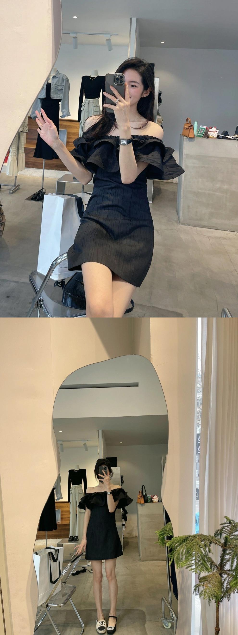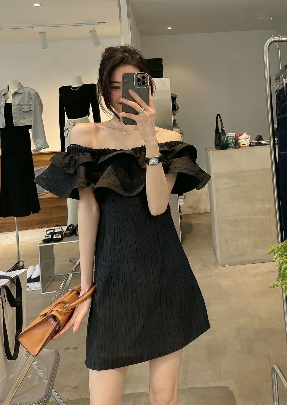 Ropa de Verano para Mujer 2023 Talla Grande Chica Gorda de Alta Gama Hombro Descubierto Cintura Adelgazante Look Estilo Lujuria Pura Vestido con Volantes