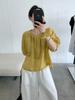 Tg con Liga para el Cabello Camisa de Ramio Estilo Dulce para Mujer 2025 Verano Nuevo Estilo Plisada Reductora de Edad Manga Abullonada Top 24872