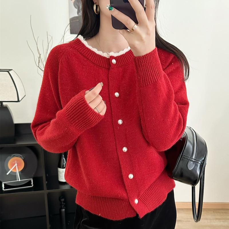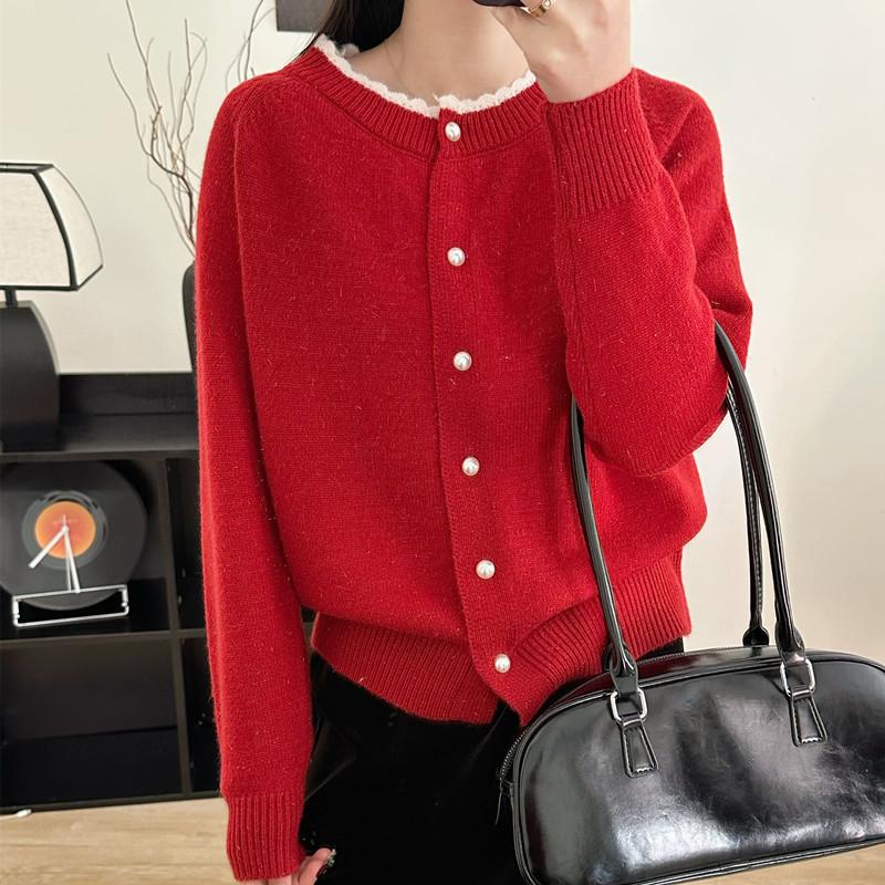 Cárdigan de Punto para Mujer Primavera 2025 Nuevo Suelto Corto Nicho Chic Moda de Alta Gama Estilo Occidental Top Rojo