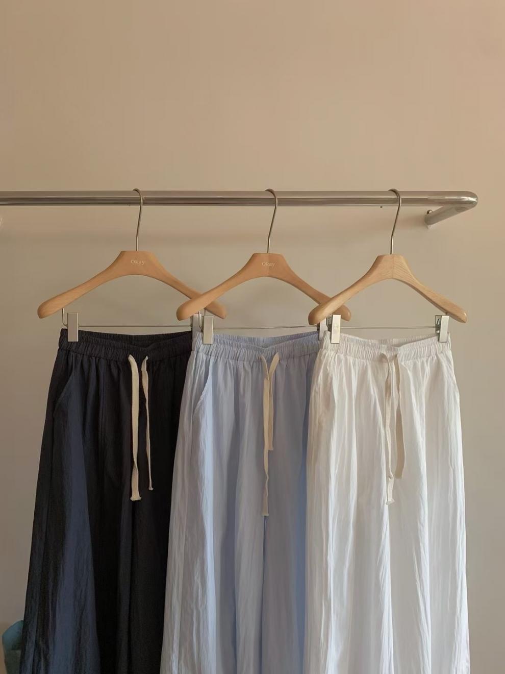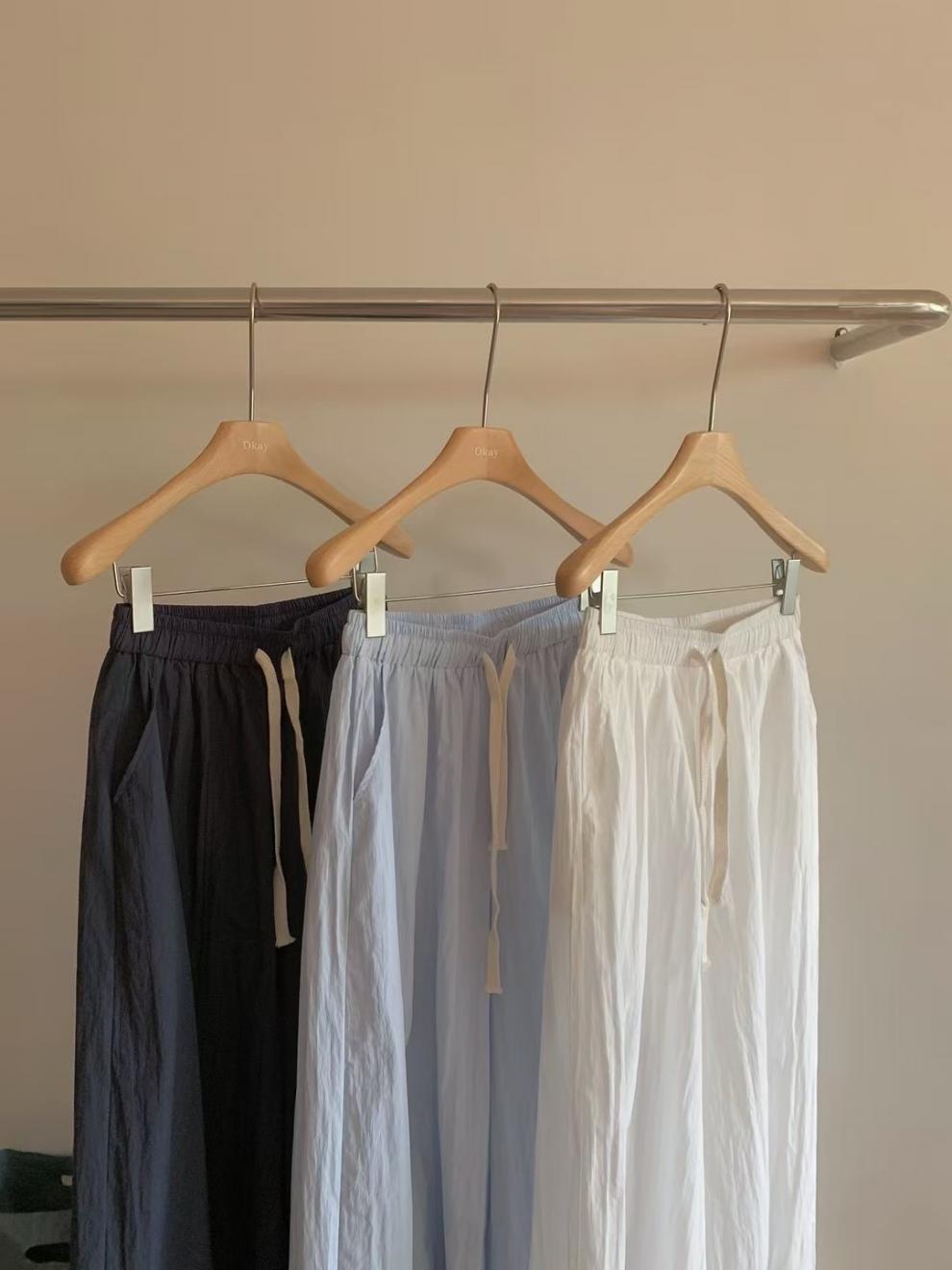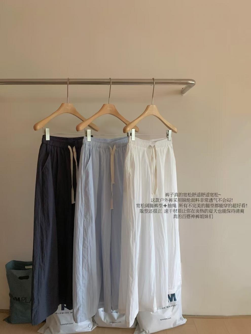 Foto real de Verano 2025 Nuevo Estilo Coreano Simple y Versátil Cintura Elástica Cordón Pantalones Rectos Sueltos Adelgazantes Casuales de Pierna Ancha