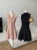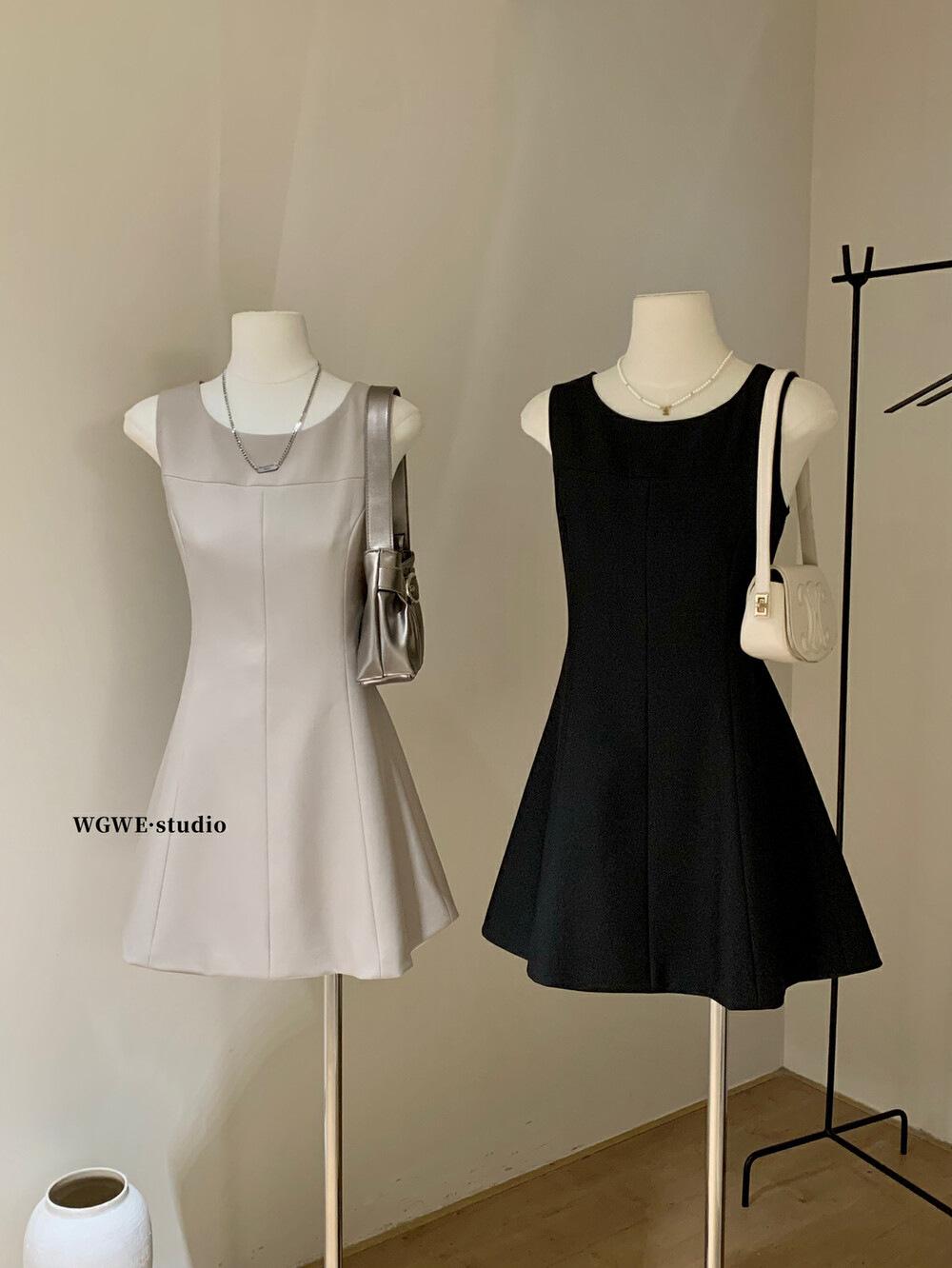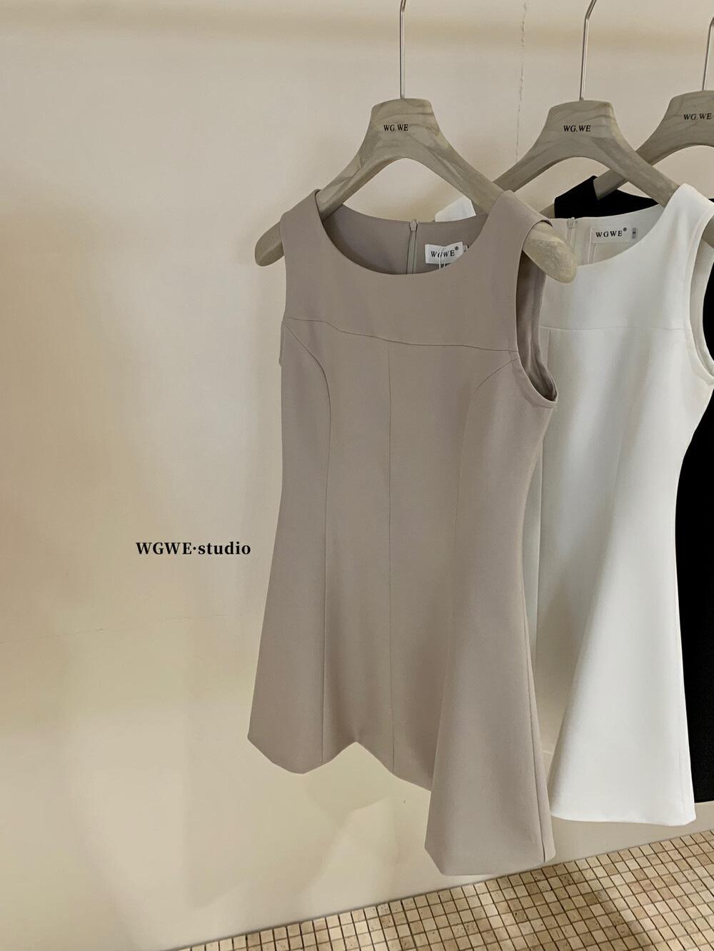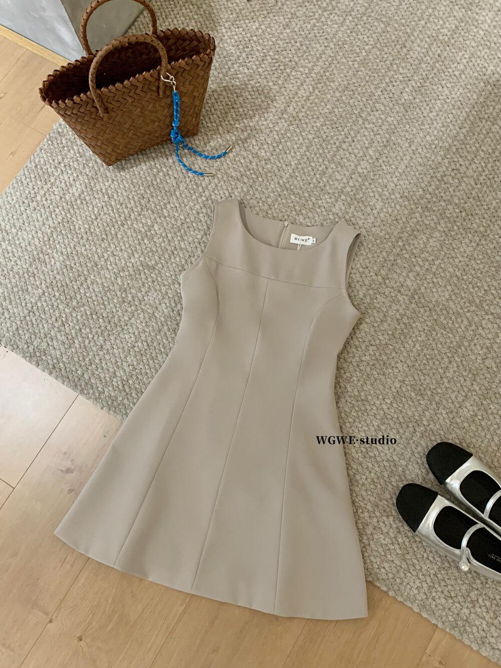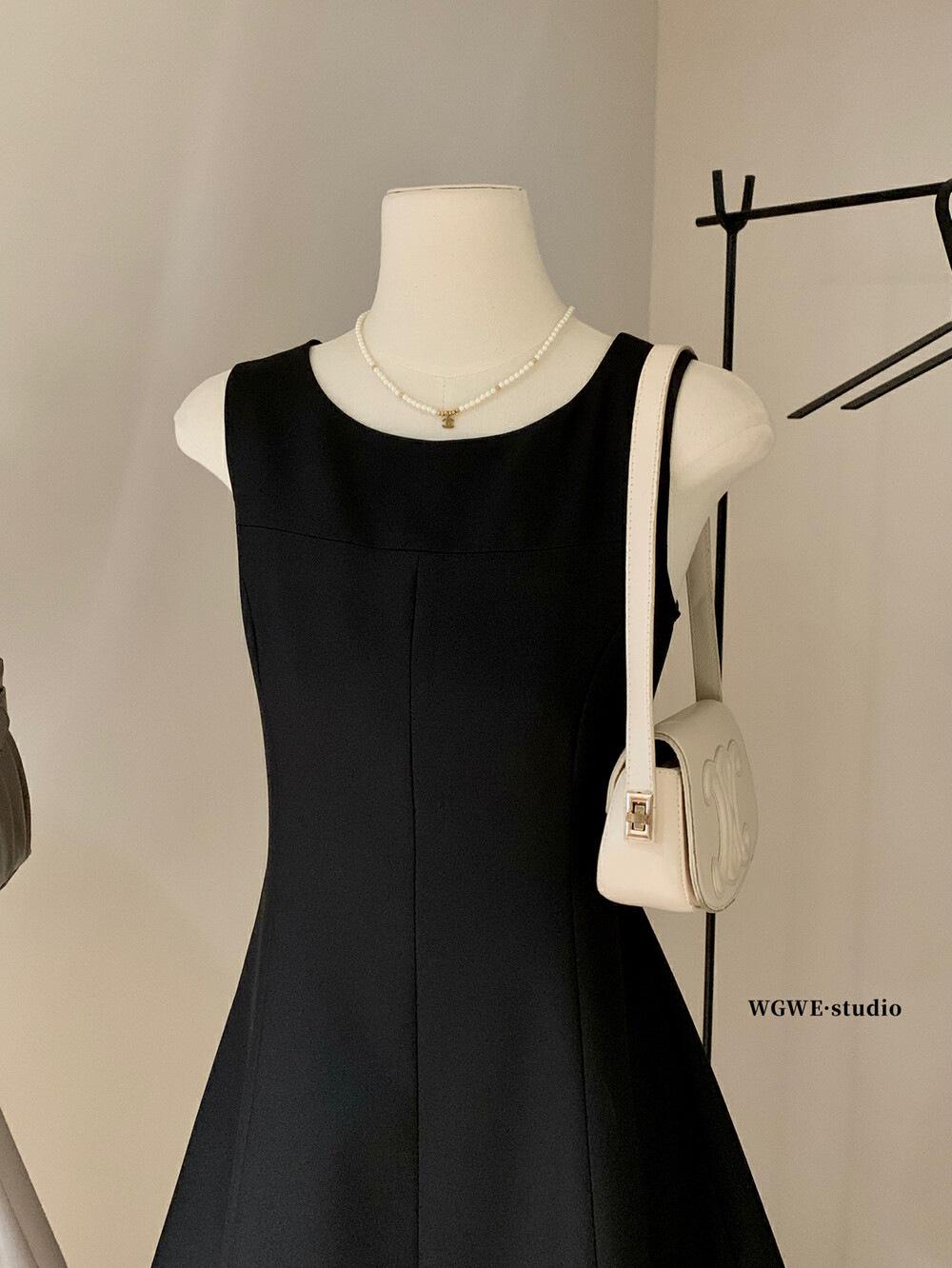 WGWE Estilo Francés Suave Sin Mangas Verano Sentido de Gama Alta Temperamento Falda A-Line Plisada con Cintura de Vestido para Mujer W5723