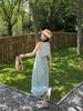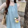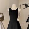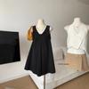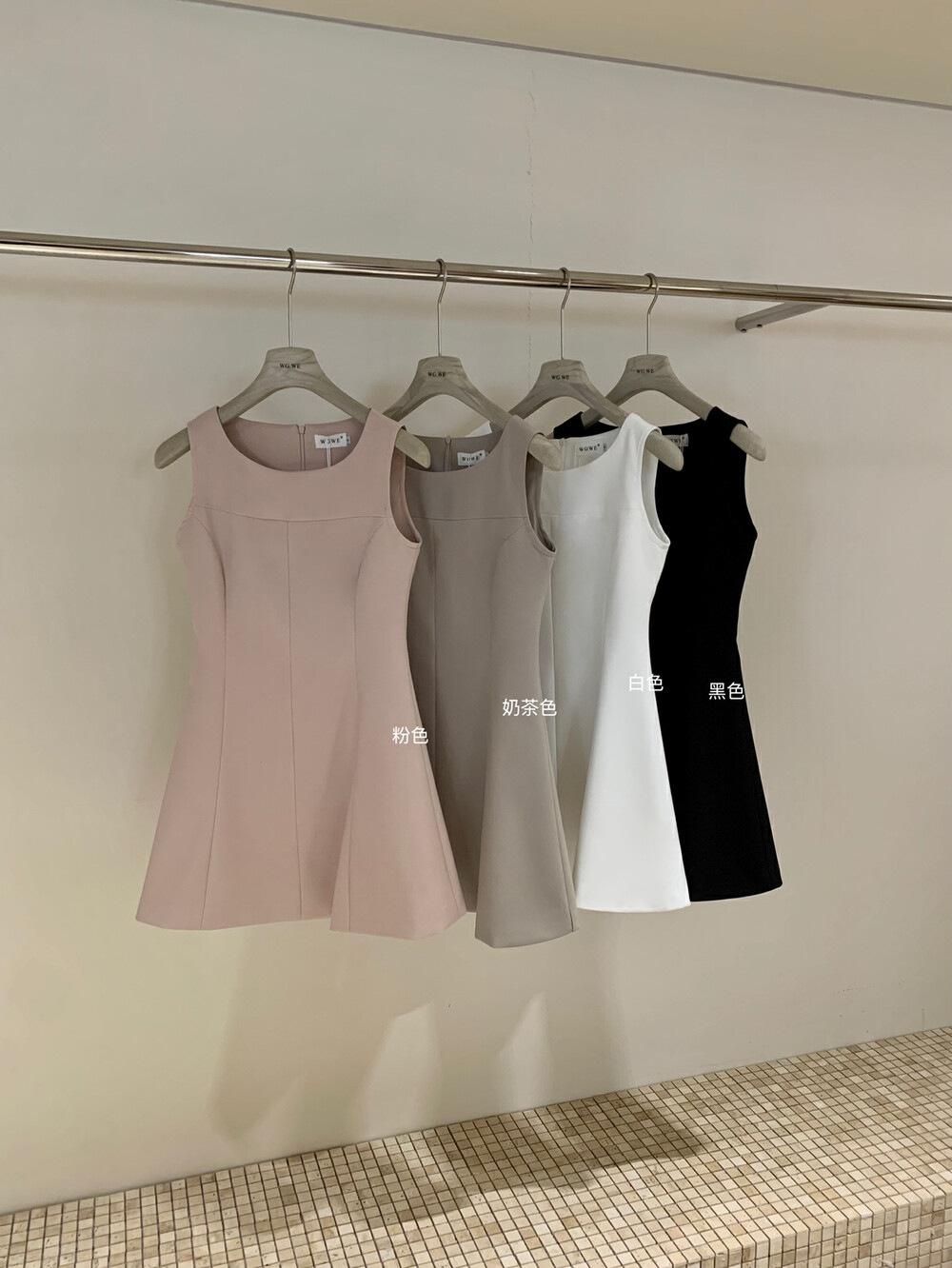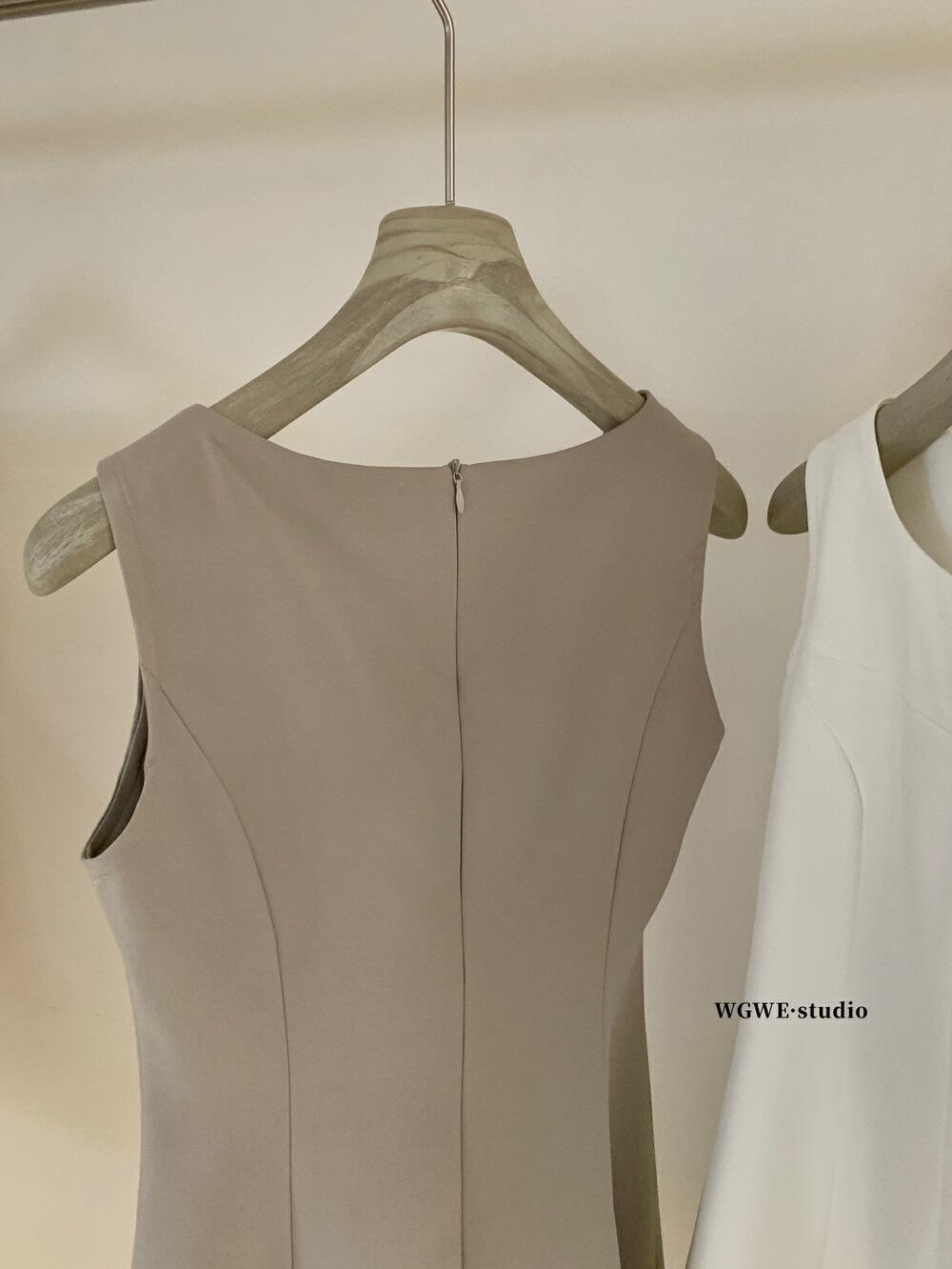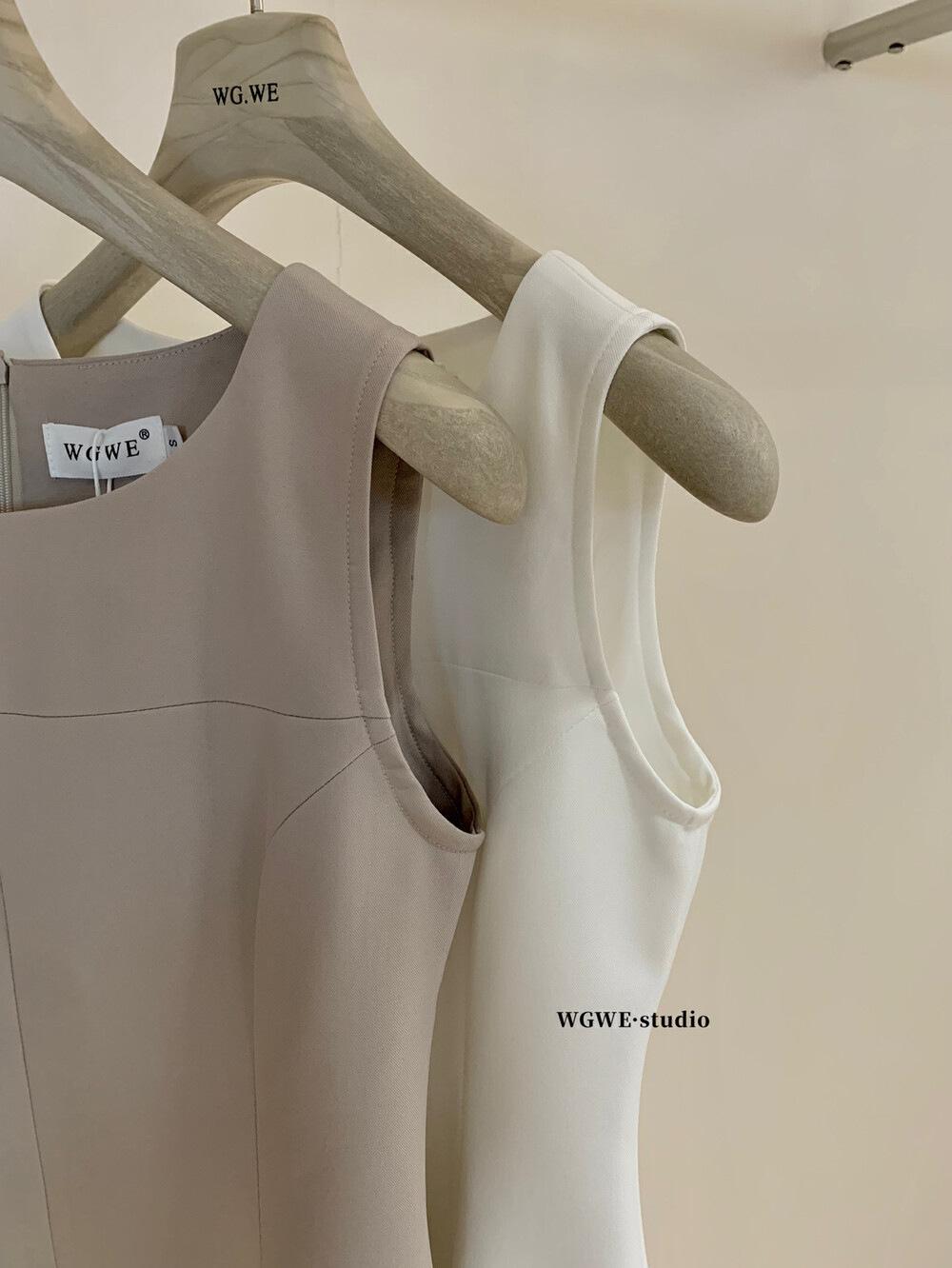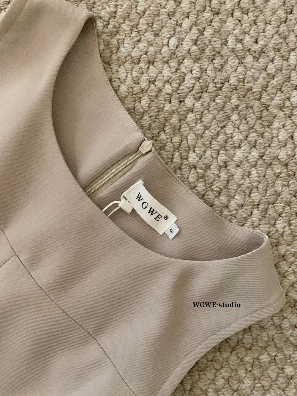 WGWE Estilo Francés Suave Sin Mangas Verano Sentido de Gama Alta Temperamento Falda A-Line Plisada con Cintura de Vestido para Mujer W5723