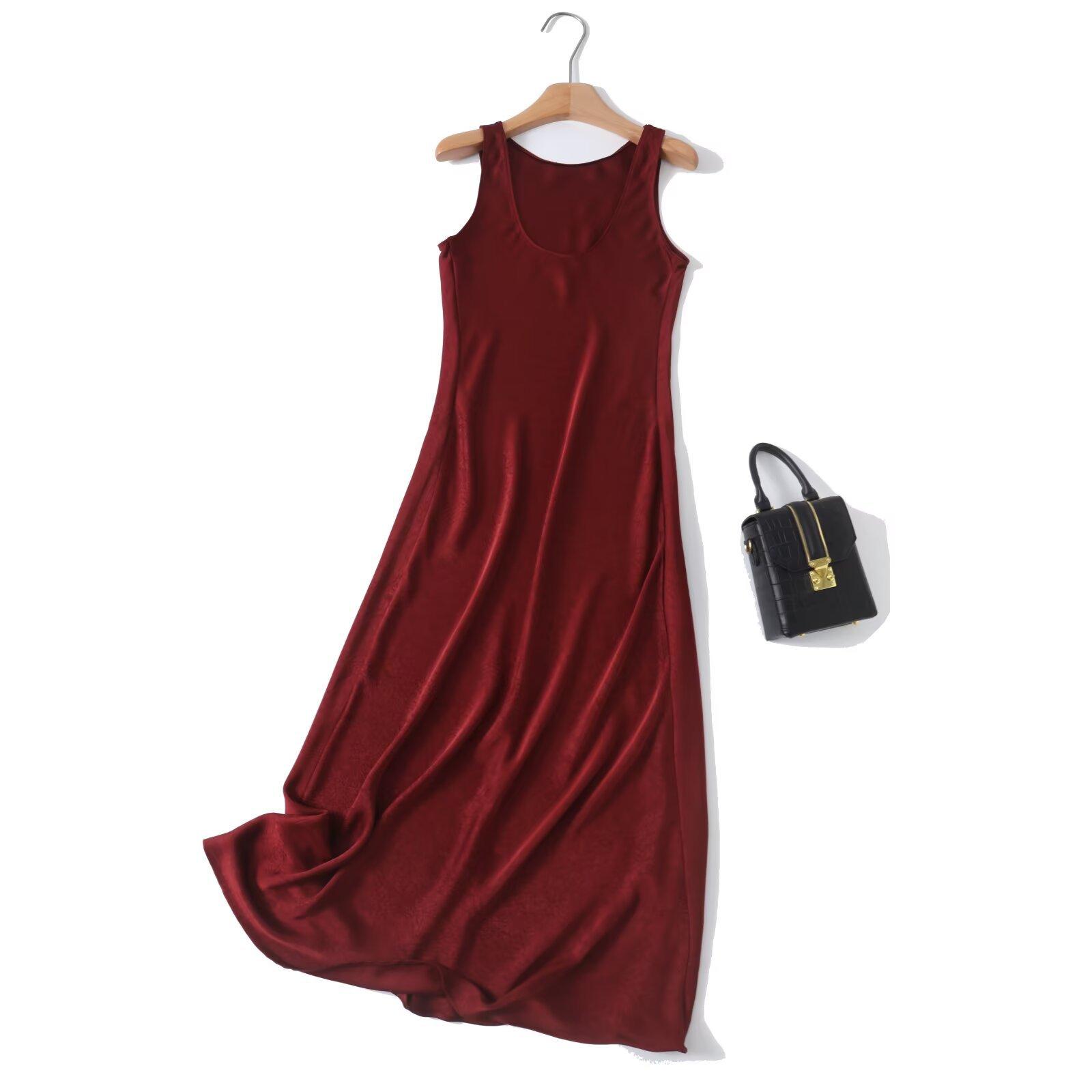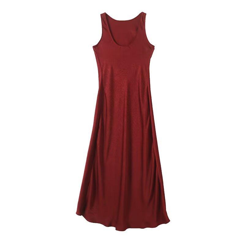 Vestido casual largo sin mangas de moda sexy con espalda descubierta y cuello redondo para mujer europeo y americano transfronterizo Primavera y Verano 2025 Nuevo