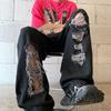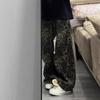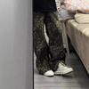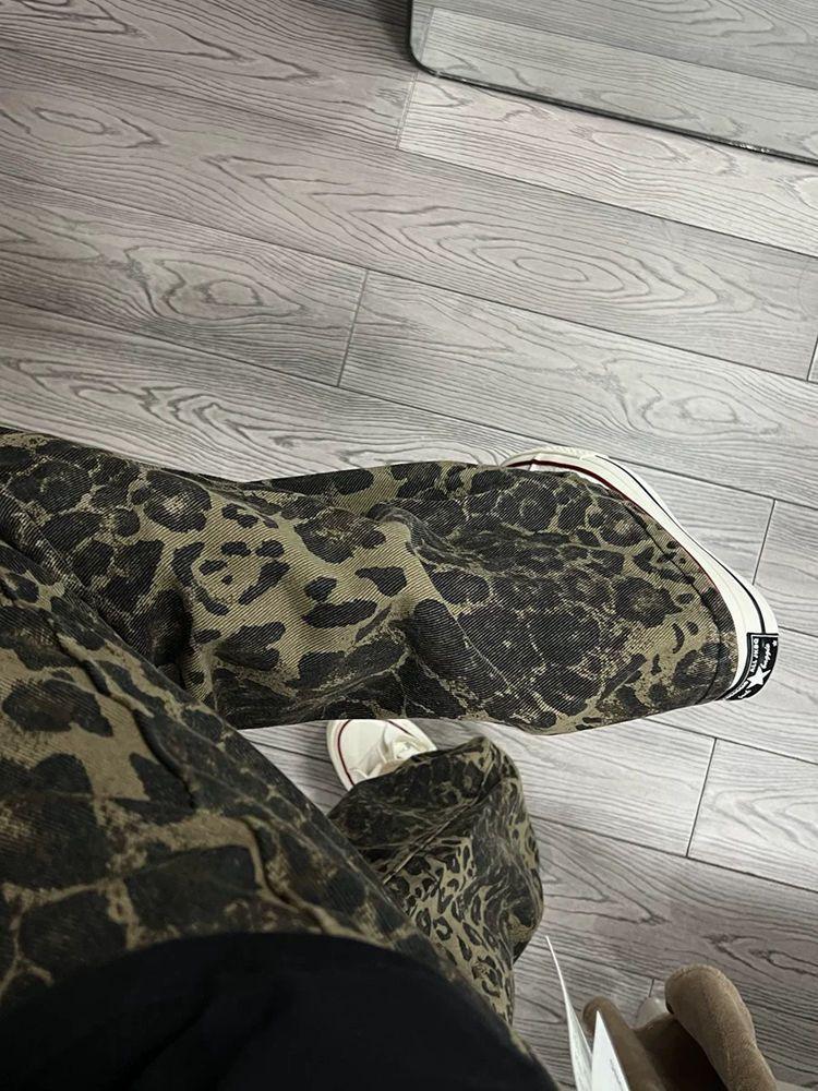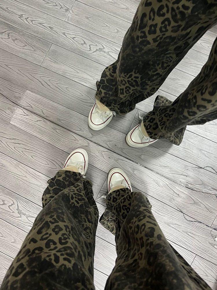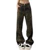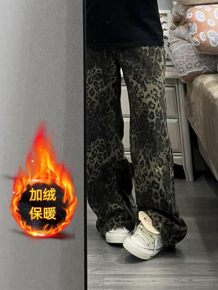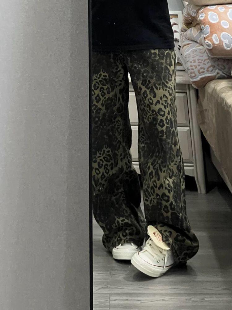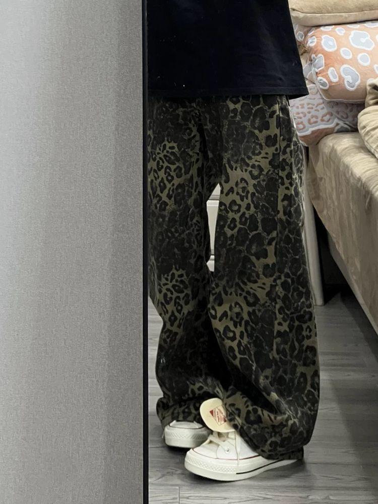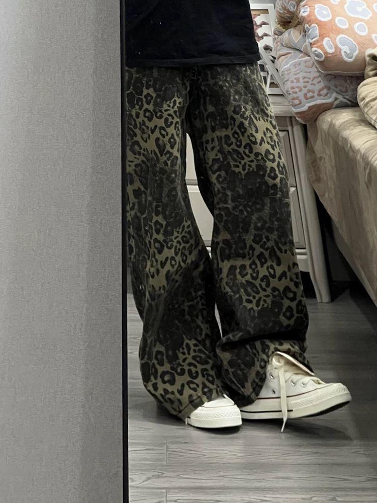 Jeans Vintage Americanos con Estampado de Leopardo para Mujer Otoño Altos en Capas Diseño de Nicho Adelgazantes Pierna Ancha Sueltos Rectos