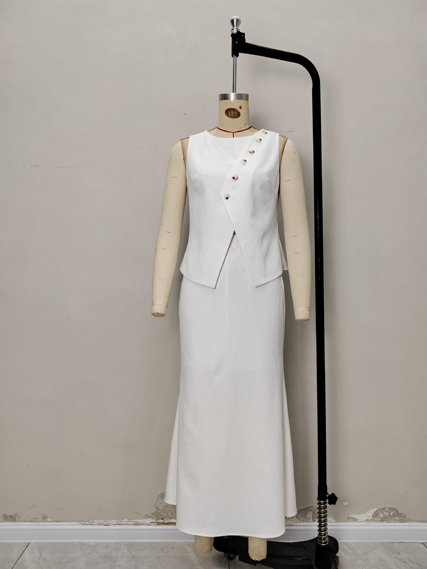 Sitio Independiente Sur Aceite Alto Personalizado Pra Sencillo Versátil Femenino Vestido Manga Blanca Leche