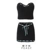 Vestido Mini de Estilo Socialité de Lujo Simple Europeo y Americano, Cuello Redondo, Manga Corta, Bloque de Color Blanco y Negro, Decoración de Botones en la Espalda