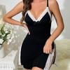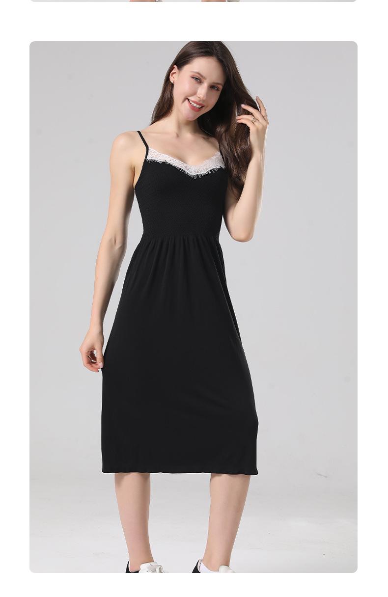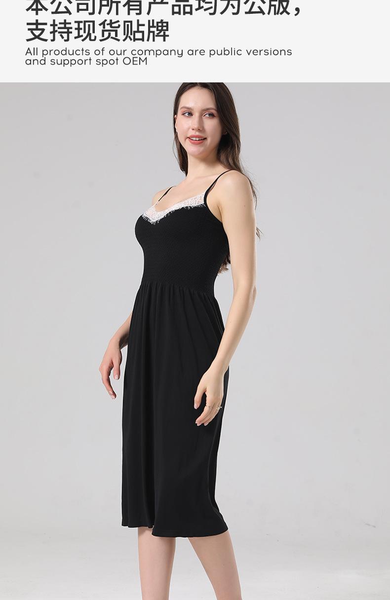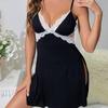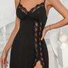Verano Amazon Comercio Exterior Camisón de Tirantes Encaje Negro Espalda Grande Descubierta Sexy Vestido Pijama Ropa de Casa