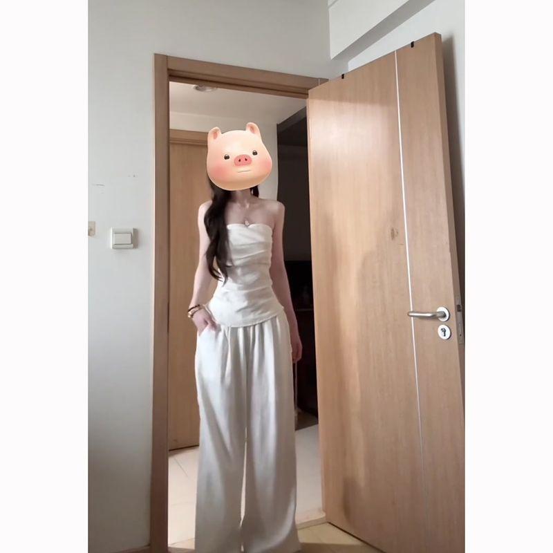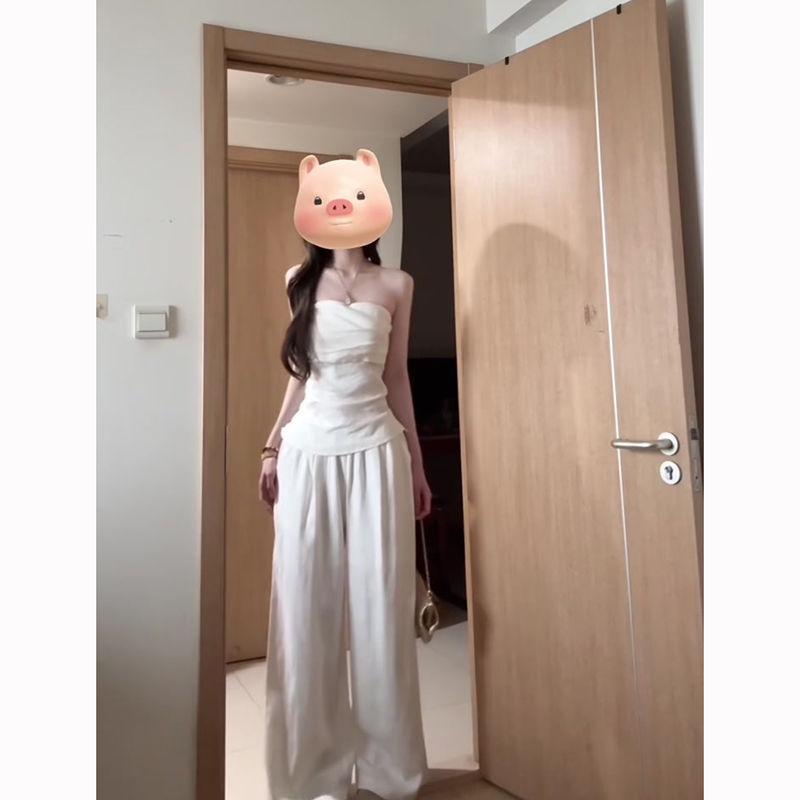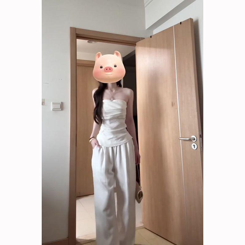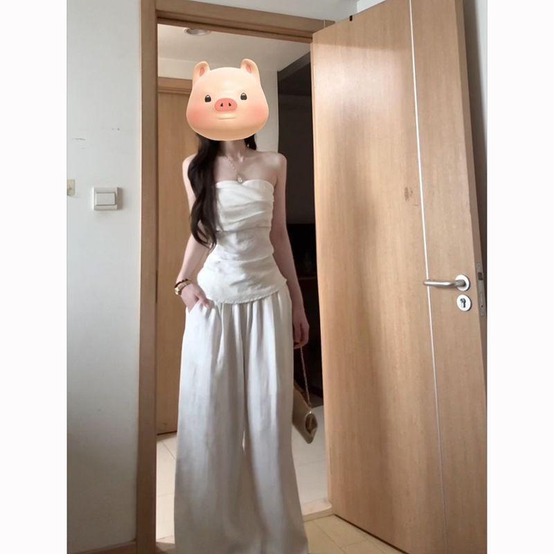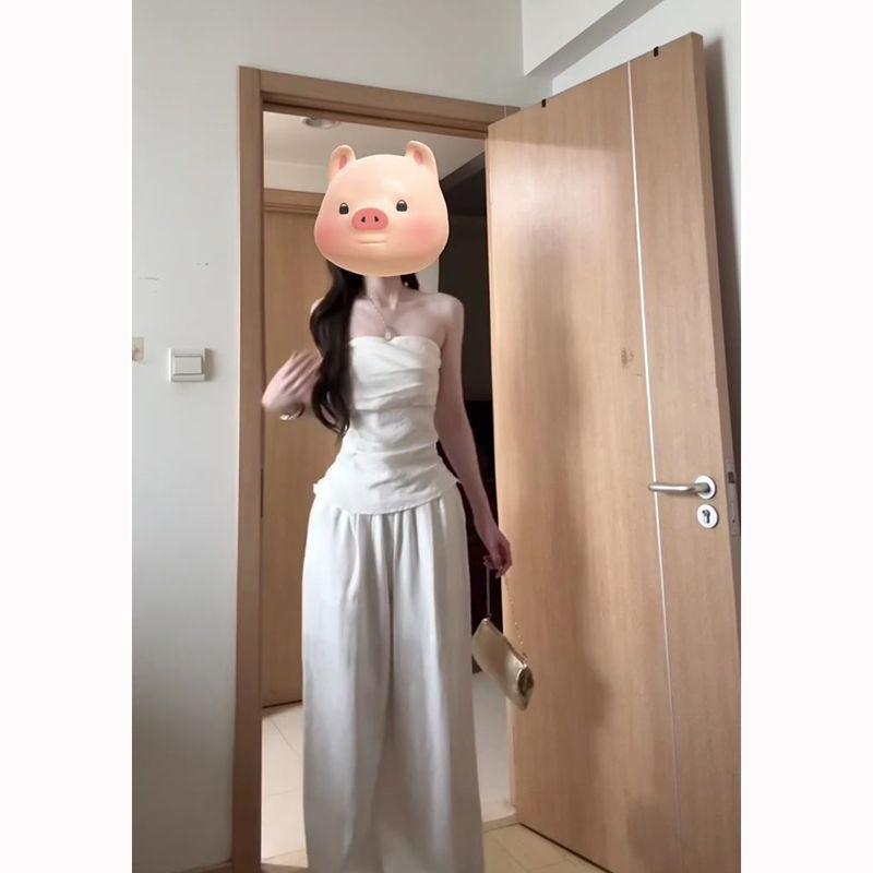 Top Tubo Plisado Romántico Francés para Mujer 2025 Verano Moda Elegante Look Delgado Combinable Top Moderno