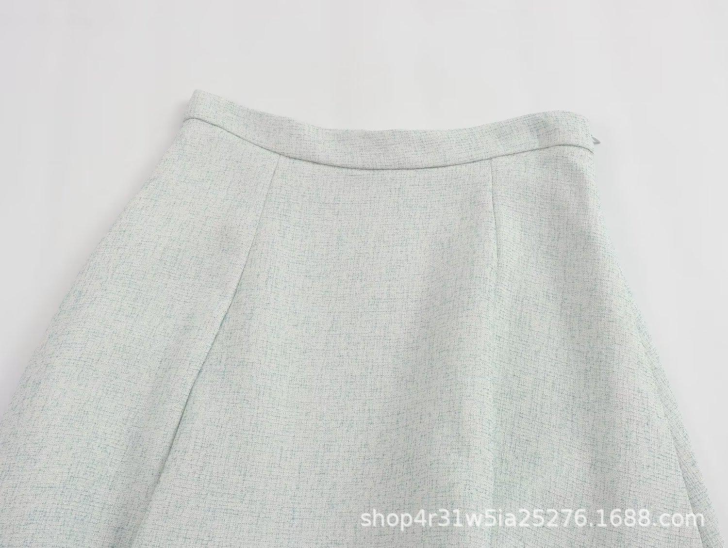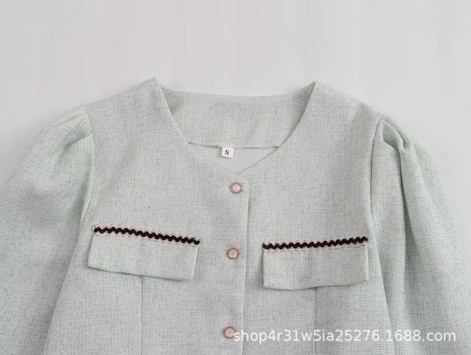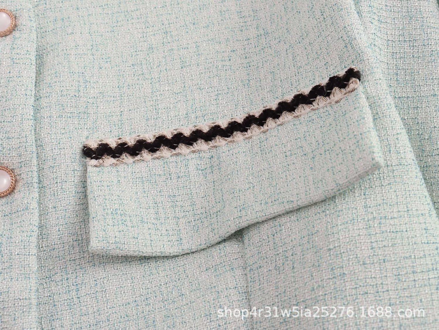 Estilo Europeo y Americano 2023 Otoño Nuevo Nicho Francés Chanel Cuello en V Botón Bolsillo Top Falda Cintura Alta