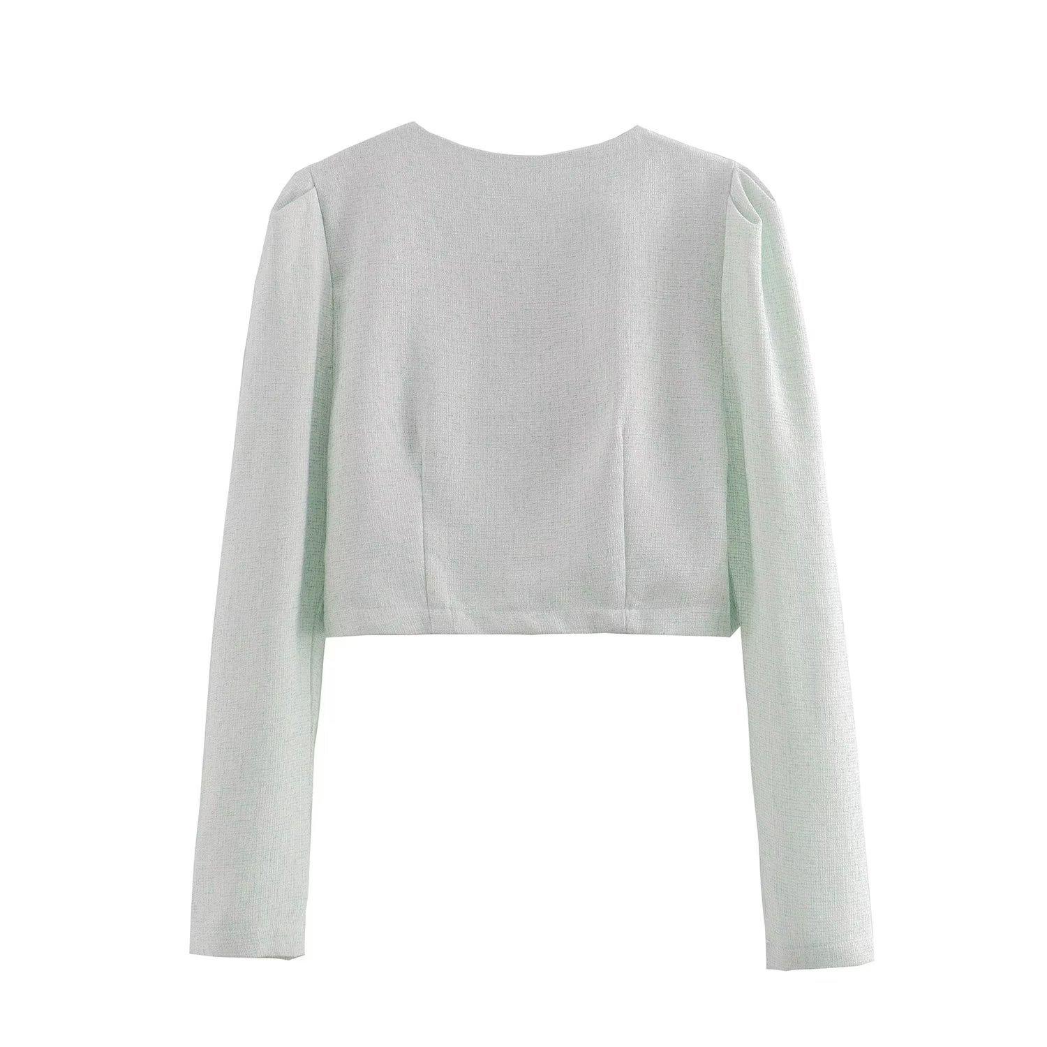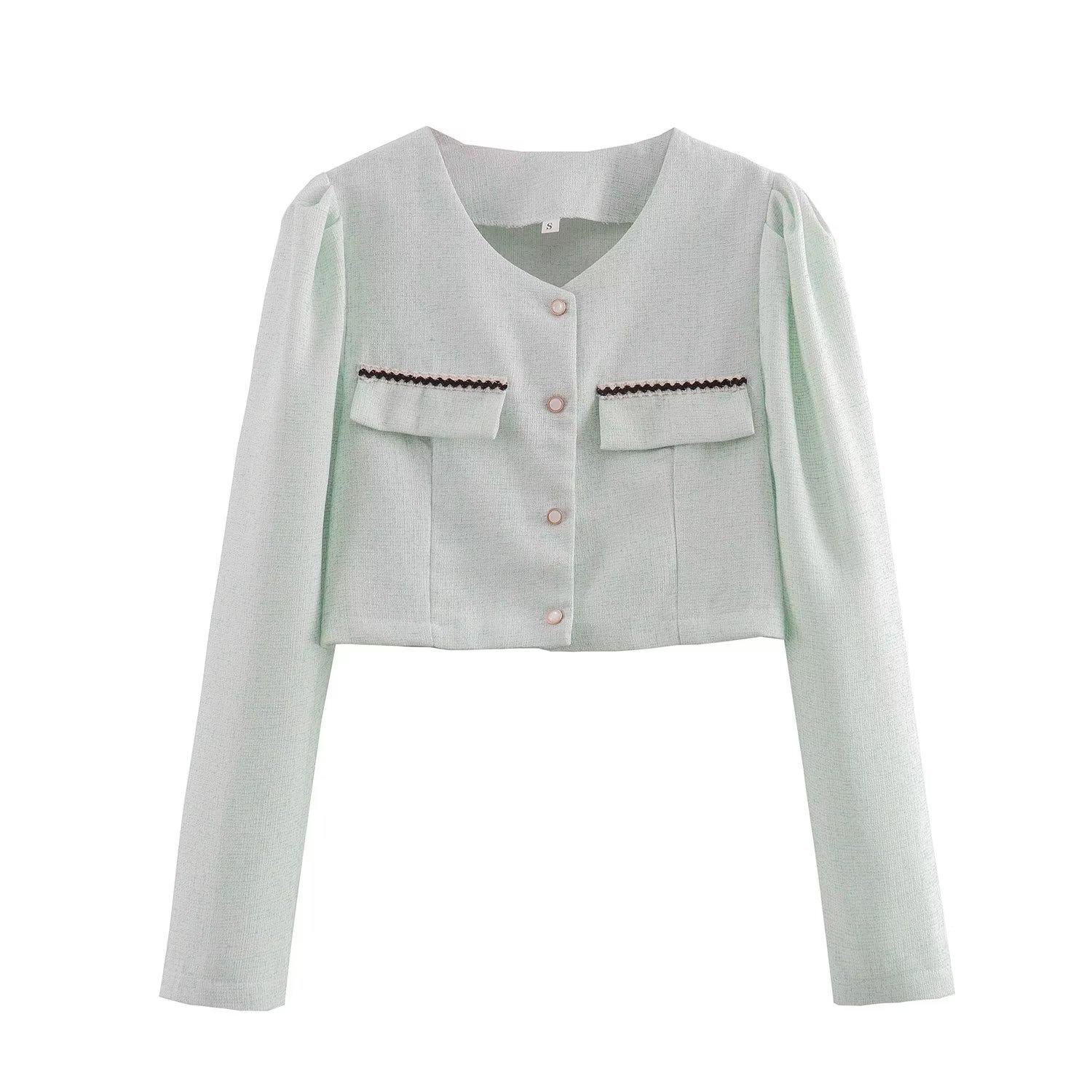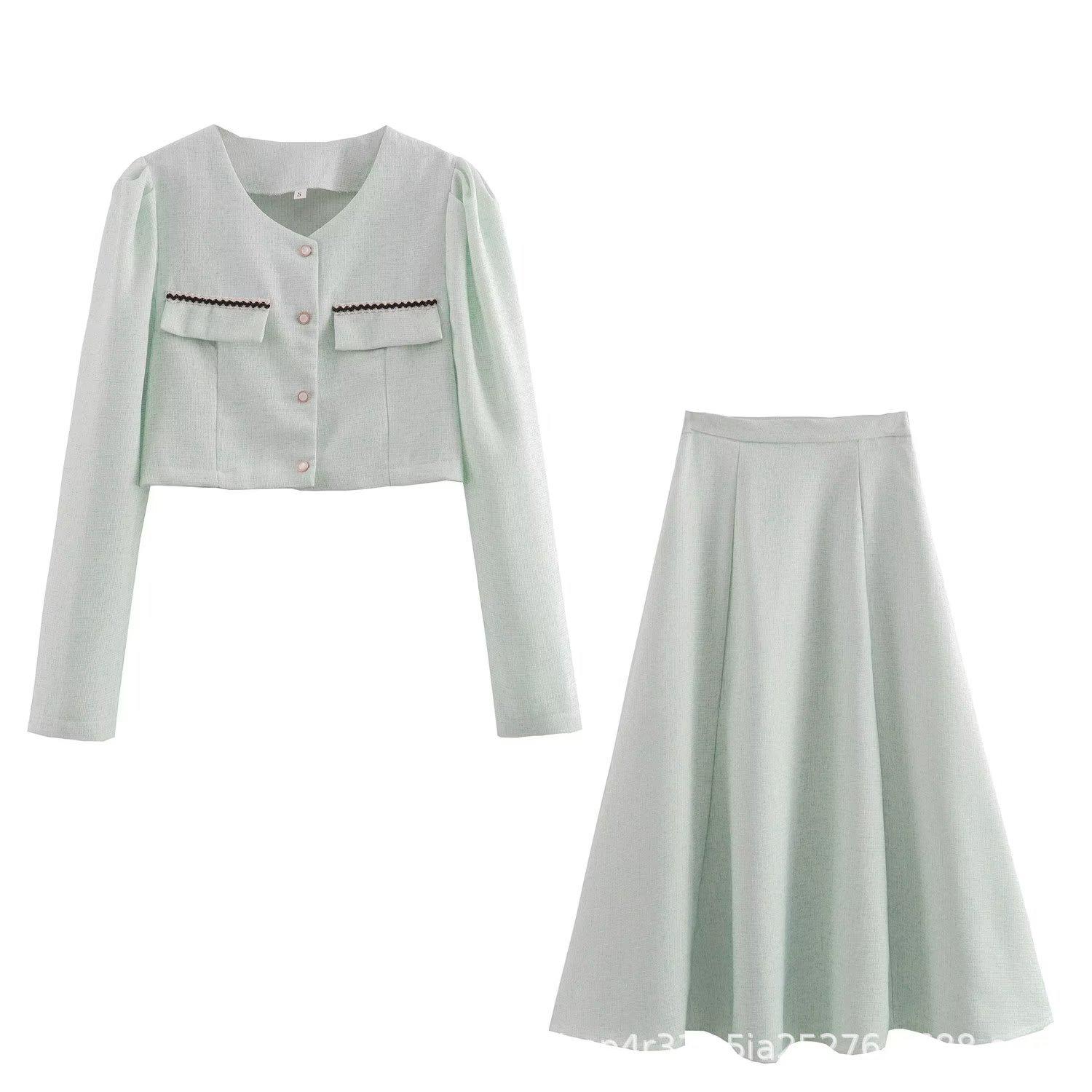 Estilo Europeo y Americano 2023 Otoño Nuevo Nicho Francés Chanel Cuello en V Botón Bolsillo Top Falda Cintura Alta