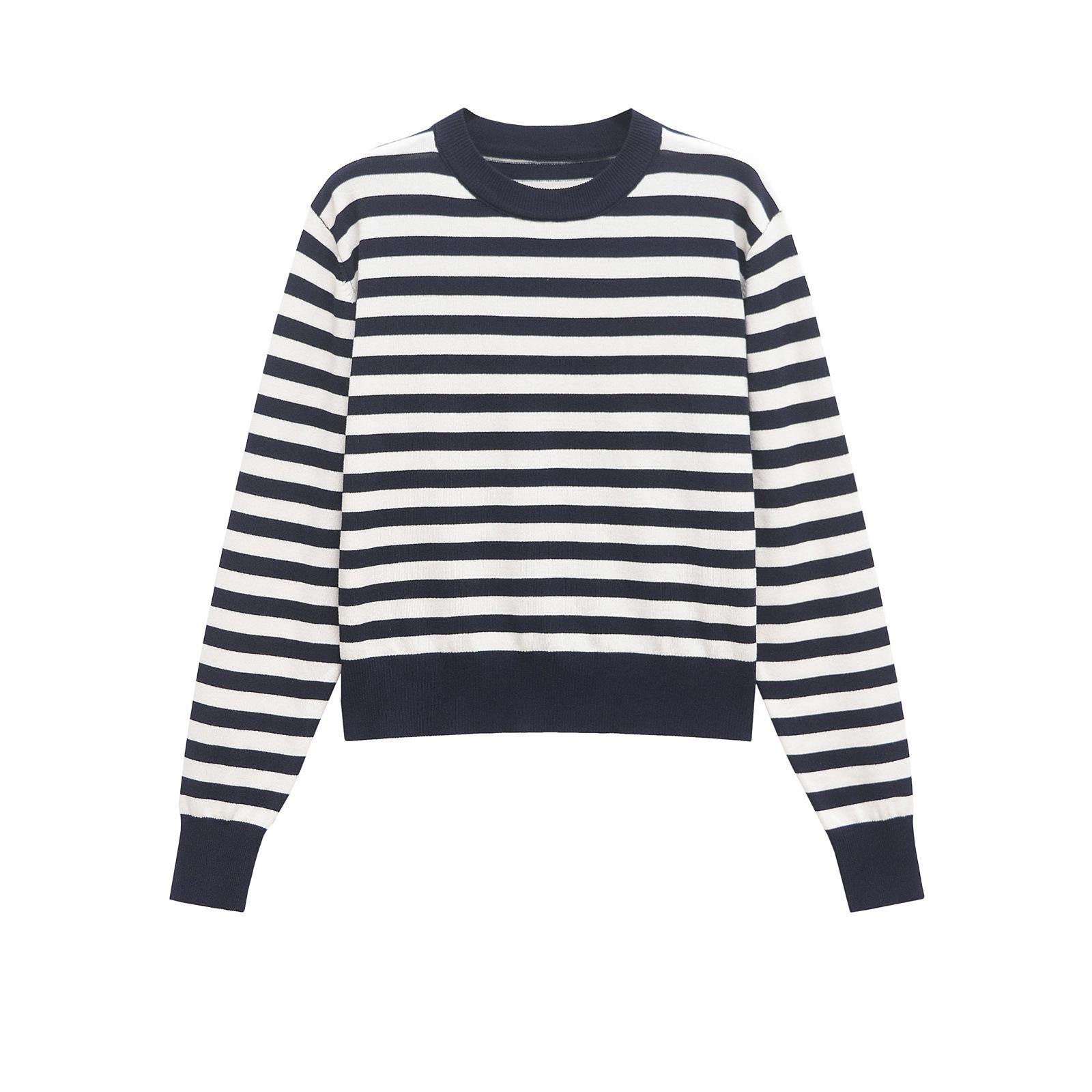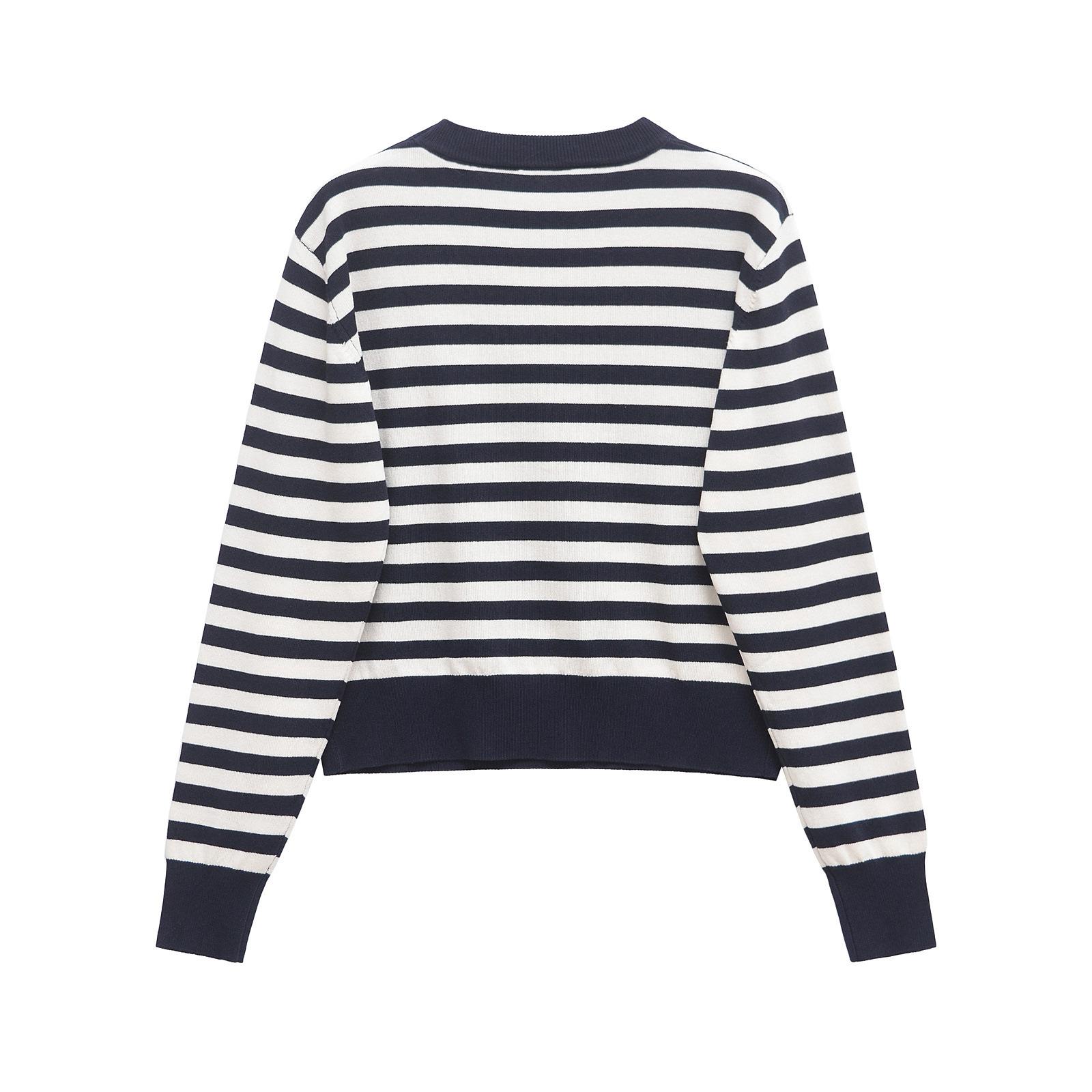 Ropa de Mujer Primavera 2025 Nuevo Estilo Europeo y Americano de Manga Larga Rayas Casual Deportivo Corto Tejido de Punto 5536009