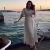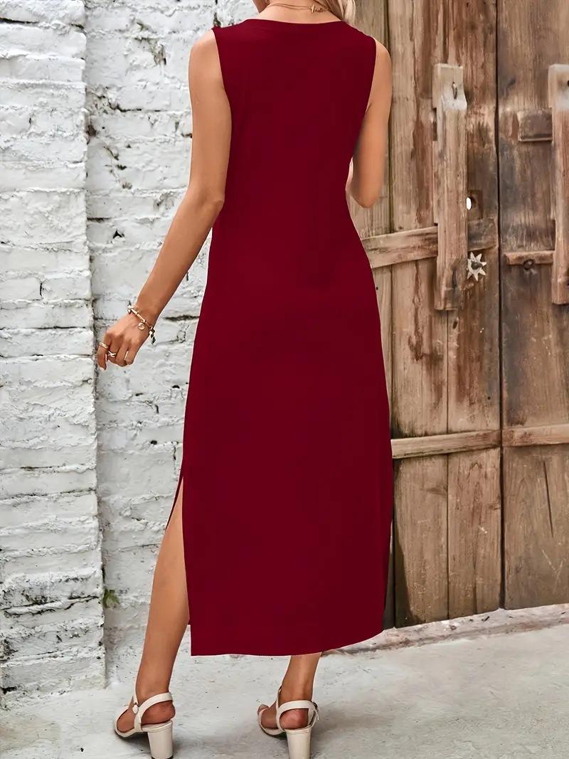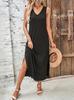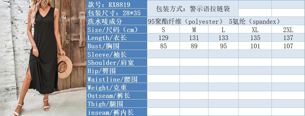 Vestido nuevo de moda simple para mujer de primavera y verano 2024 transfronterizo de Amazon europeo y americano sin mangas con cuello en V de color sólido