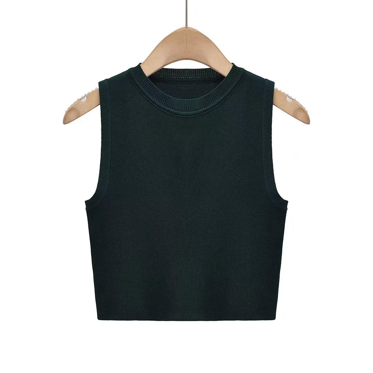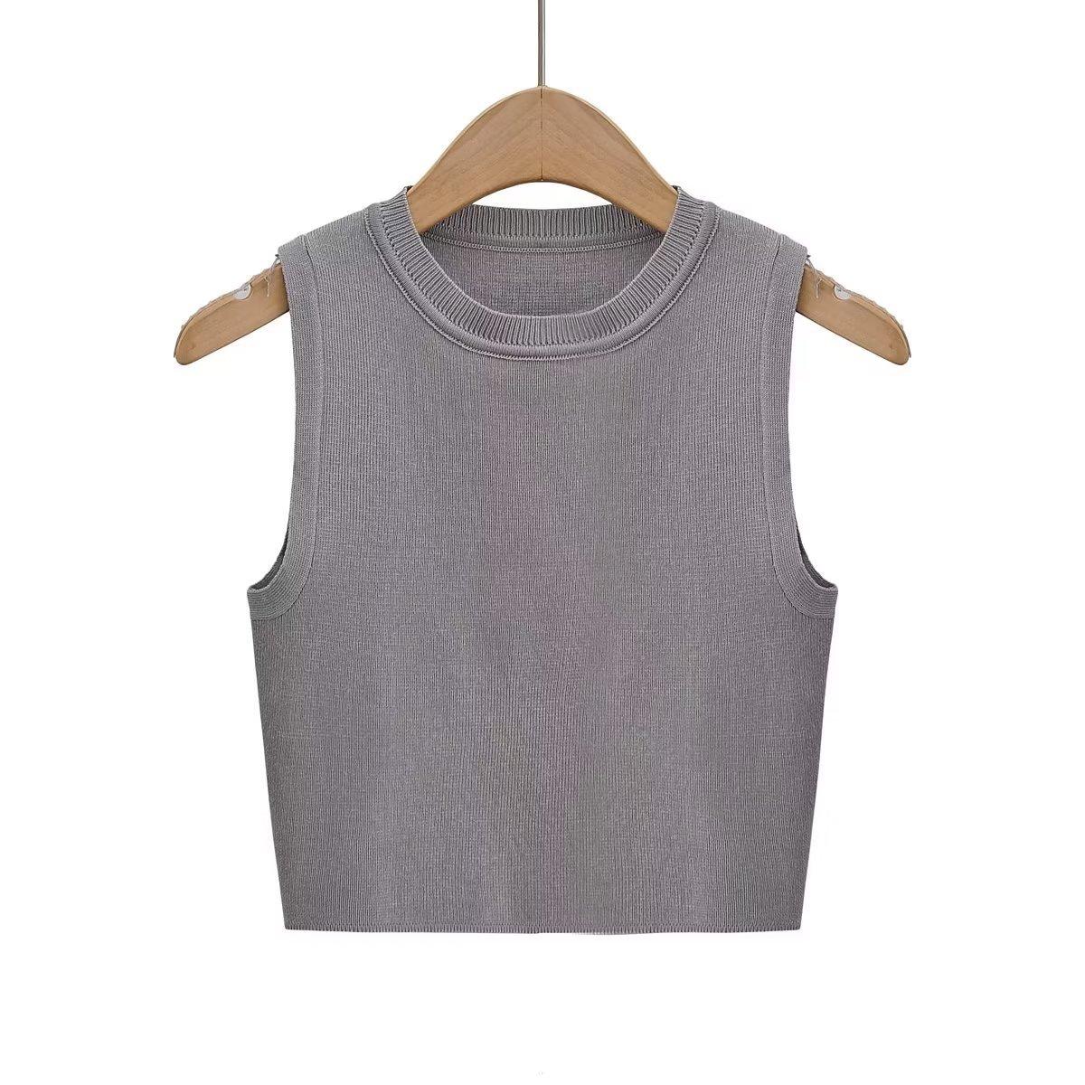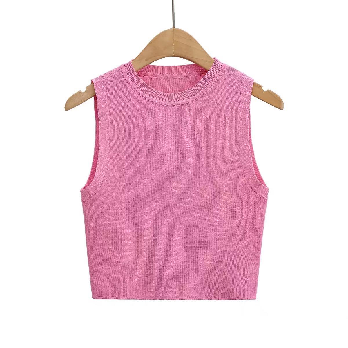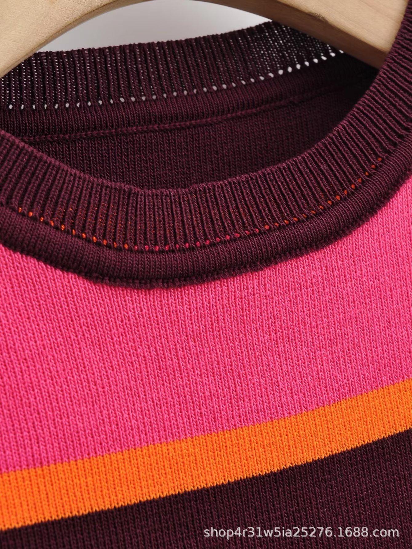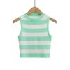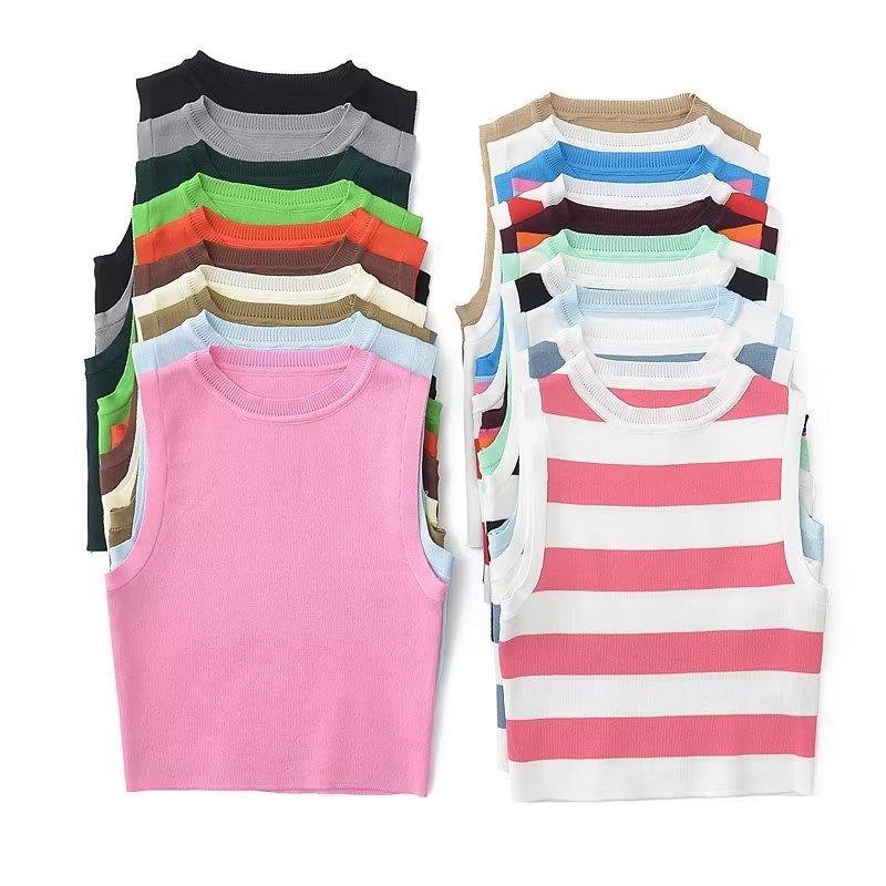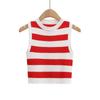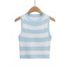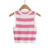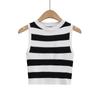 Estilo europeo y americano 2023 Otoño Nuevo delgado ajustado cuello redondo sin mangas rayas tejido pequeño Chaleco para mujer al por mayor