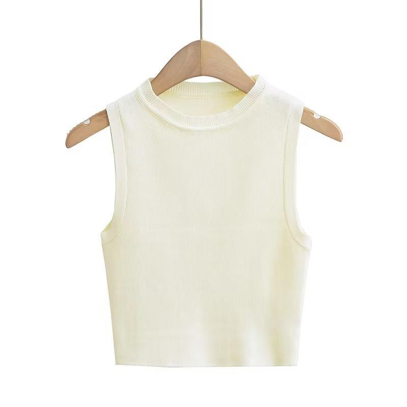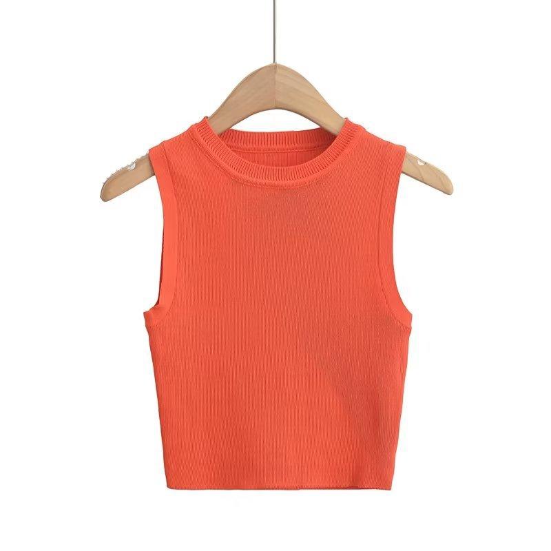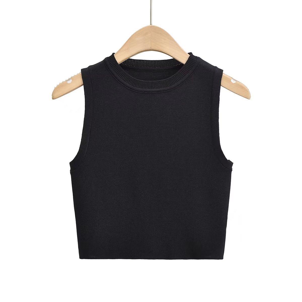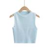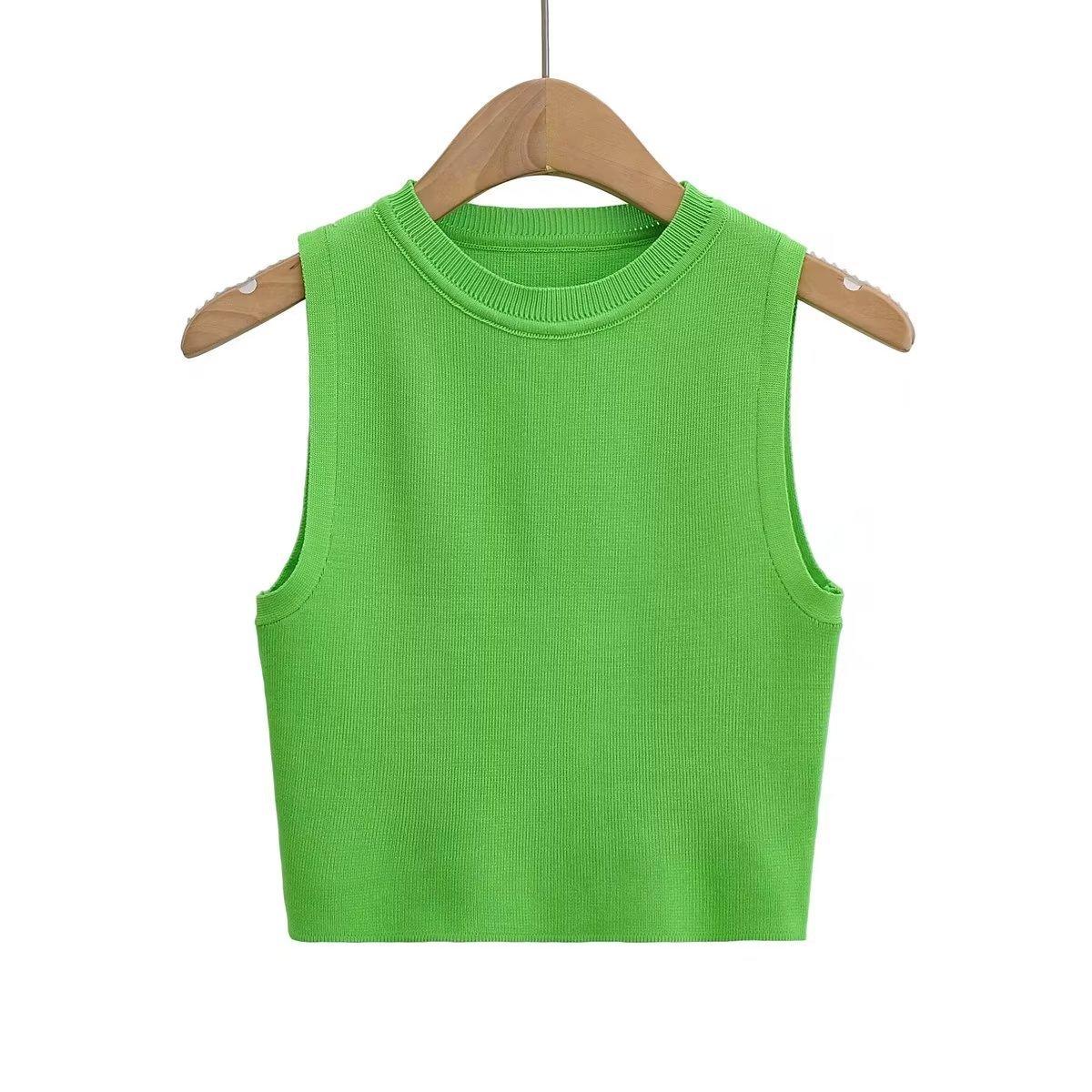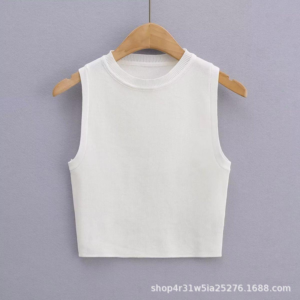 Estilo europeo y americano 2023 Otoño Nuevo delgado ajustado cuello redondo sin mangas rayas tejido pequeño Chaleco para mujer al por mayor
