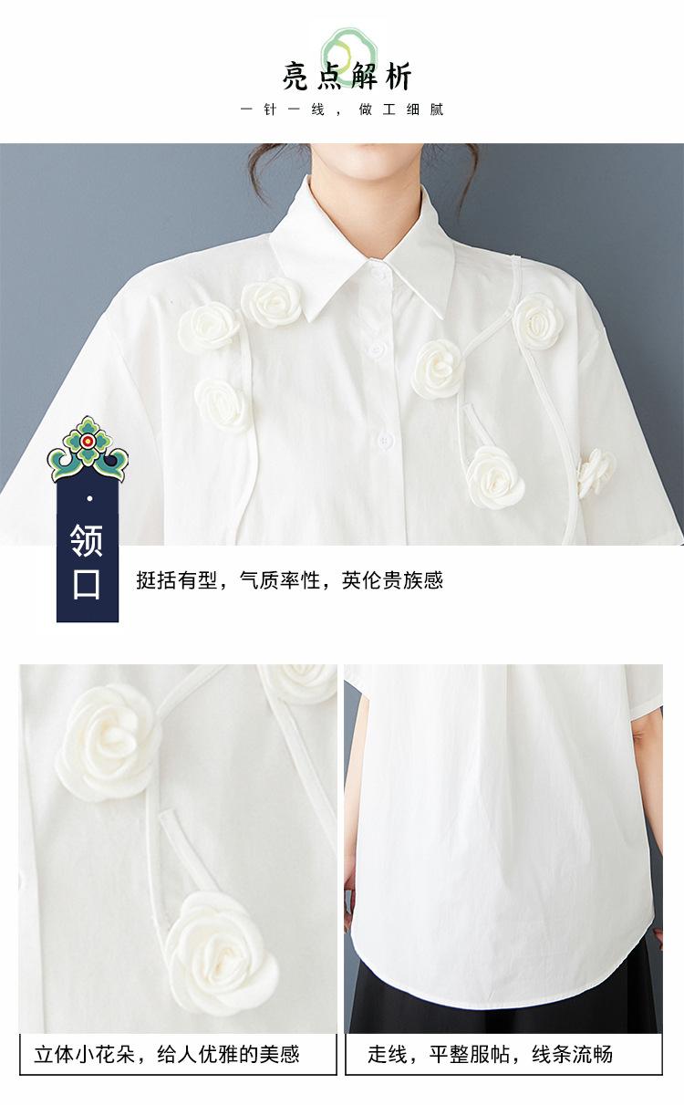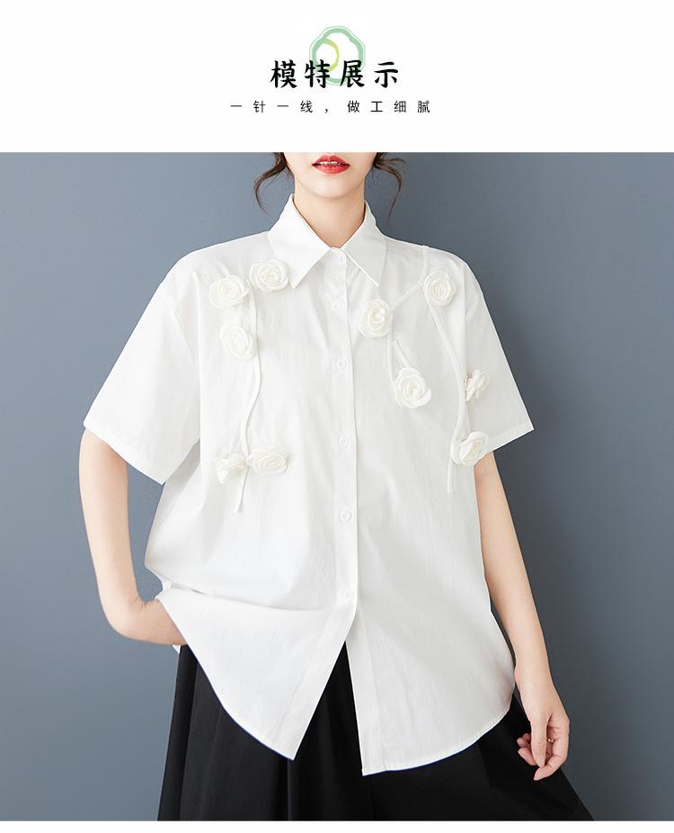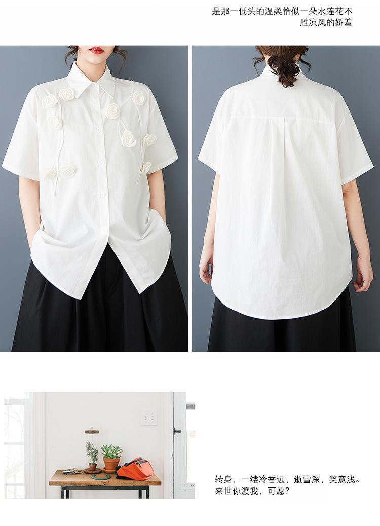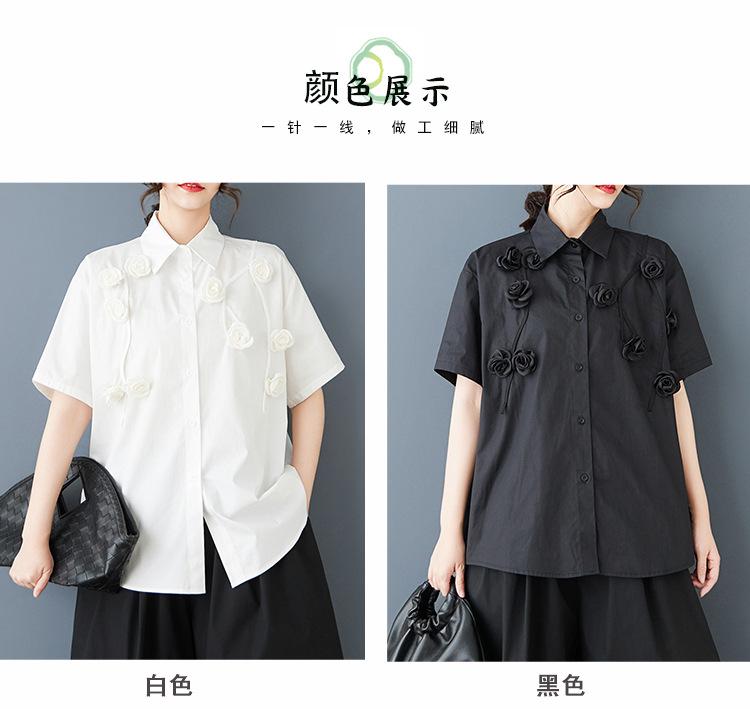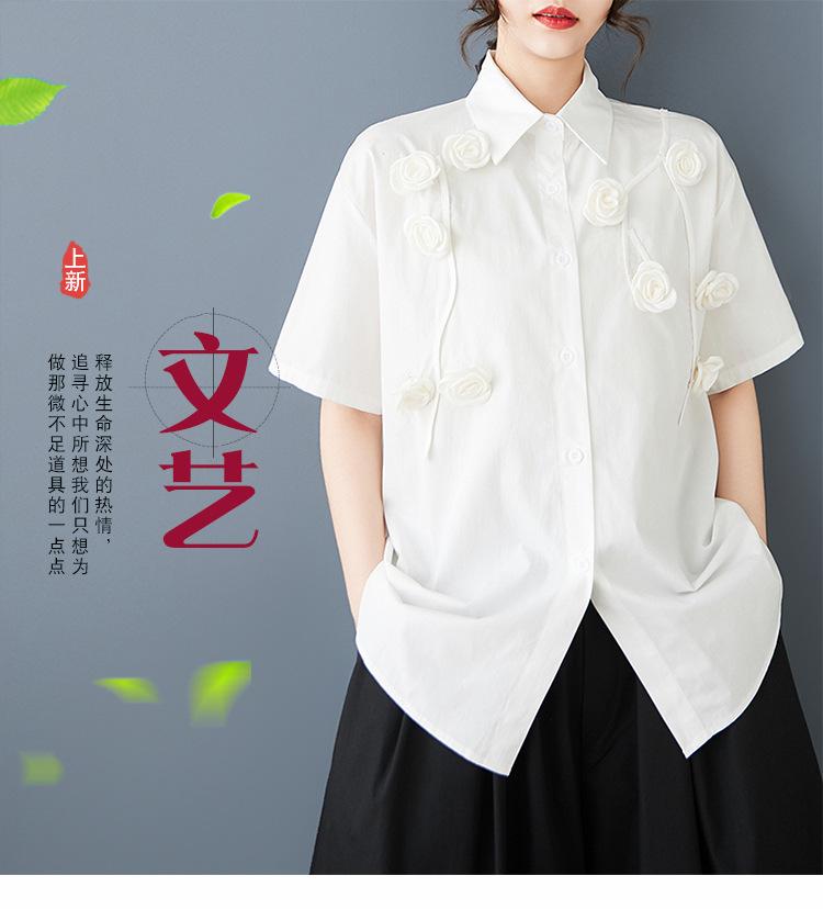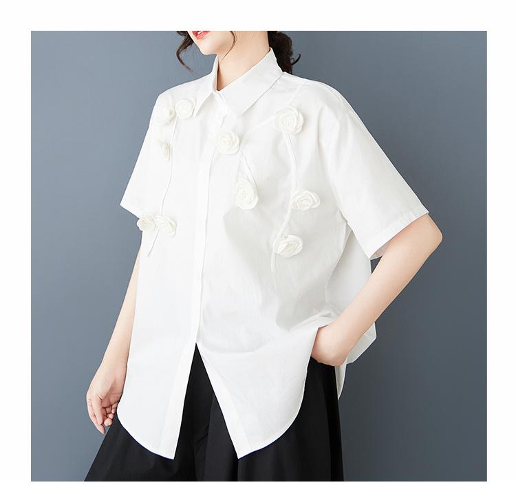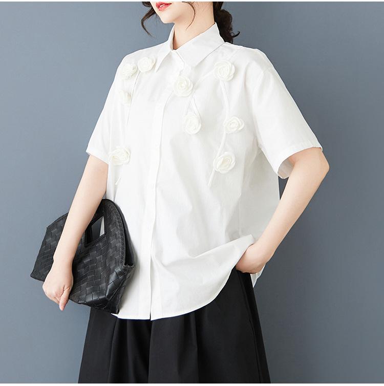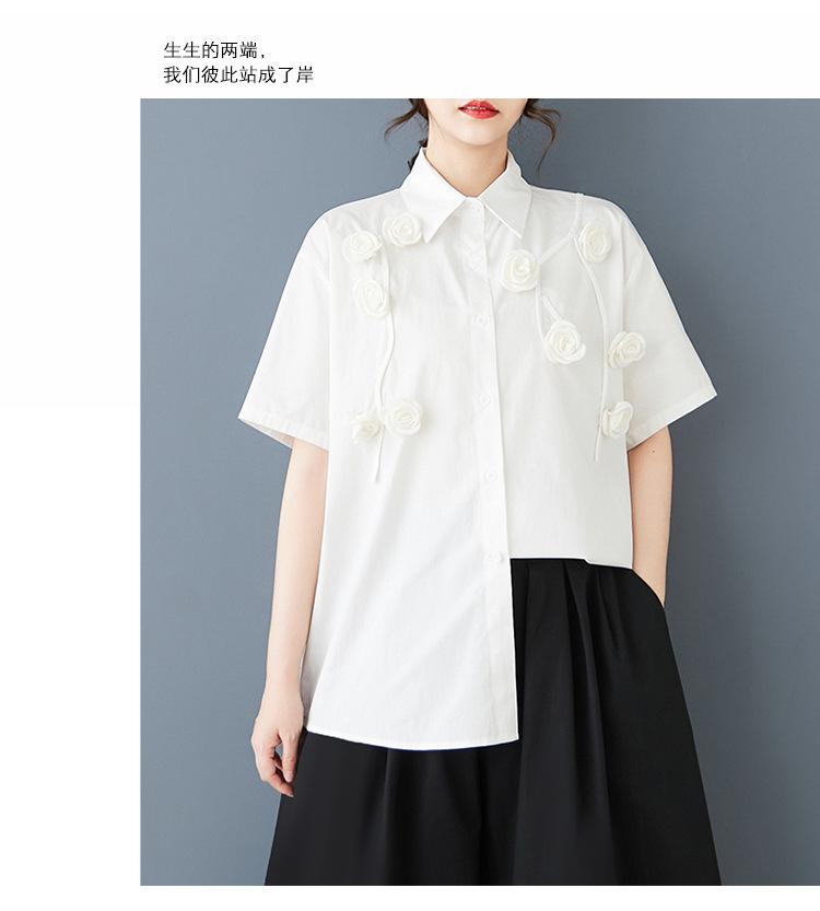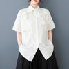 Toma Real Primavera y Verano Nuevo Suelto Talla Grande Ropa de Mujer Costuras Casual Simple Para Ir al Trabajo Dulce Camisa de Manga Corta Camisa