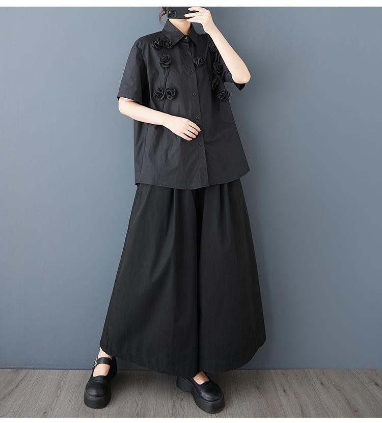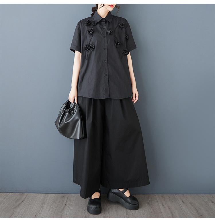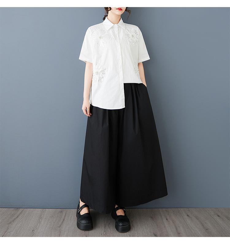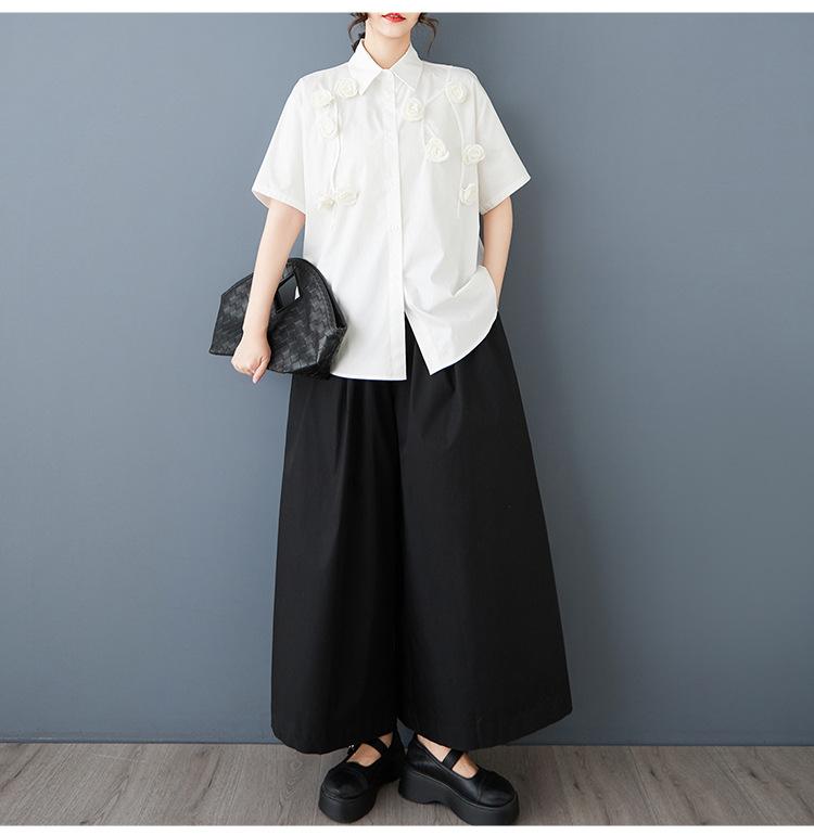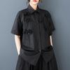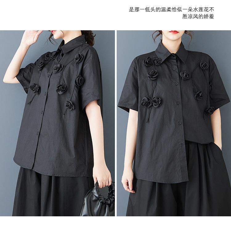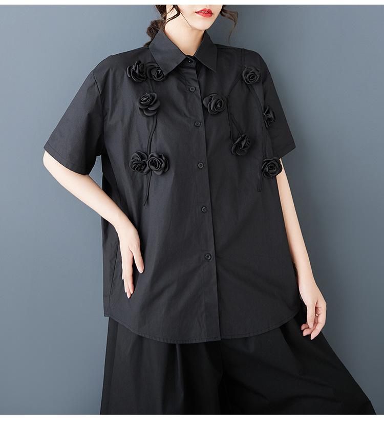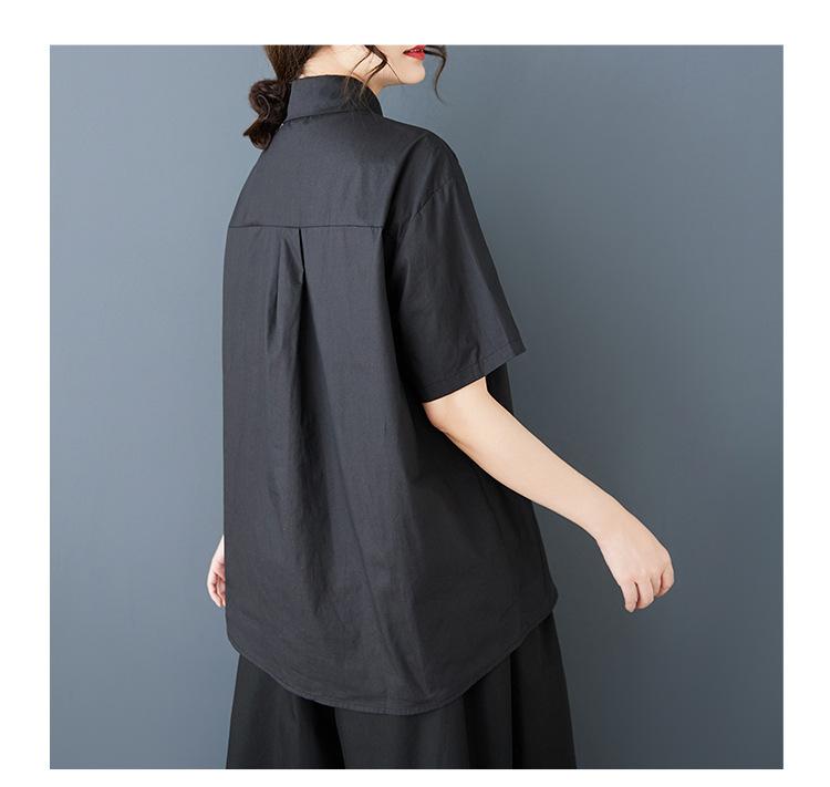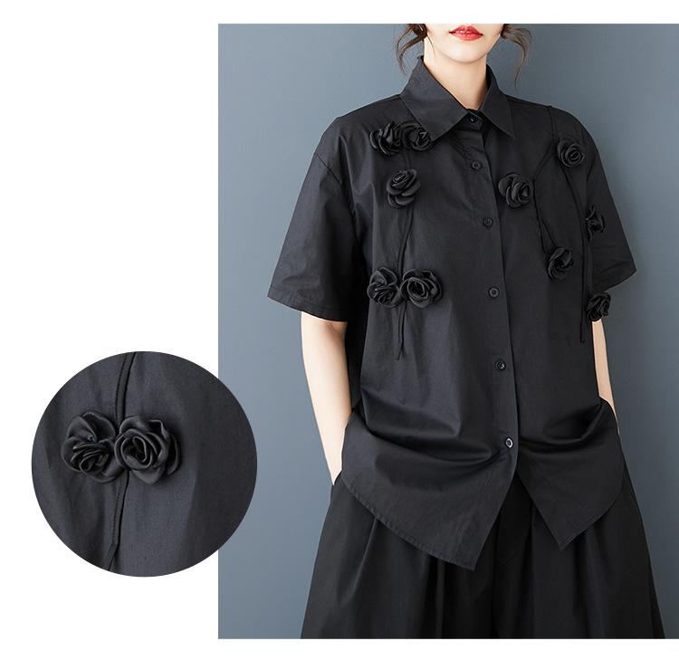 Toma Real Primavera y Verano Nuevo Suelto Talla Grande Ropa de Mujer Costuras Casual Simple Para Ir al Trabajo Dulce Camisa de Manga Corta Camisa
