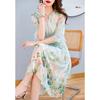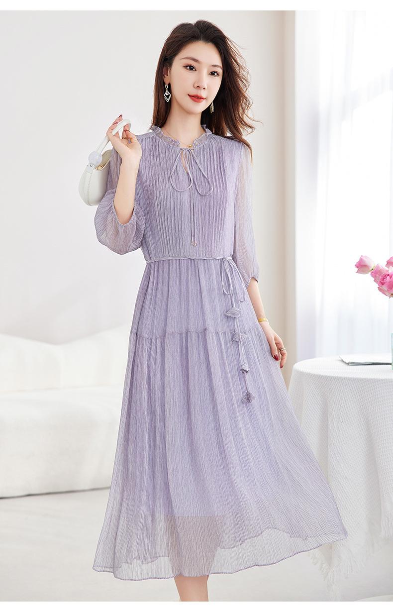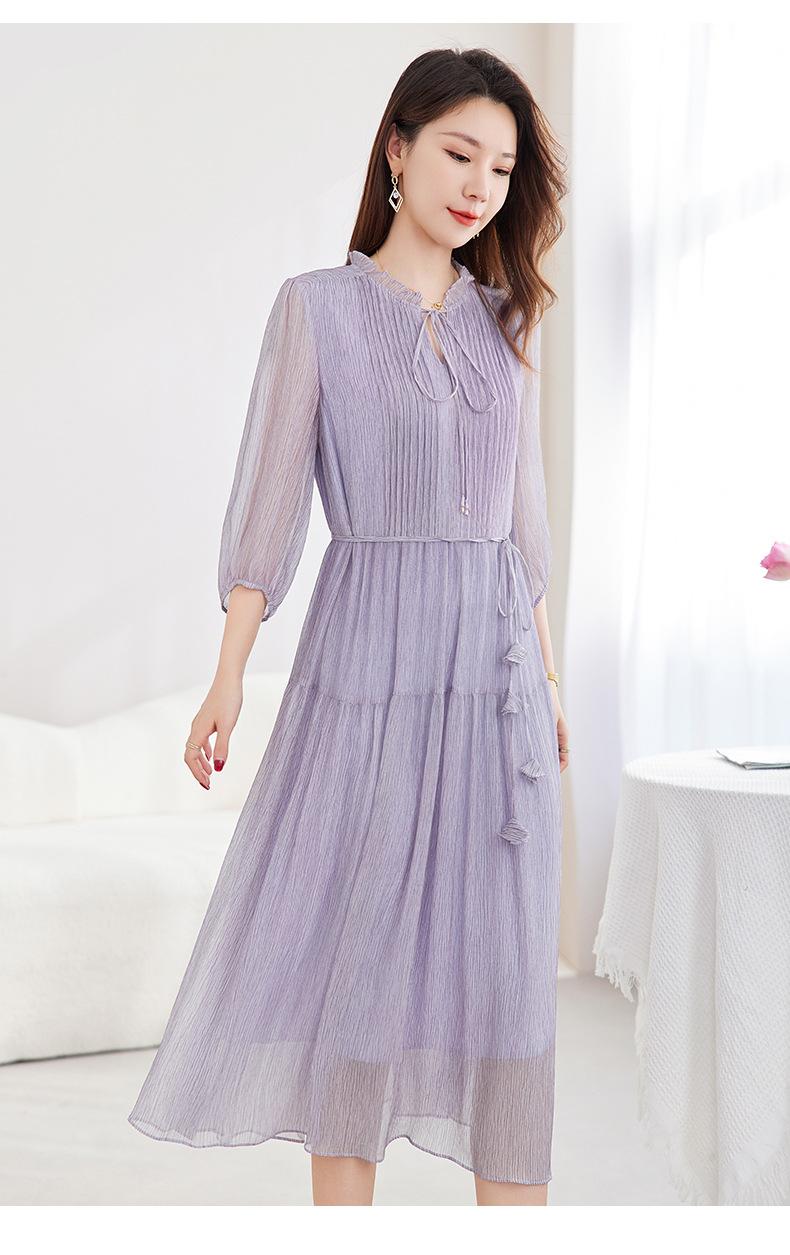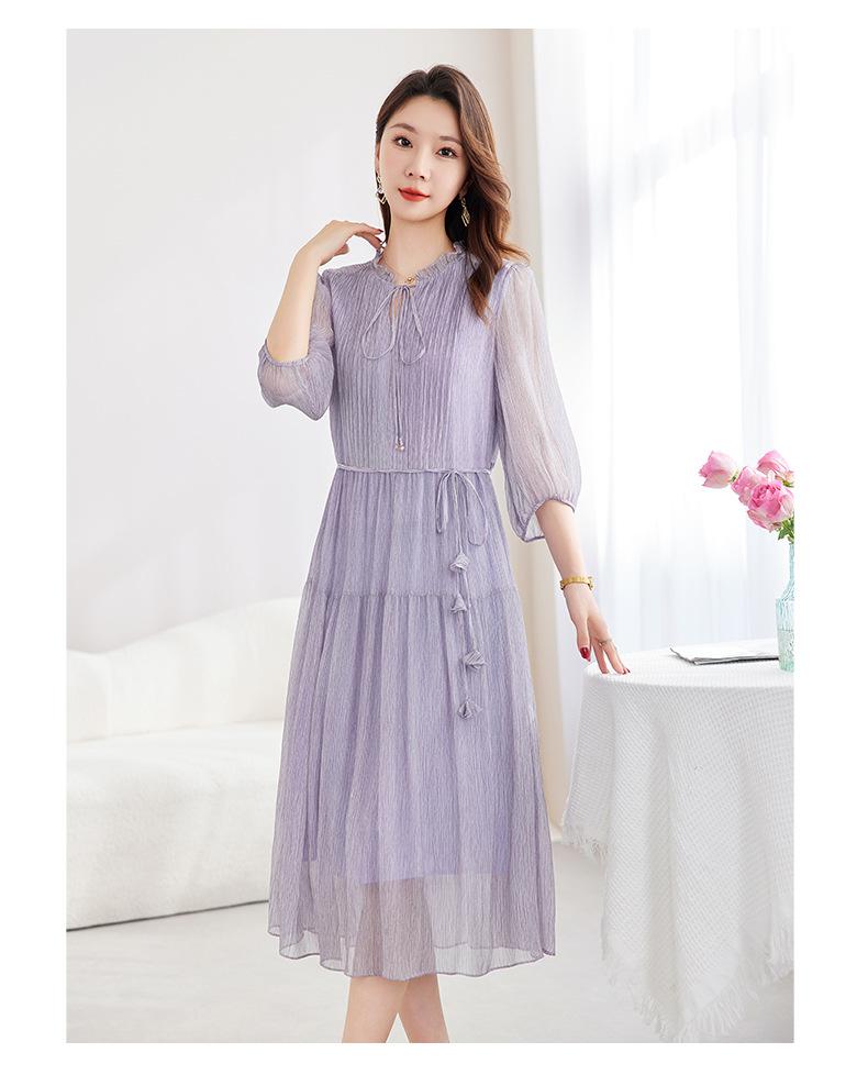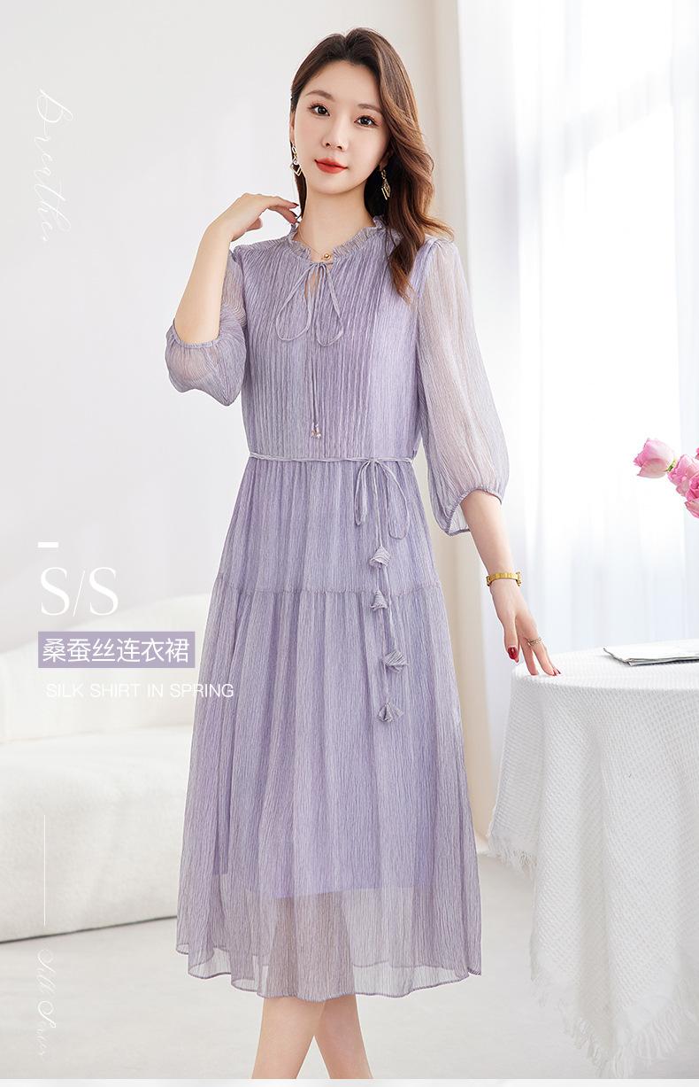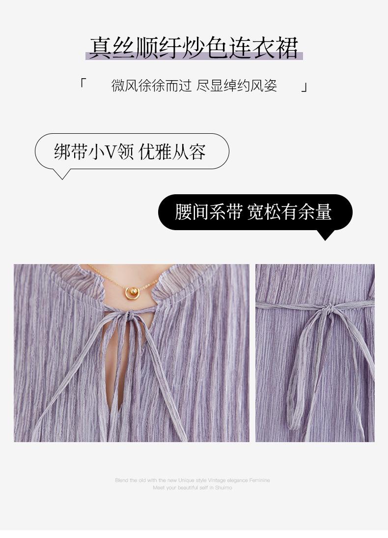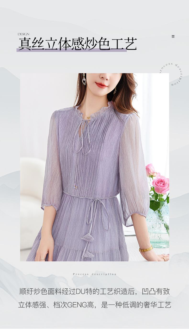 [Seda de Morera 100%] Falda de Verano Patchwork Adelgazante Largo Medio Vestido de Seda Elegante Suave y Colorido para Mujer 9352