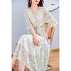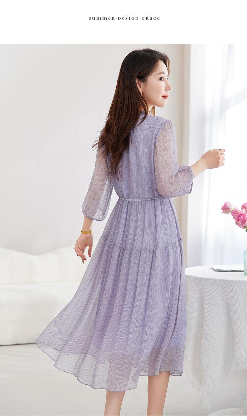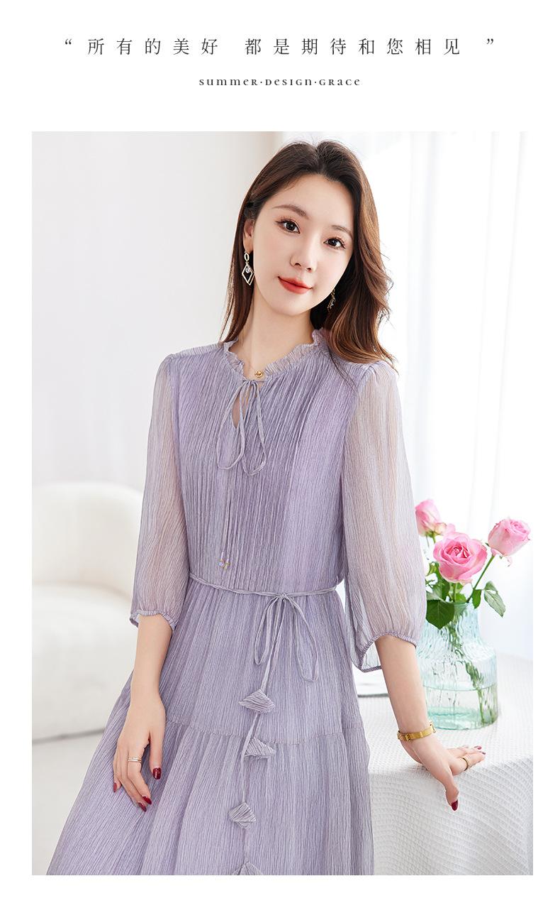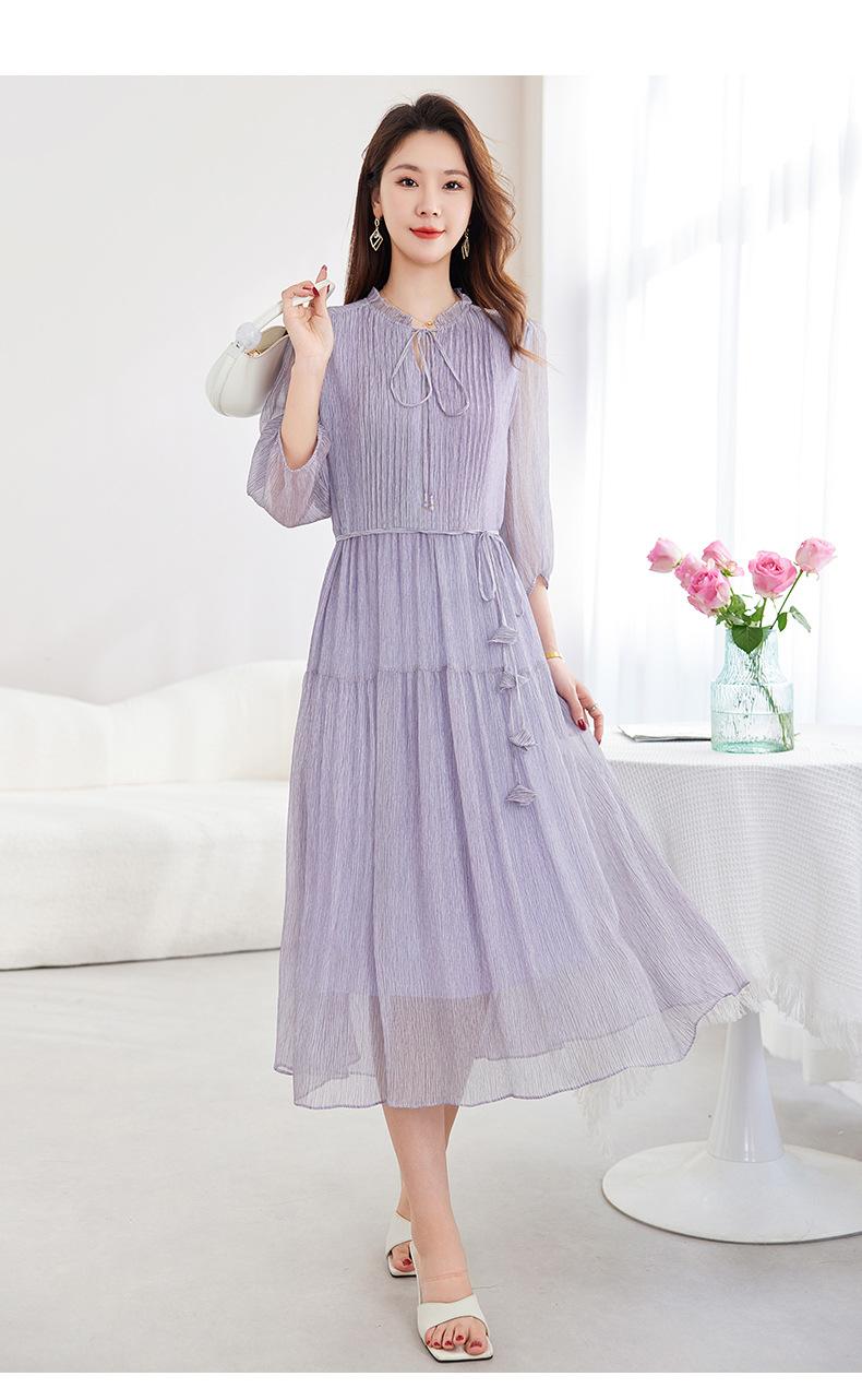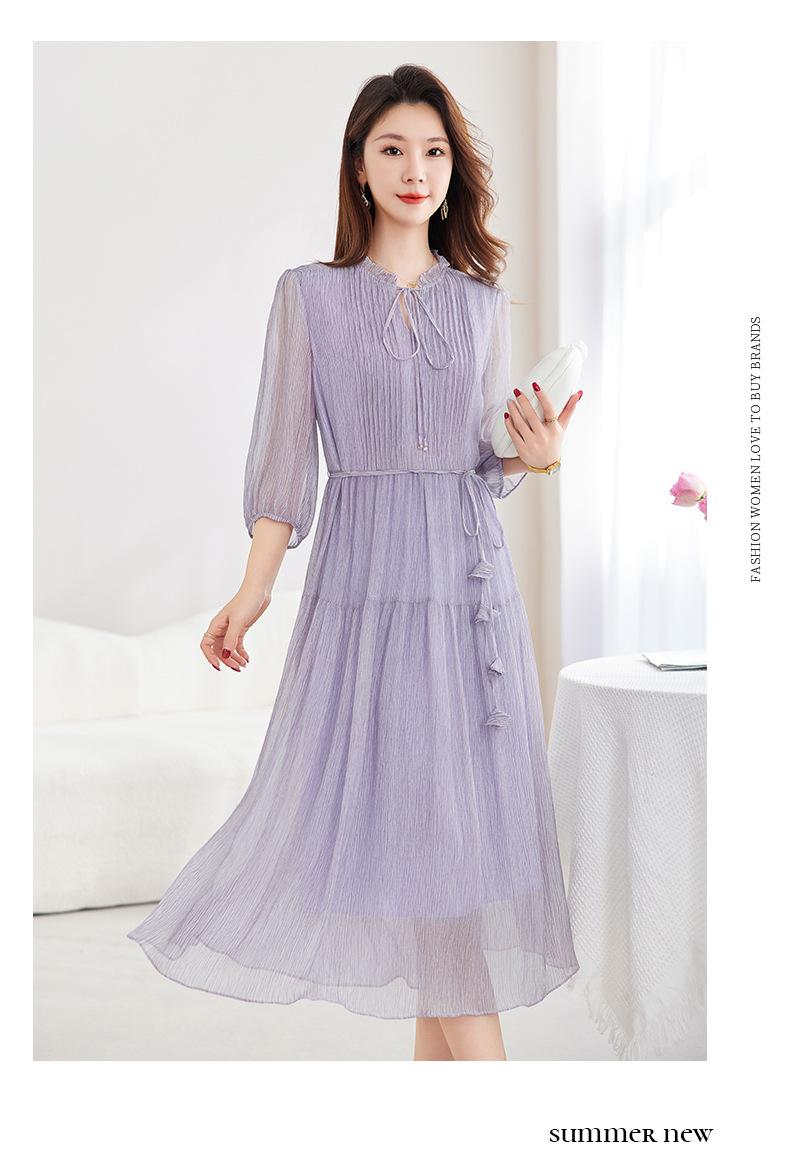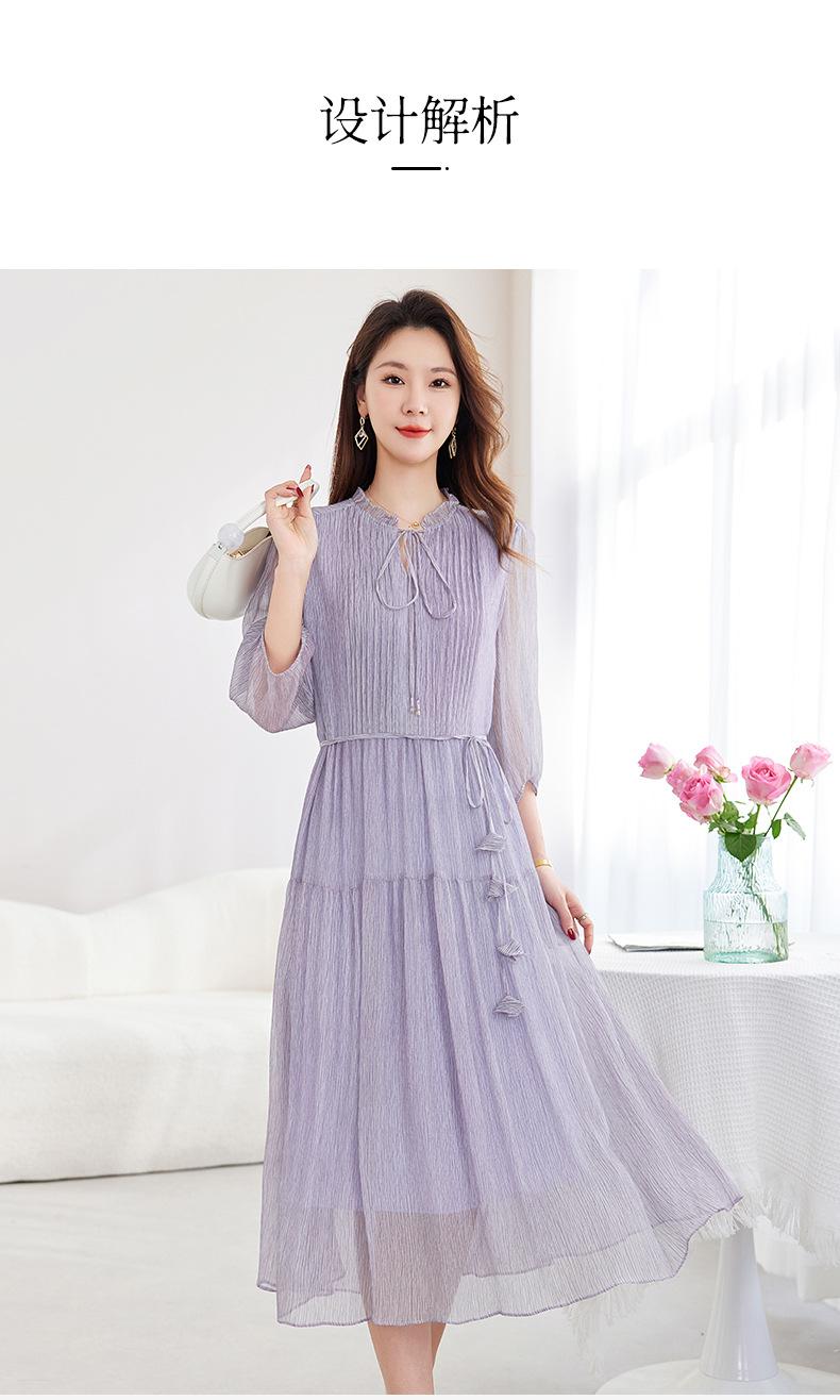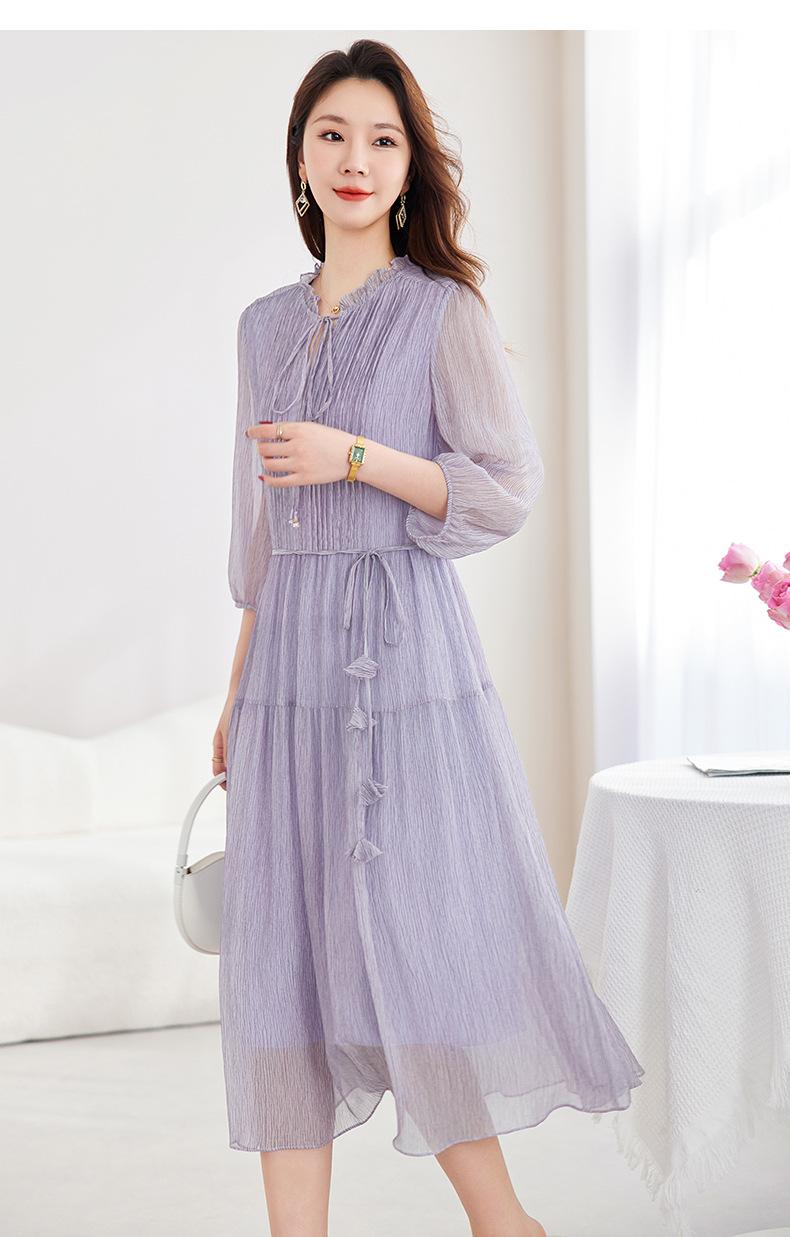 [Seda de Morera 100%] Falda de Verano Patchwork Adelgazante Largo Medio Vestido de Seda Elegante Suave y Colorido para Mujer 9352