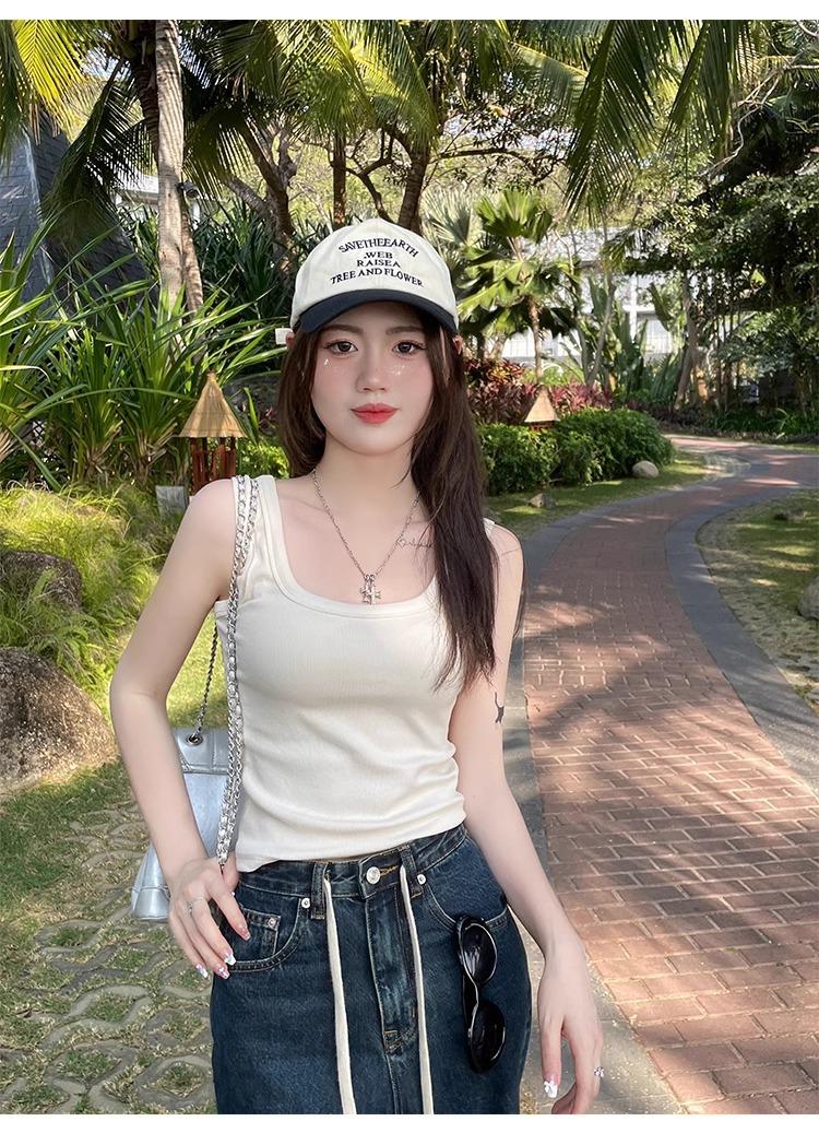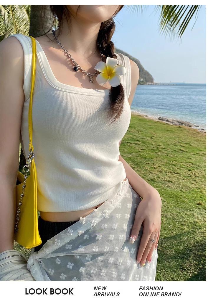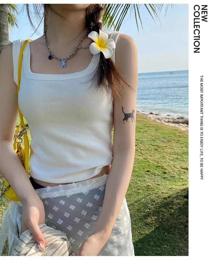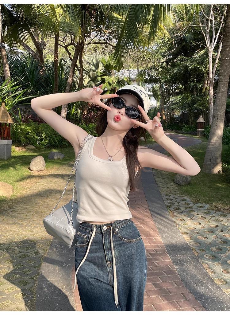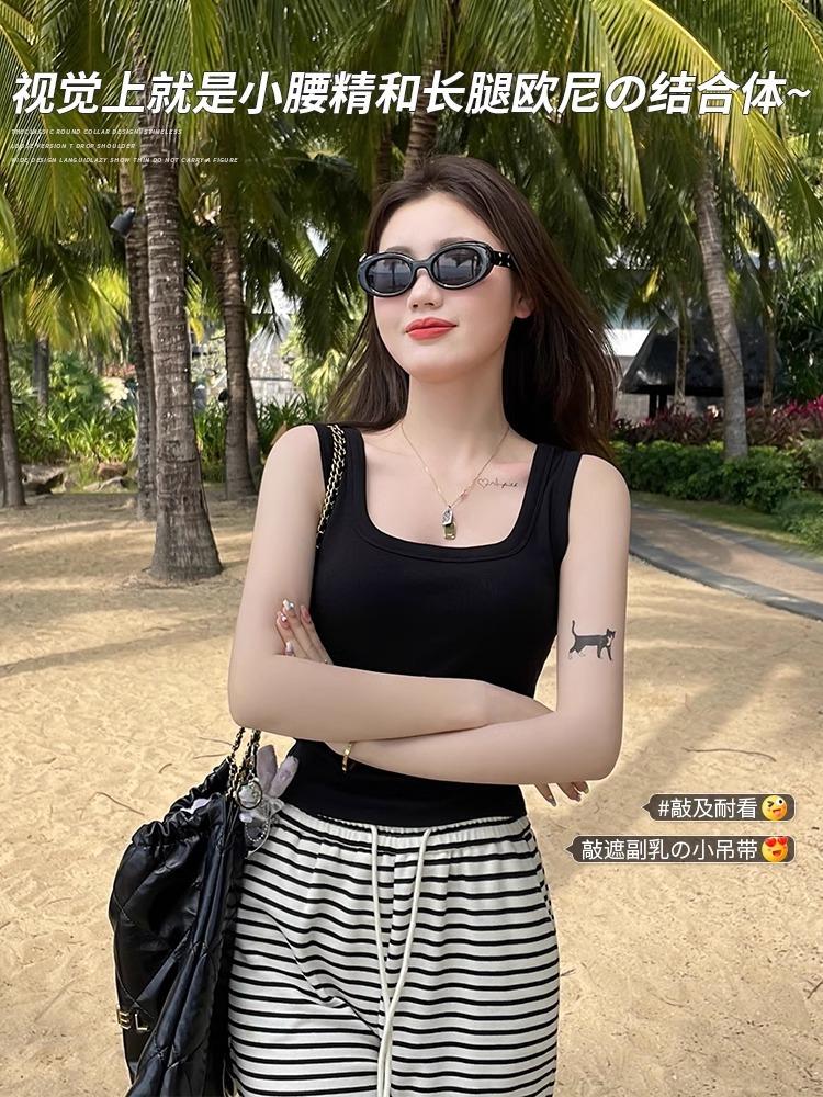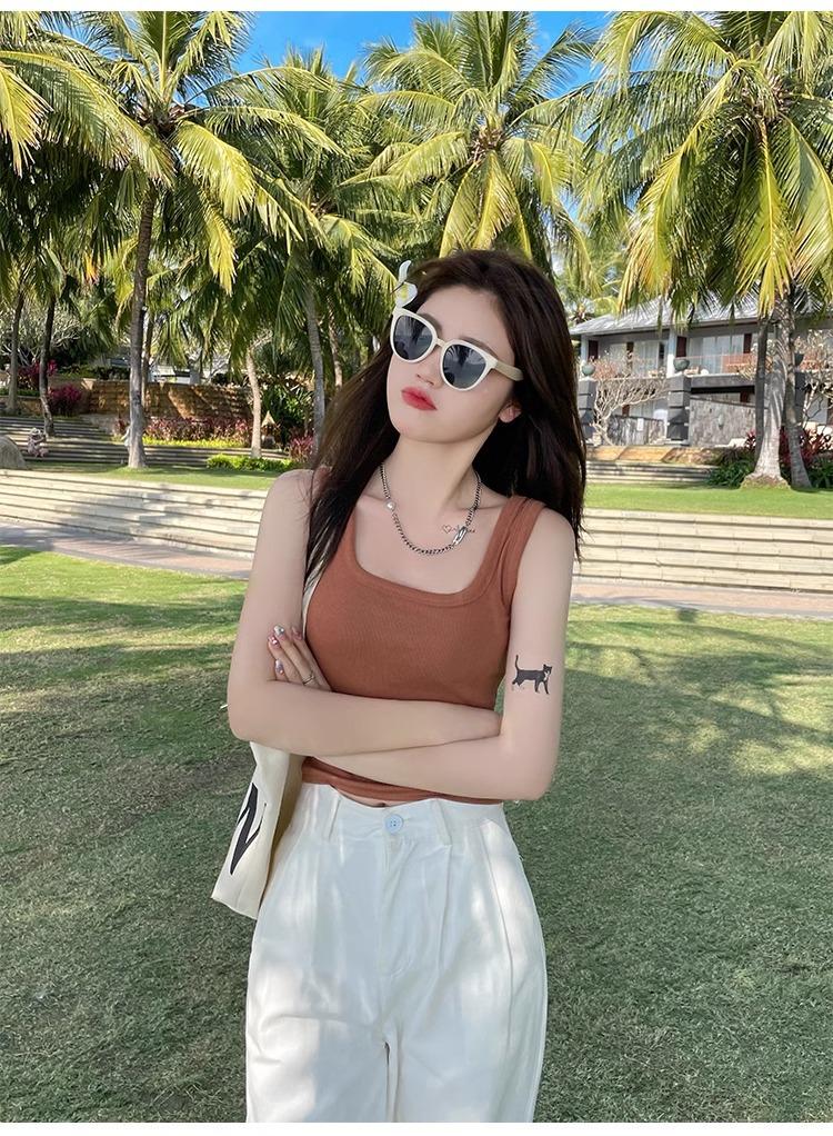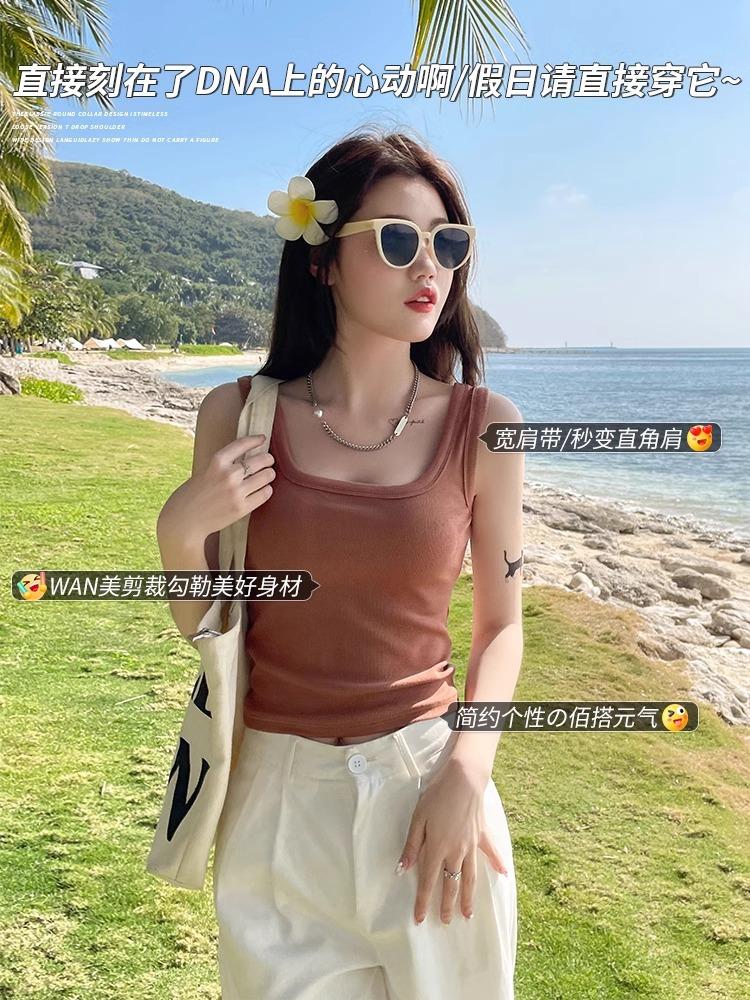 Camisola Personalizada para Mujer Verano 2025 Nuevo Estilo con Tirantes Anchos Blanco Sin Mangas Cuello Cuadrado Top para Uso Exterior