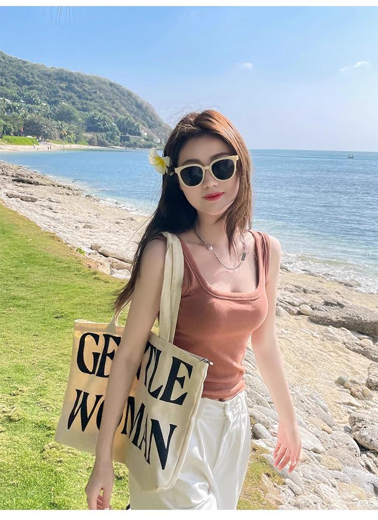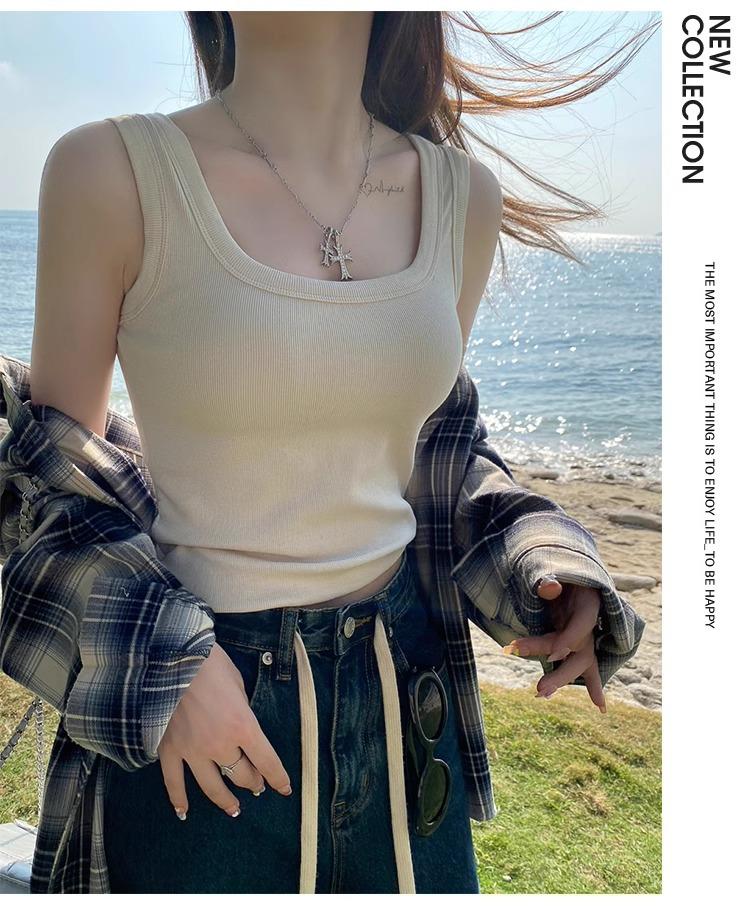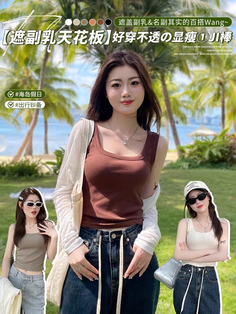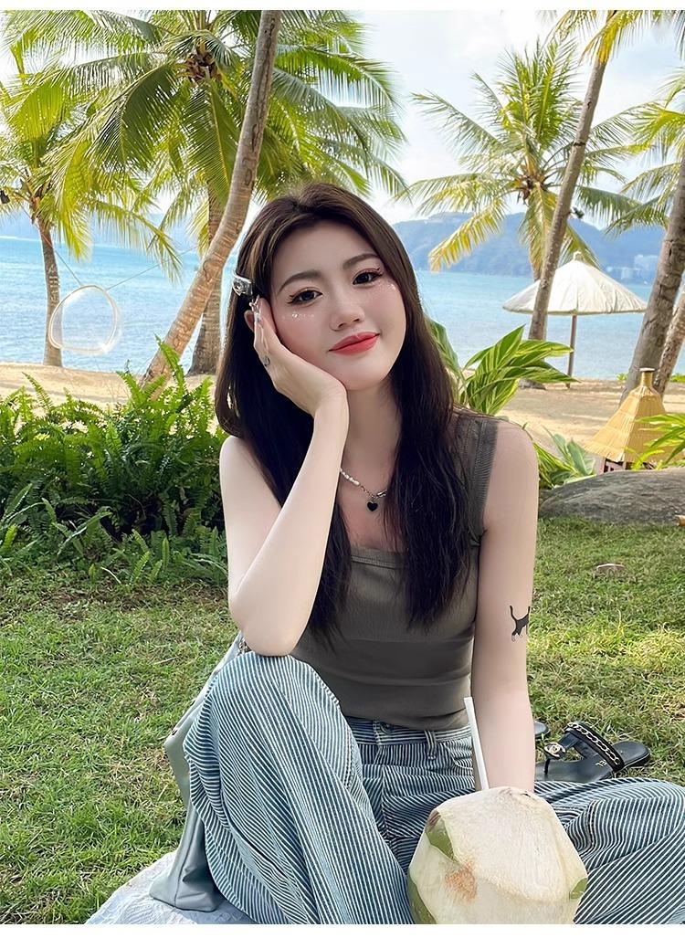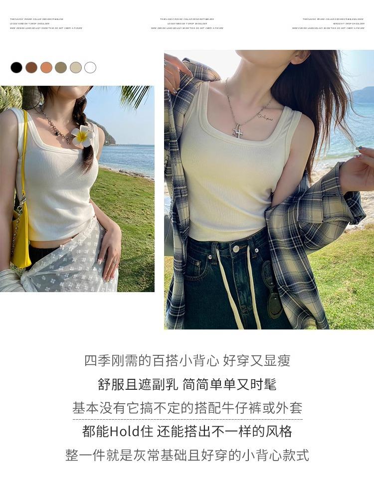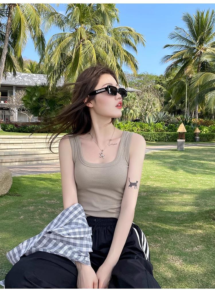 Camisola Personalizada para Mujer Verano 2025 Nuevo Estilo con Tirantes Anchos Blanco Sin Mangas Cuello Cuadrado Top para Uso Exterior