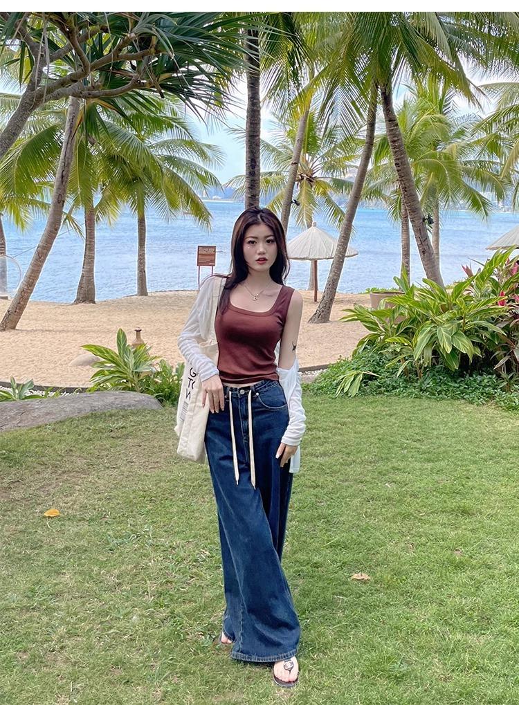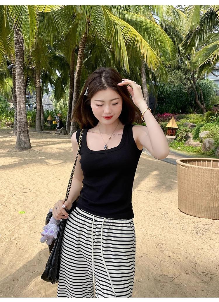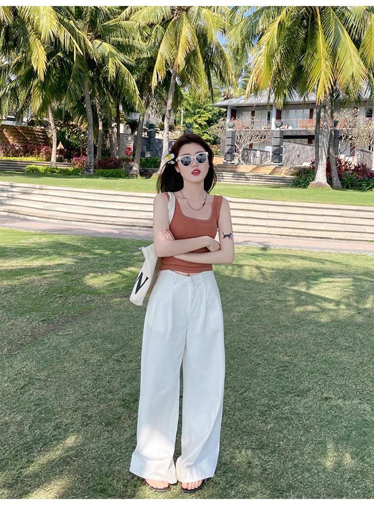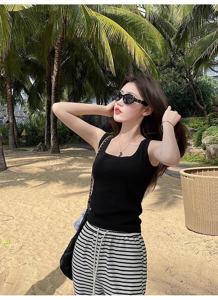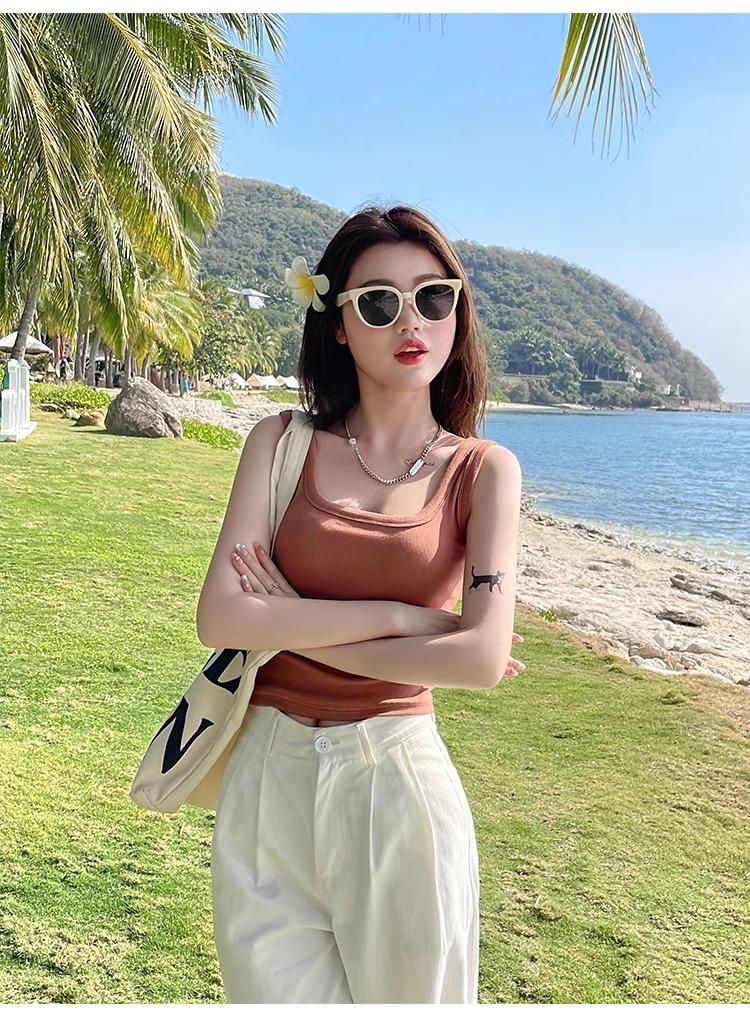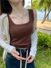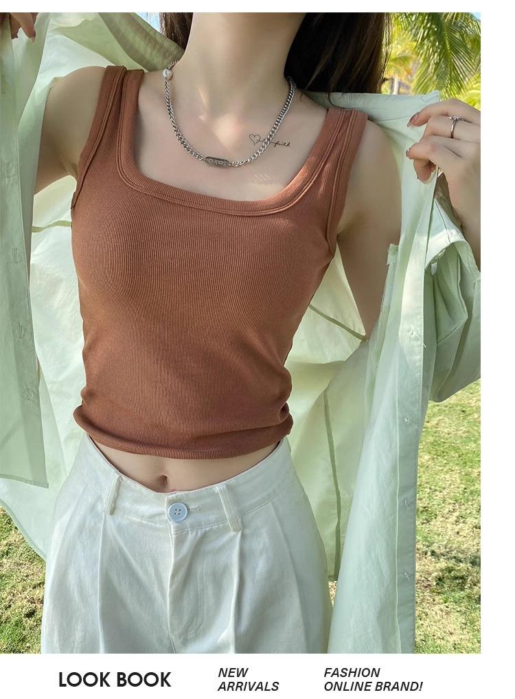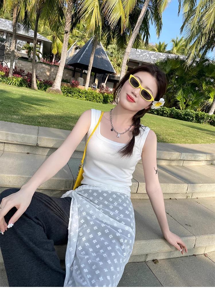 Camisola Personalizada para Mujer Verano 2025 Nuevo Estilo con Tirantes Anchos Blanco Sin Mangas Cuello Cuadrado Top para Uso Exterior