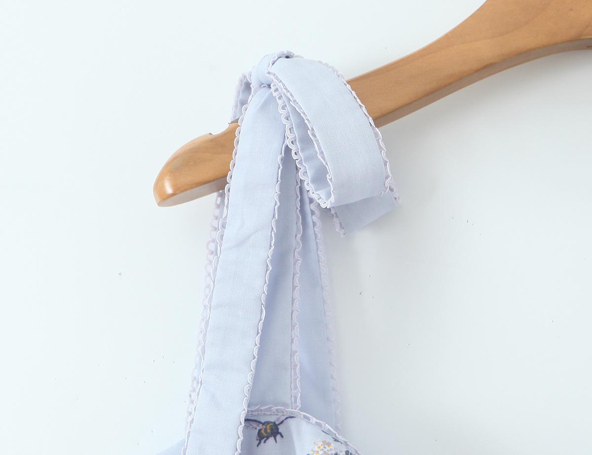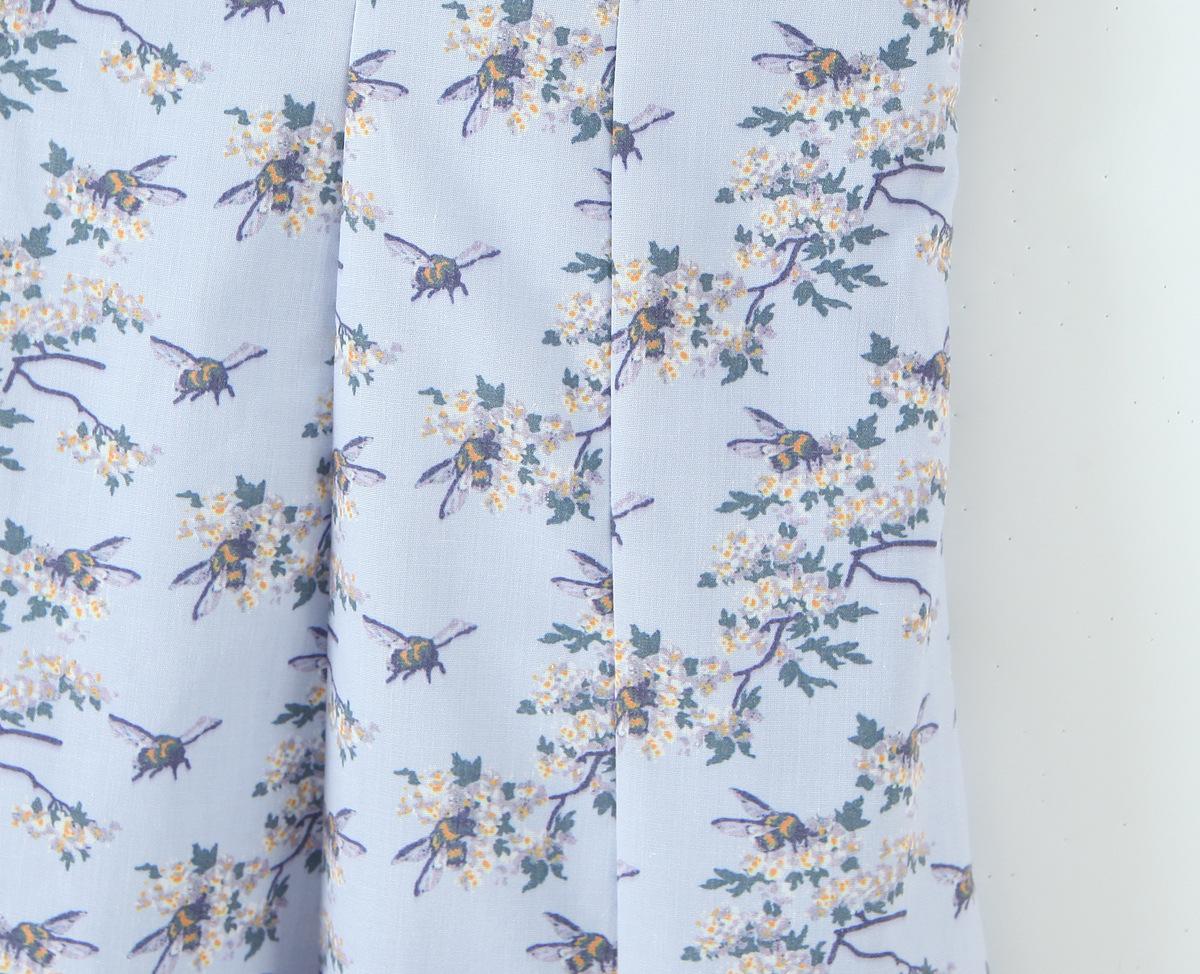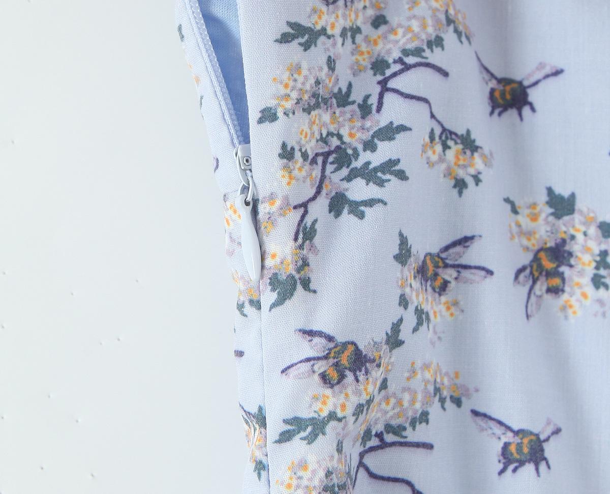 7546-25 Vestido de Verano Azul de Algodón Estampado de Largo Medio con Tirantes y Botones Vestido Largo