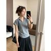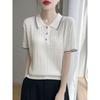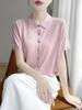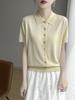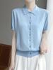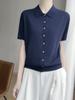 2025 Nuevo Verano Polo Cuello Lyocell Tejido Manga Corta para Mujer Color Puro Suelto Delgado Casual Versátil Cárdigan de Manga Corta