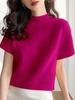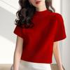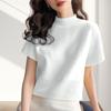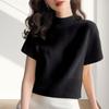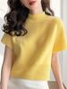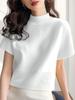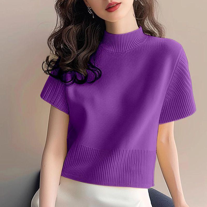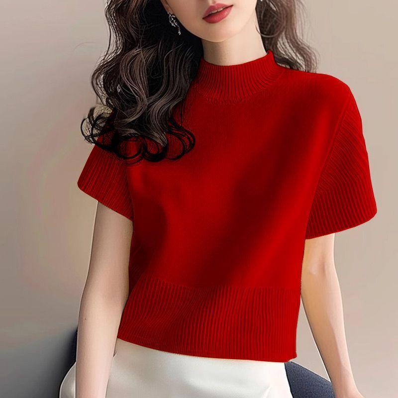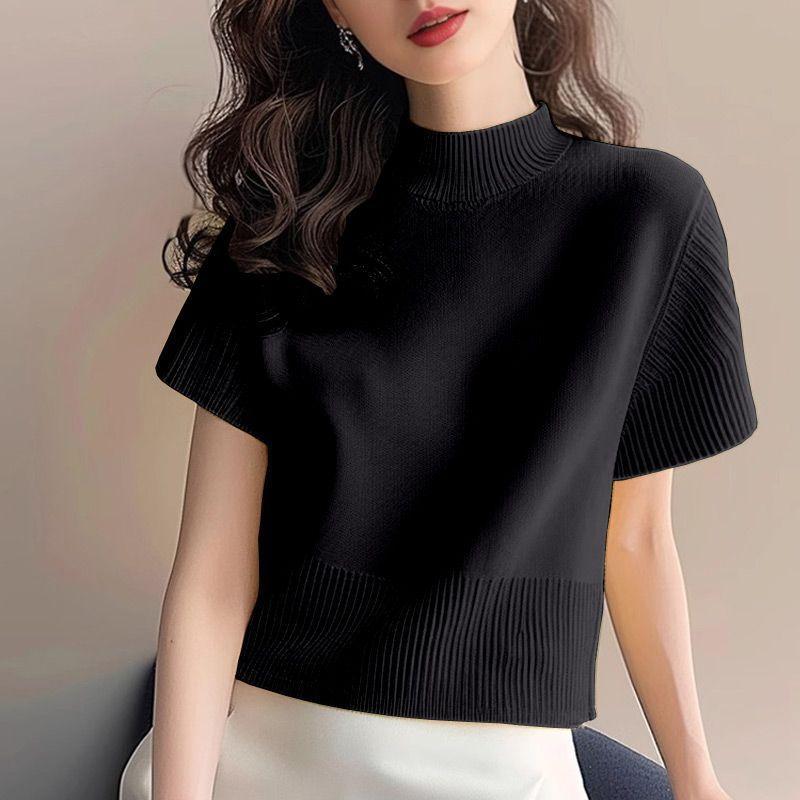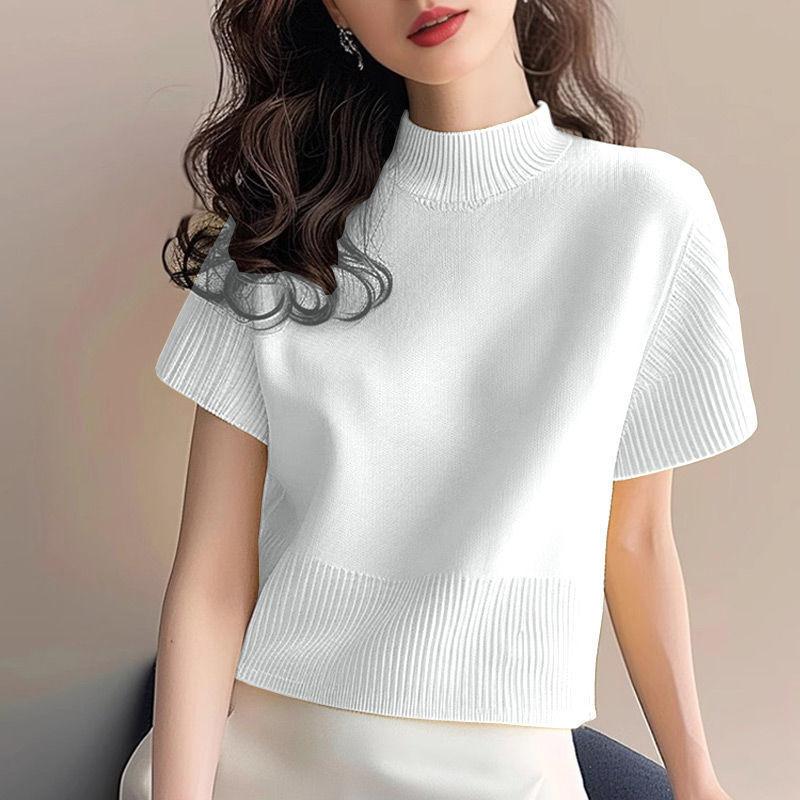 Suéter de diseño europeo de color sólido con cuello semi alto, nuevo jersey de verano versátil, top estilo occidental que reduce la edad, manga corta para mujer