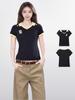 Camiseta de Manga Corta con Hombro Derecho Estilo Americano para Mujer Verano Slim Corta Manga Media 2025 Nuevo Top Estilo Preppy con Cuello Polo
