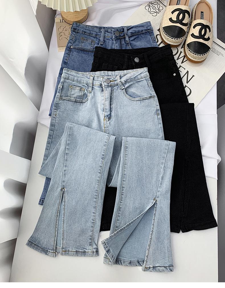 Jeans Divididos Pantalones Acampanados de Mujer 2025 Nuevo Cintura Alta Ajustado Adelgazante Elásticos Rectos Otoño