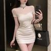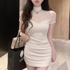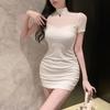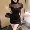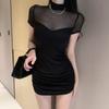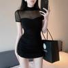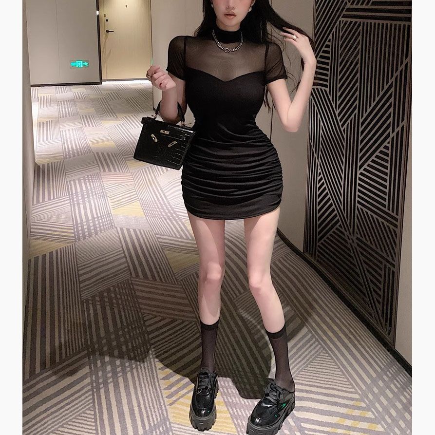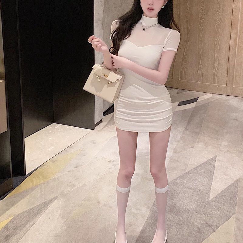 [100,000 Vendidos por Mes] Chica Caliente Sexy Costuras de Malla Cubre Caderas Manga Corta Cintura Falda Vestido de Verano para Mujer con Aspecto Adelgazante