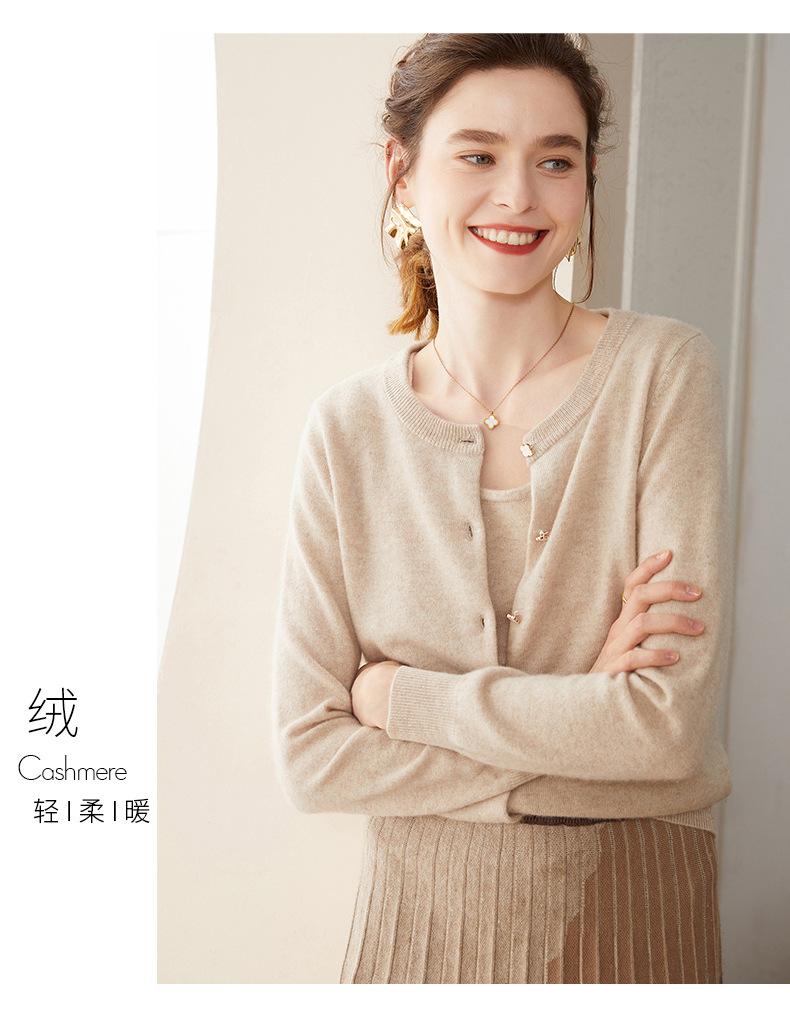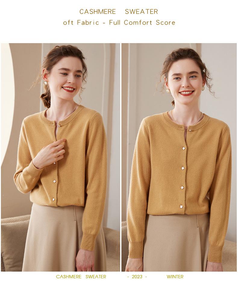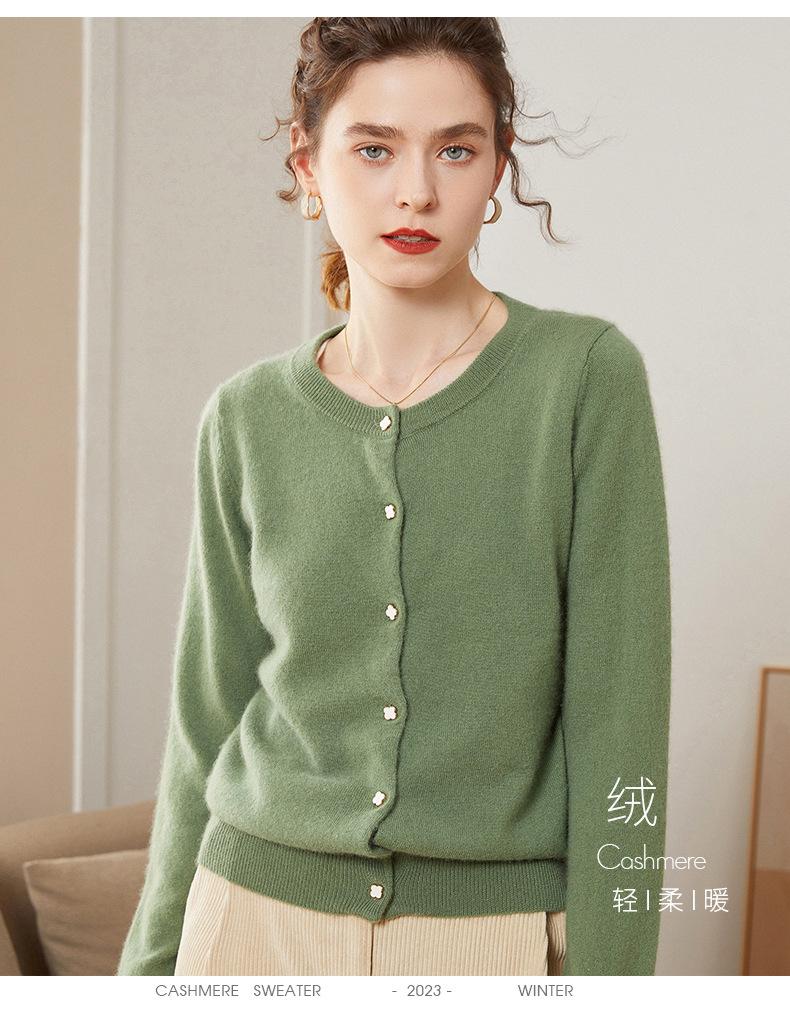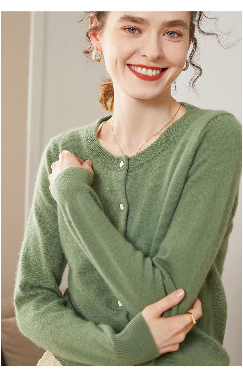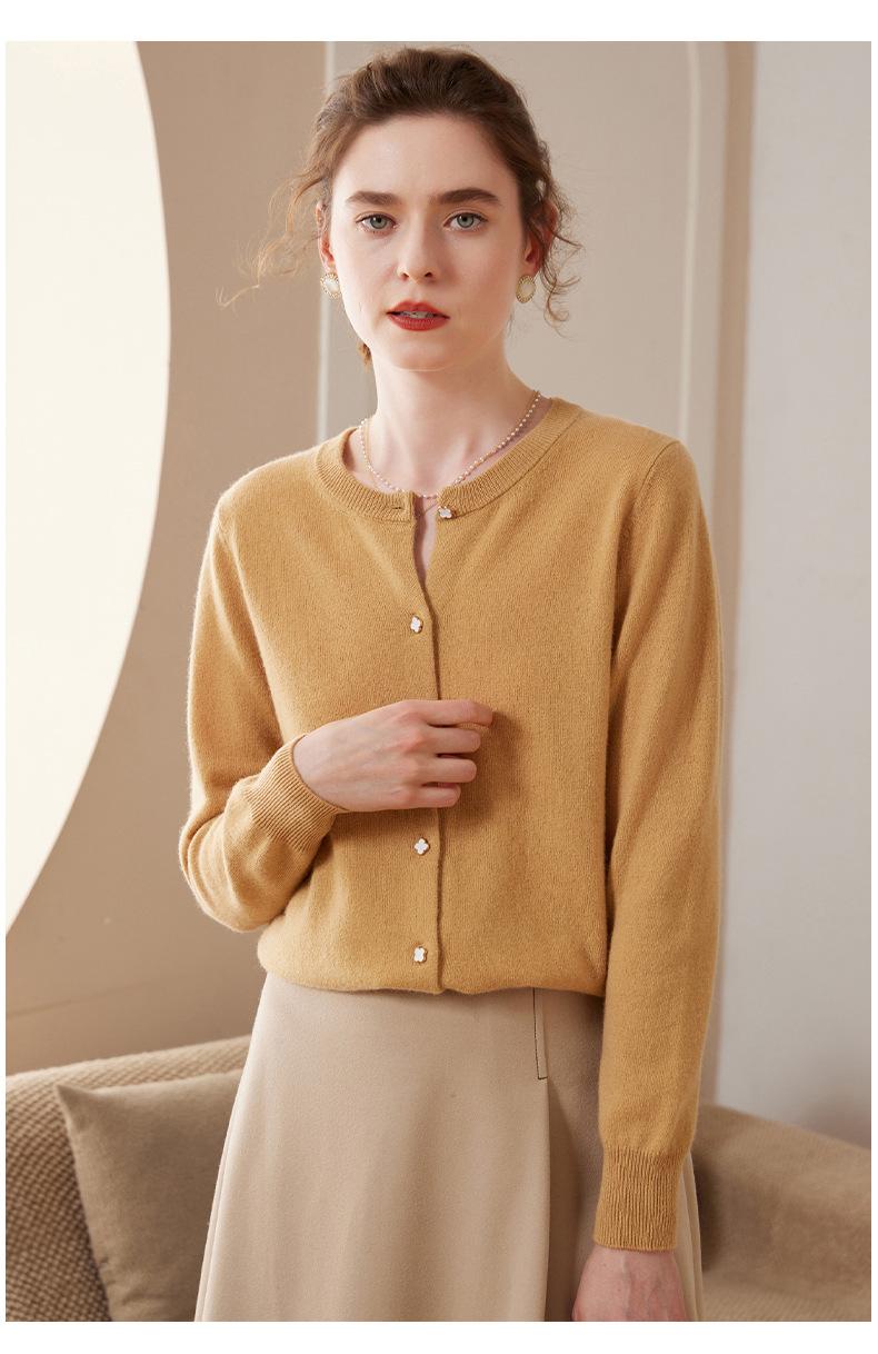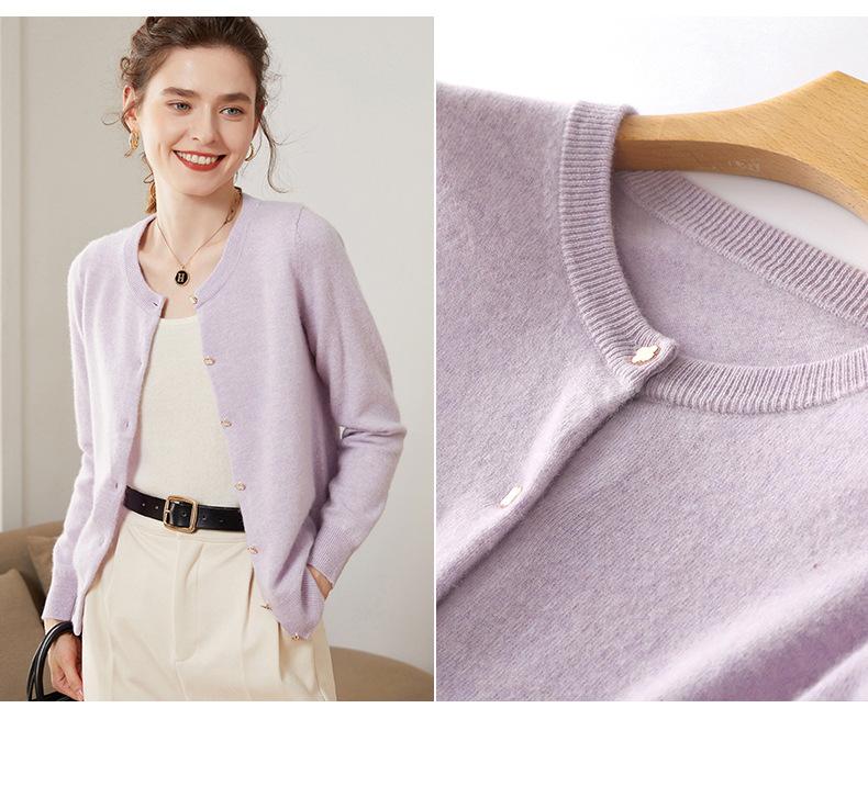 Cárdigan de punto de cachemira para mujer, otoño e invierno, nuevo, de manga larga, cuello redondo, botonadura sencilla, elegante, holgado, cálido, 2024