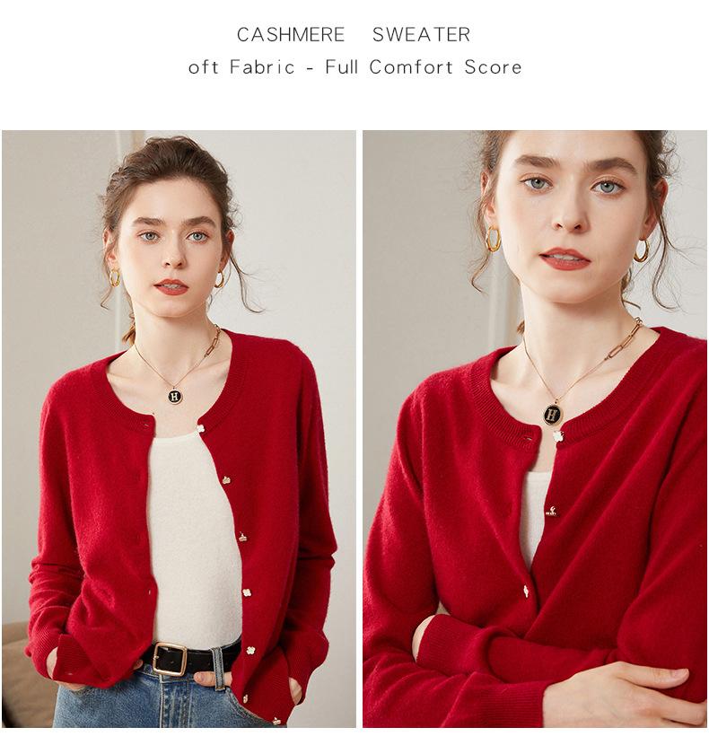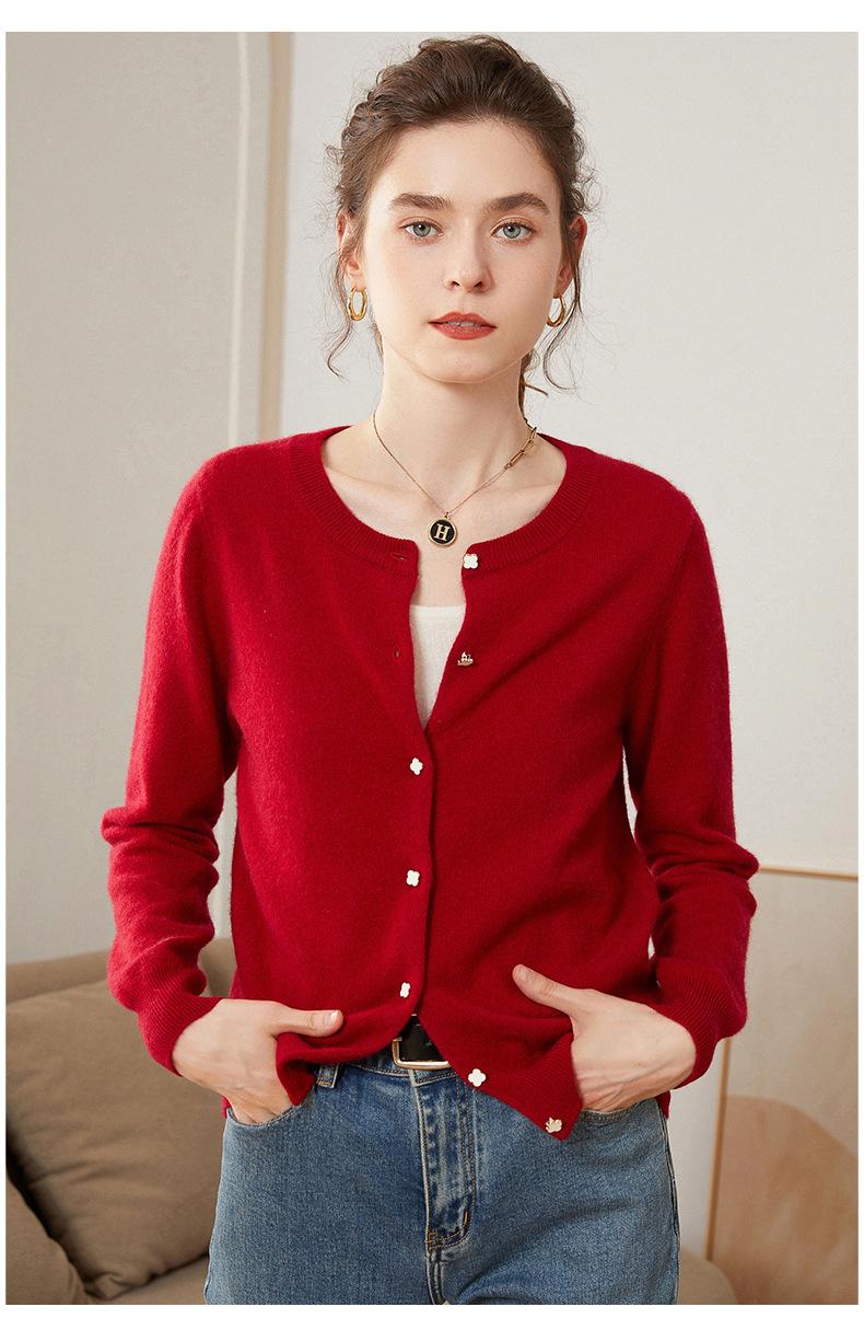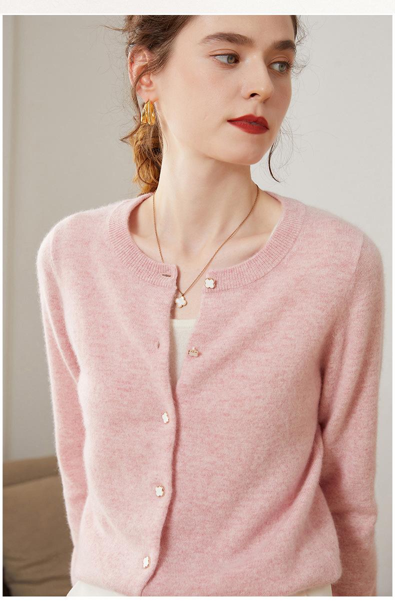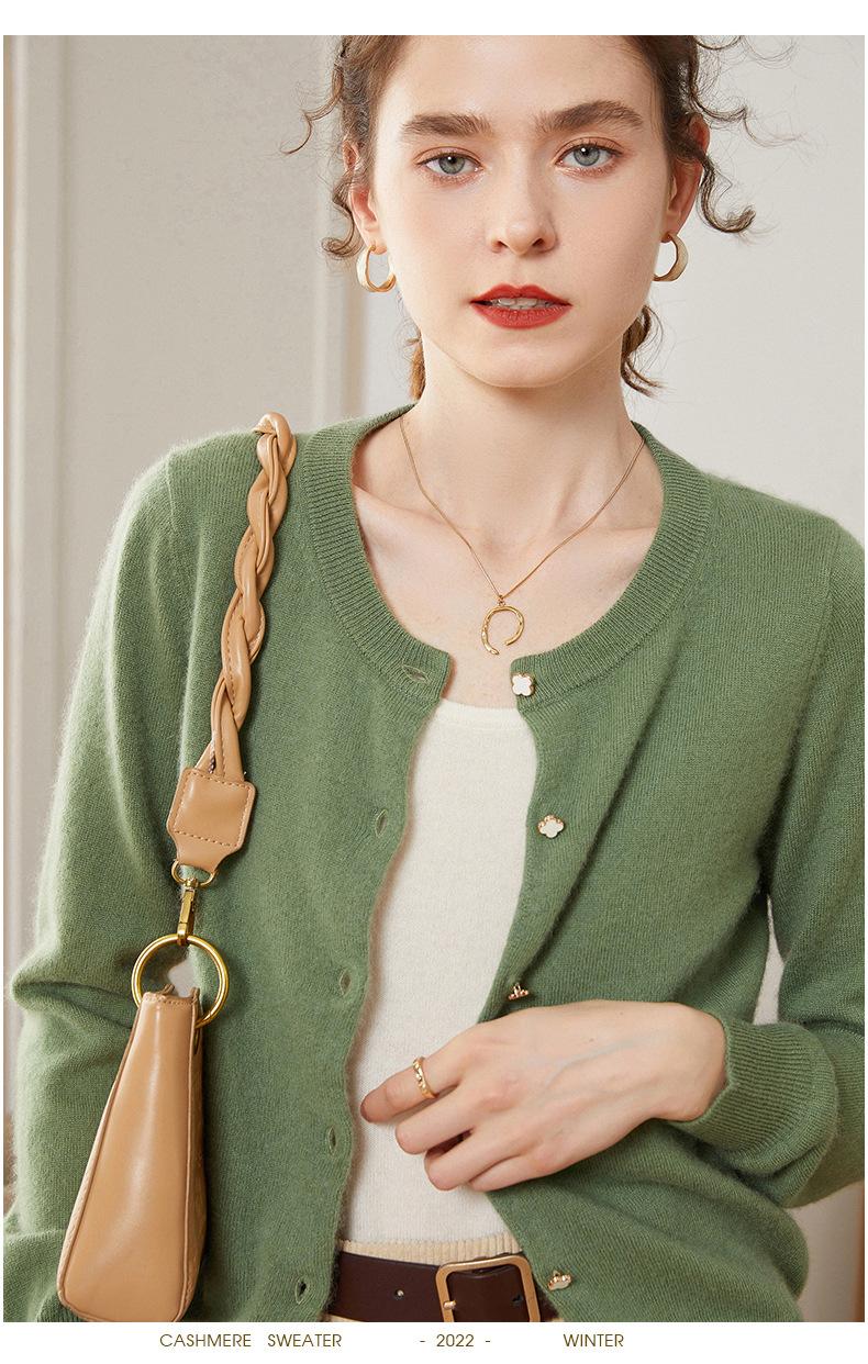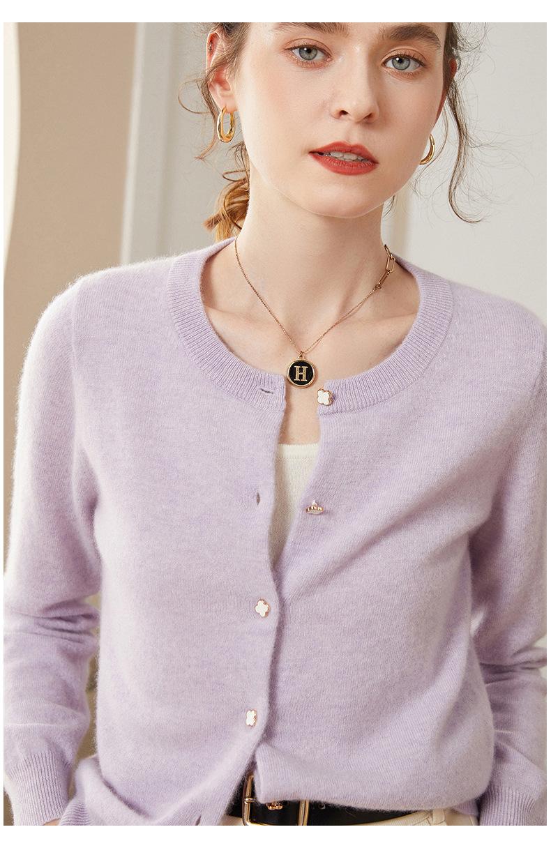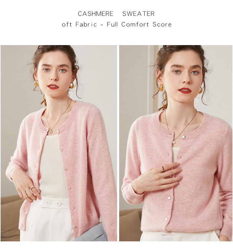 Cárdigan de punto de cachemira para mujer, otoño e invierno, nuevo, de manga larga, cuello redondo, botonadura sencilla, elegante, holgado, cálido, 2024