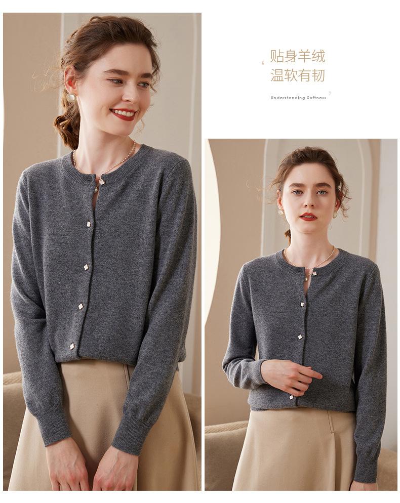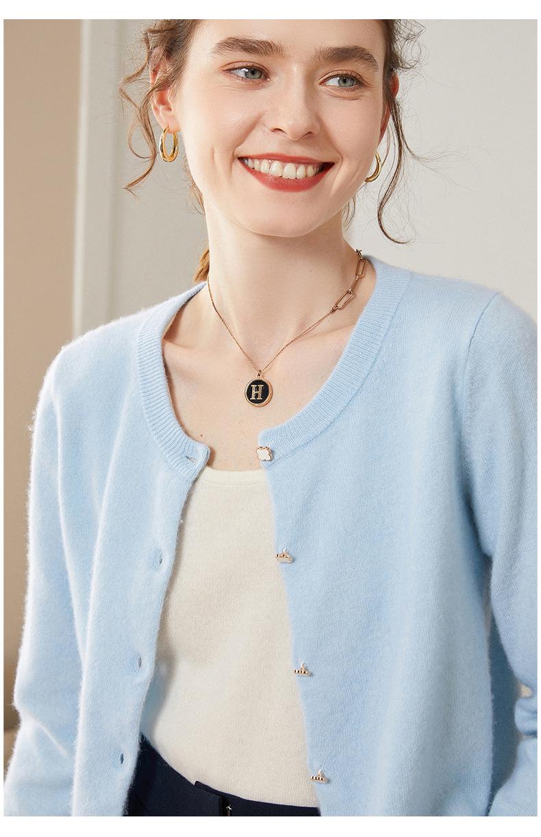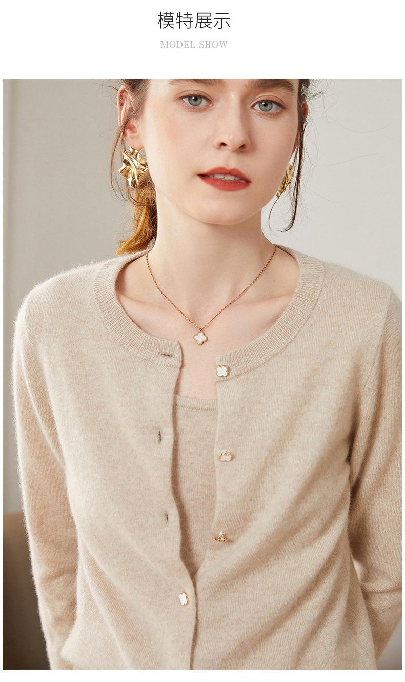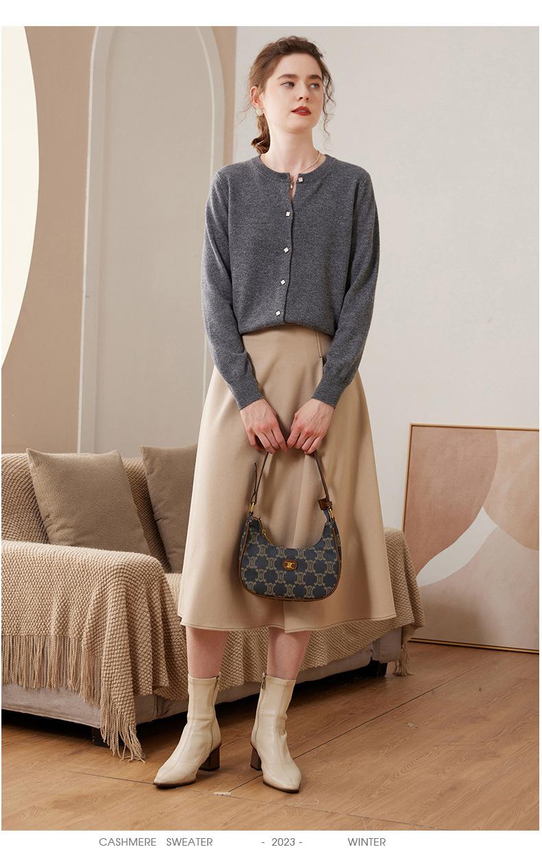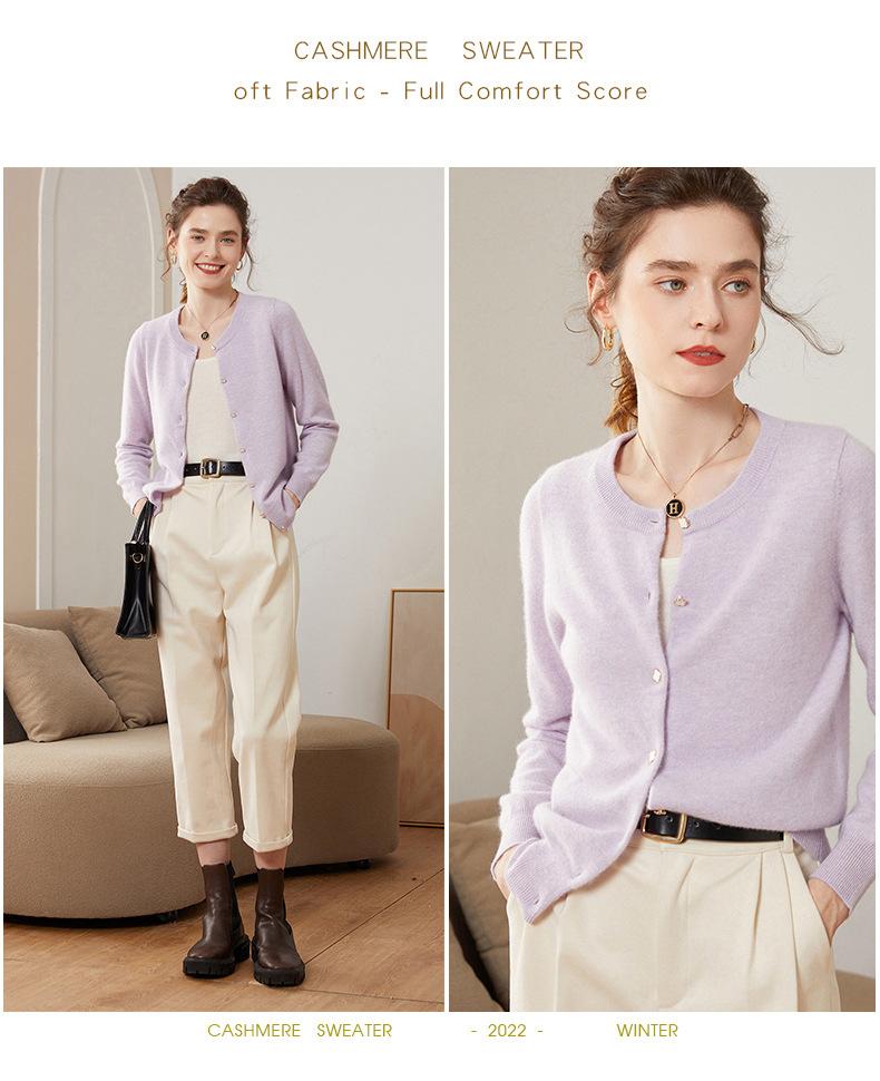Cárdigan de punto de cachemira para mujer, otoño e invierno, nuevo, de manga larga, cuello redondo, botonadura sencilla, elegante, holgado, cálido, 2024