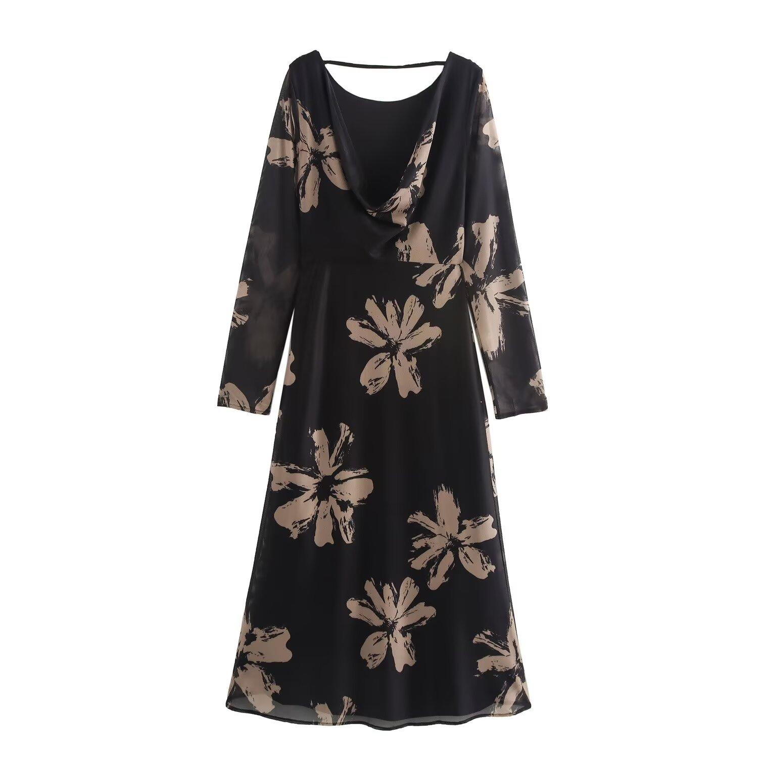 Ropa de Otoño para Mujer 2024 Nuevo Estilo Europeo y Americano Moda Slim Sin Espalda Cuello Swing Sexy Vestido Largo
