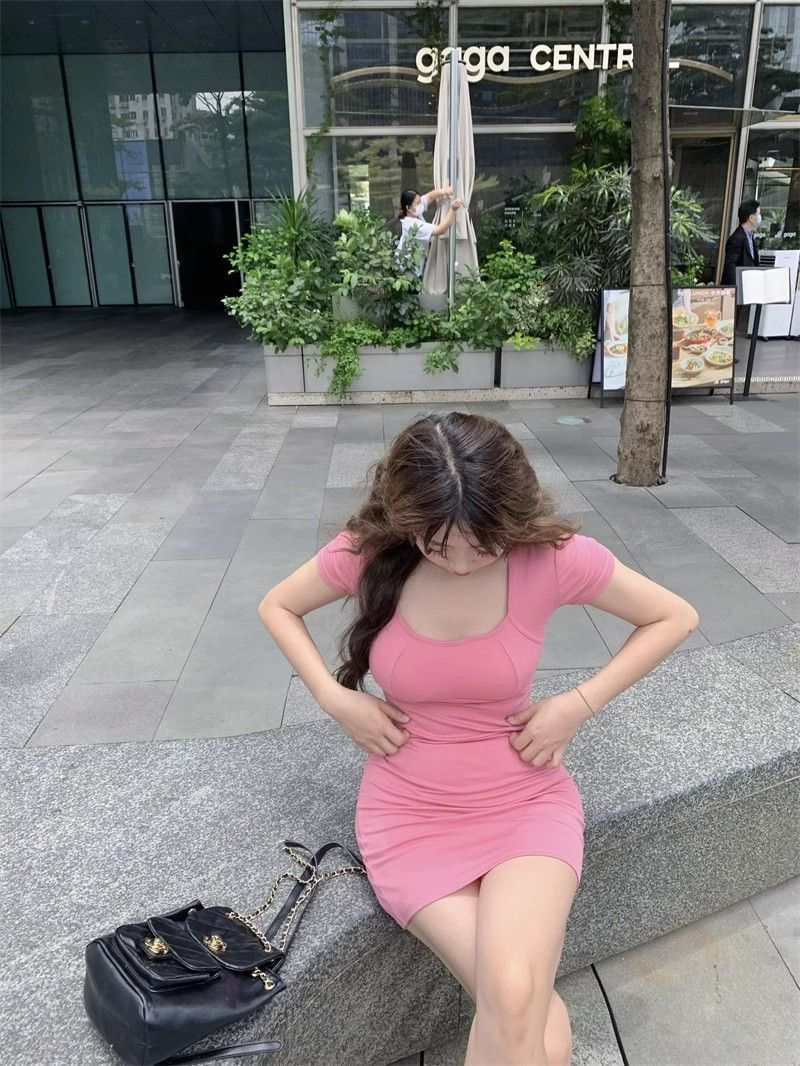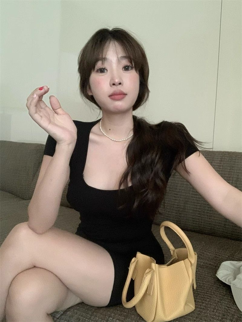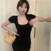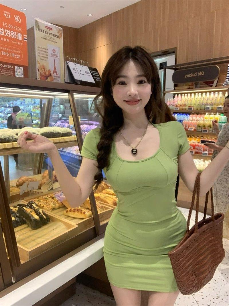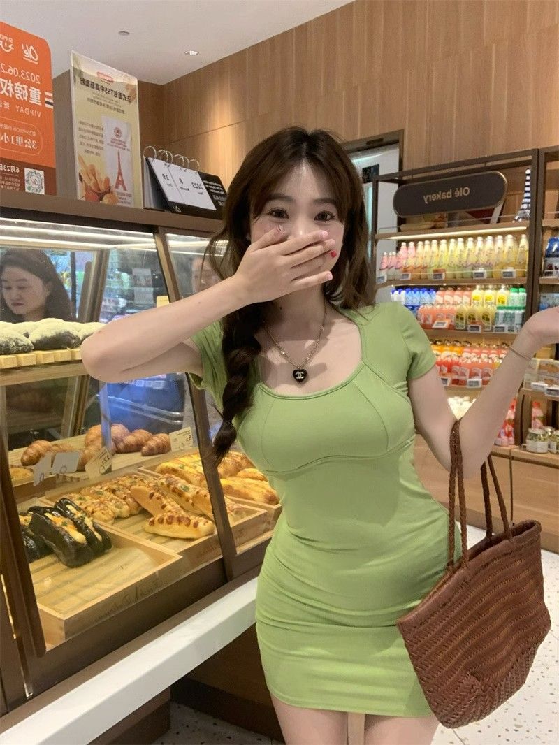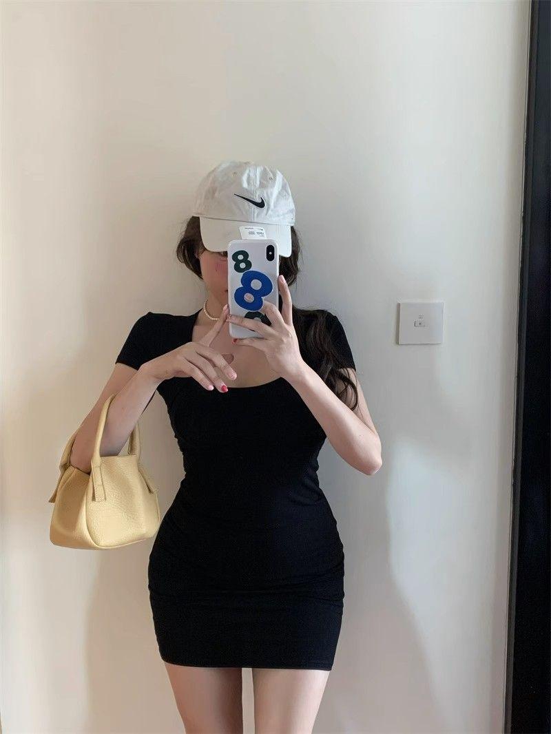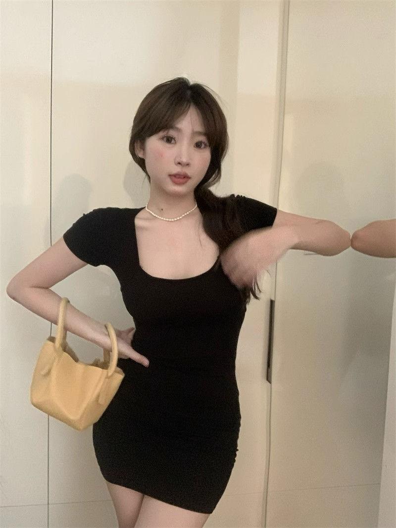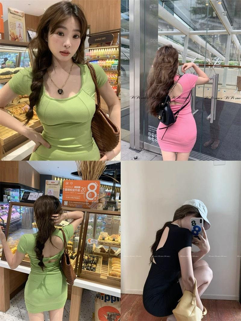 Deseo Puro Espalda Hueca Cruz Manga Corta Vestido Verano 2025 Nuevo Estilo Ajustado Falda Cadera