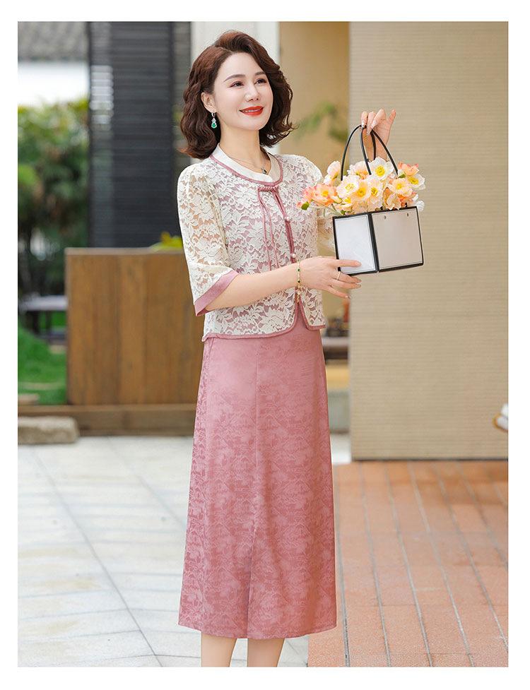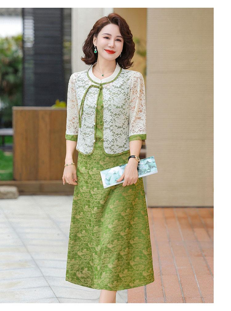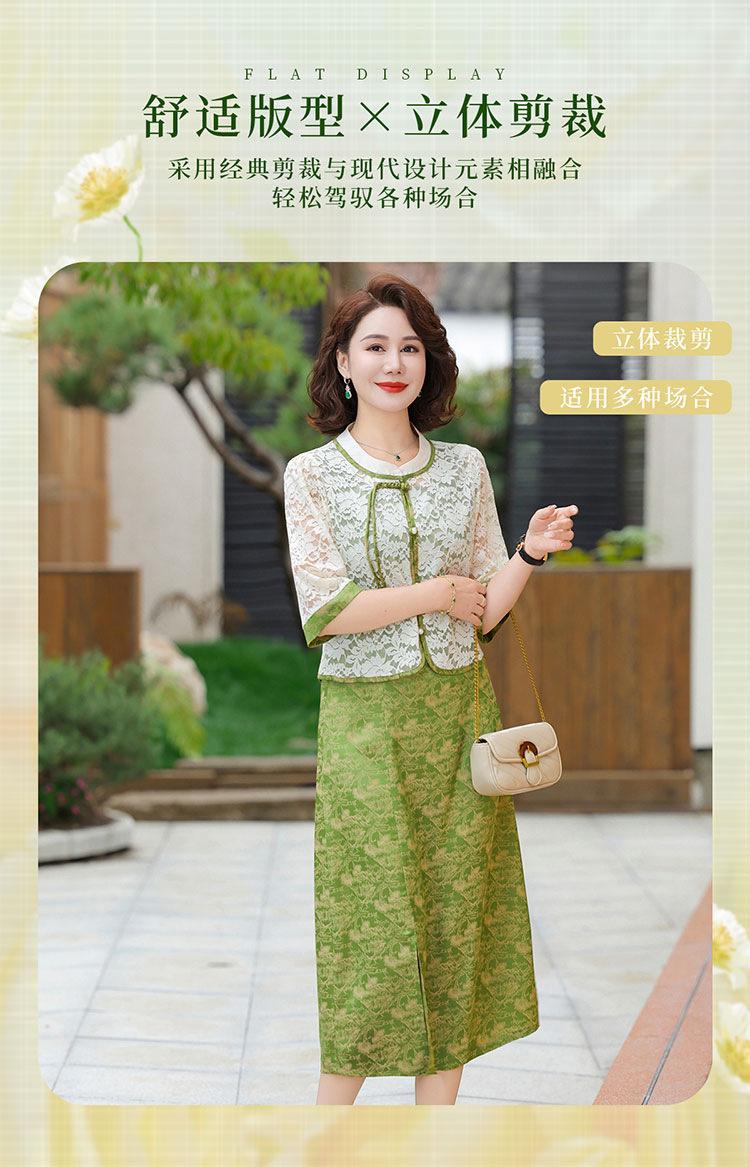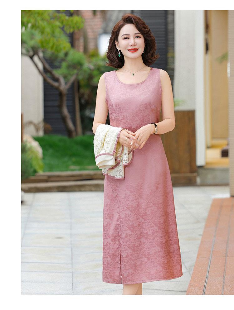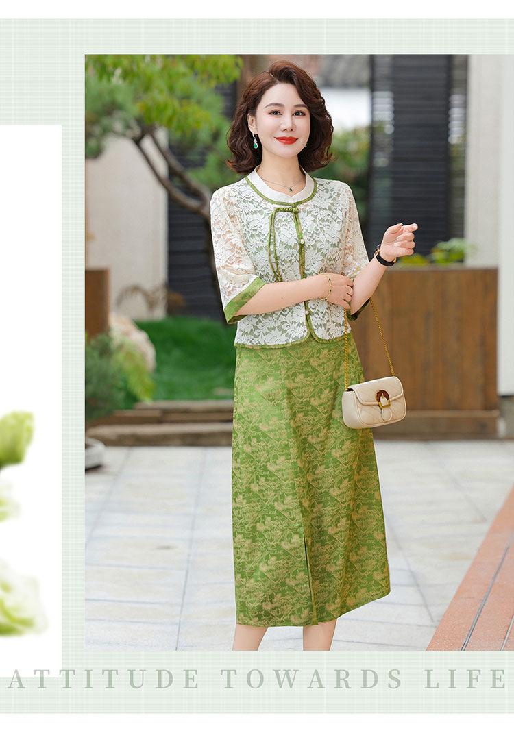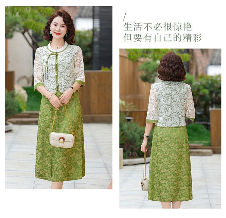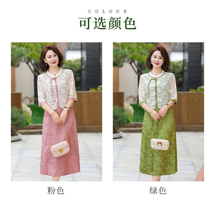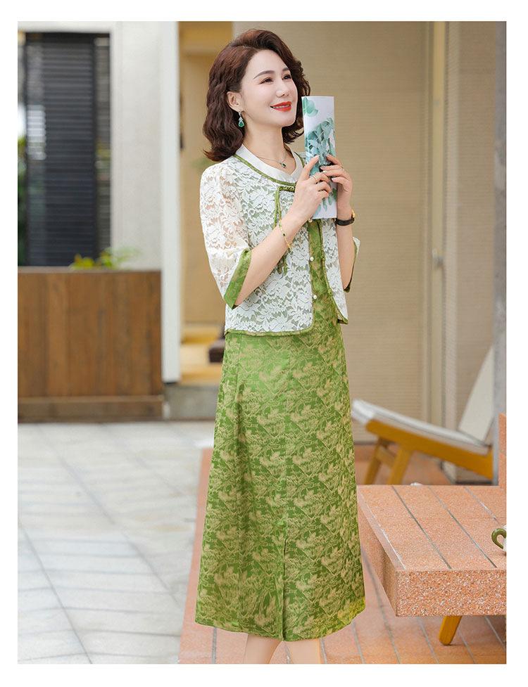 Vestido de Madre de Nuevo Estilo Chino, Estilo Verano, Noble, Señora de Mediana Edad, Cárdigan de Estilo Chino, Chaleco y Falda Traje de Dos Piezas