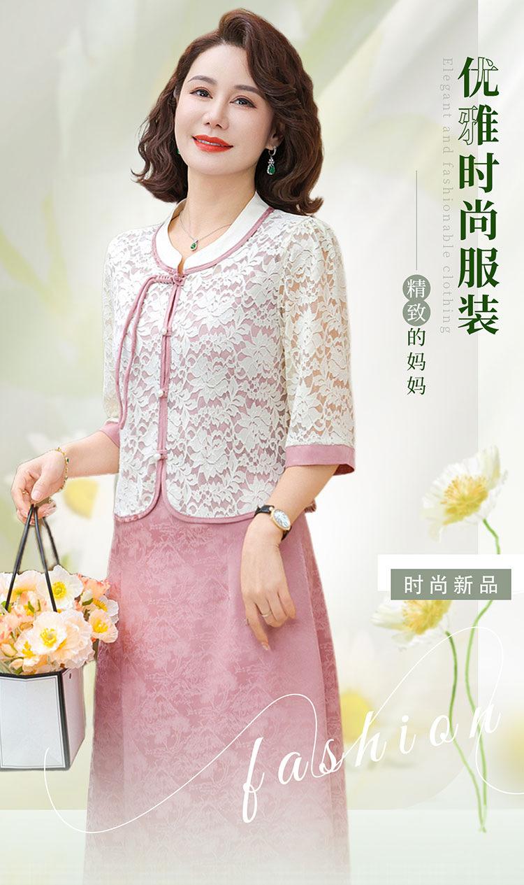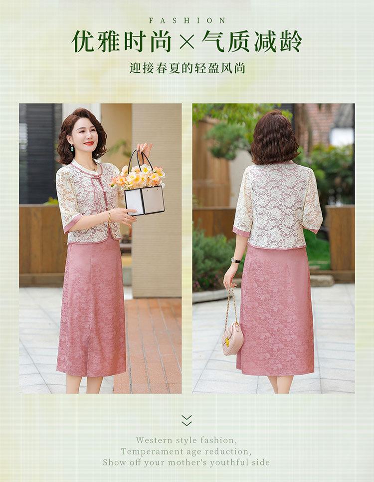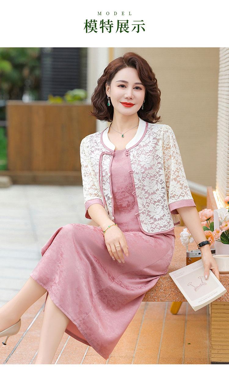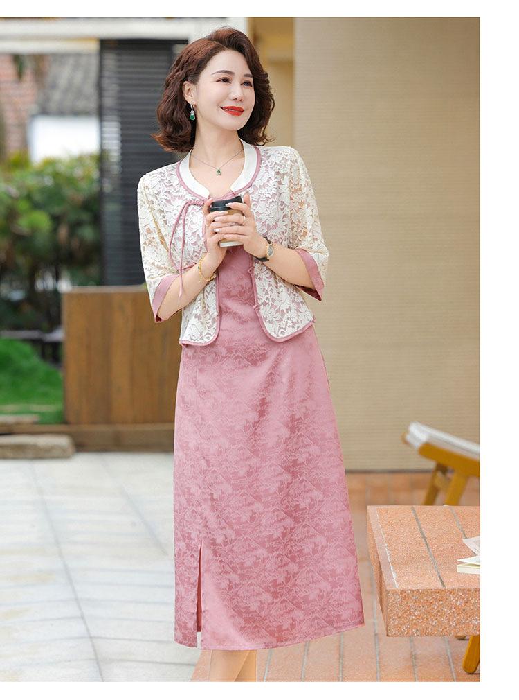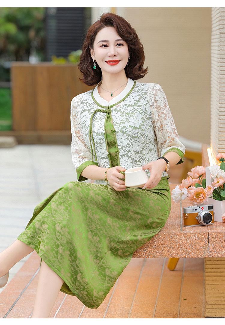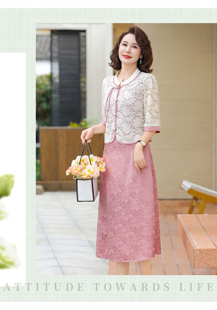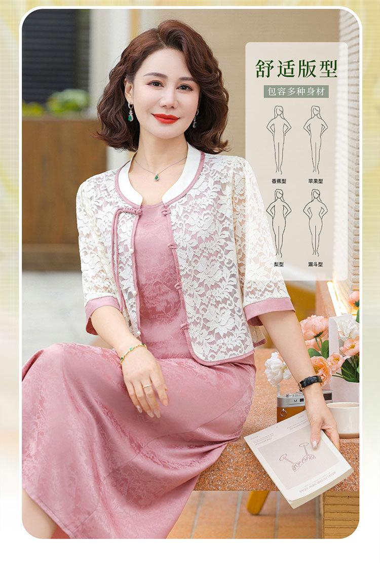 Vestido de Madre de Nuevo Estilo Chino, Estilo Verano, Noble, Señora de Mediana Edad, Cárdigan de Estilo Chino, Chaleco y Falda Traje de Dos Piezas