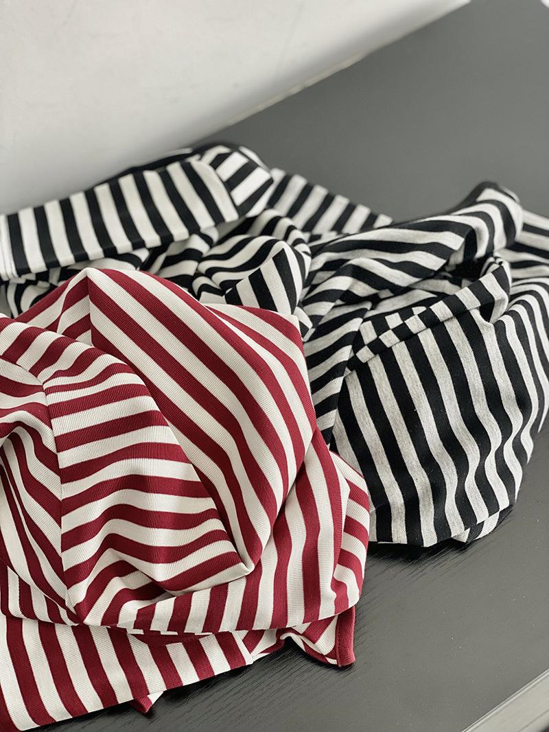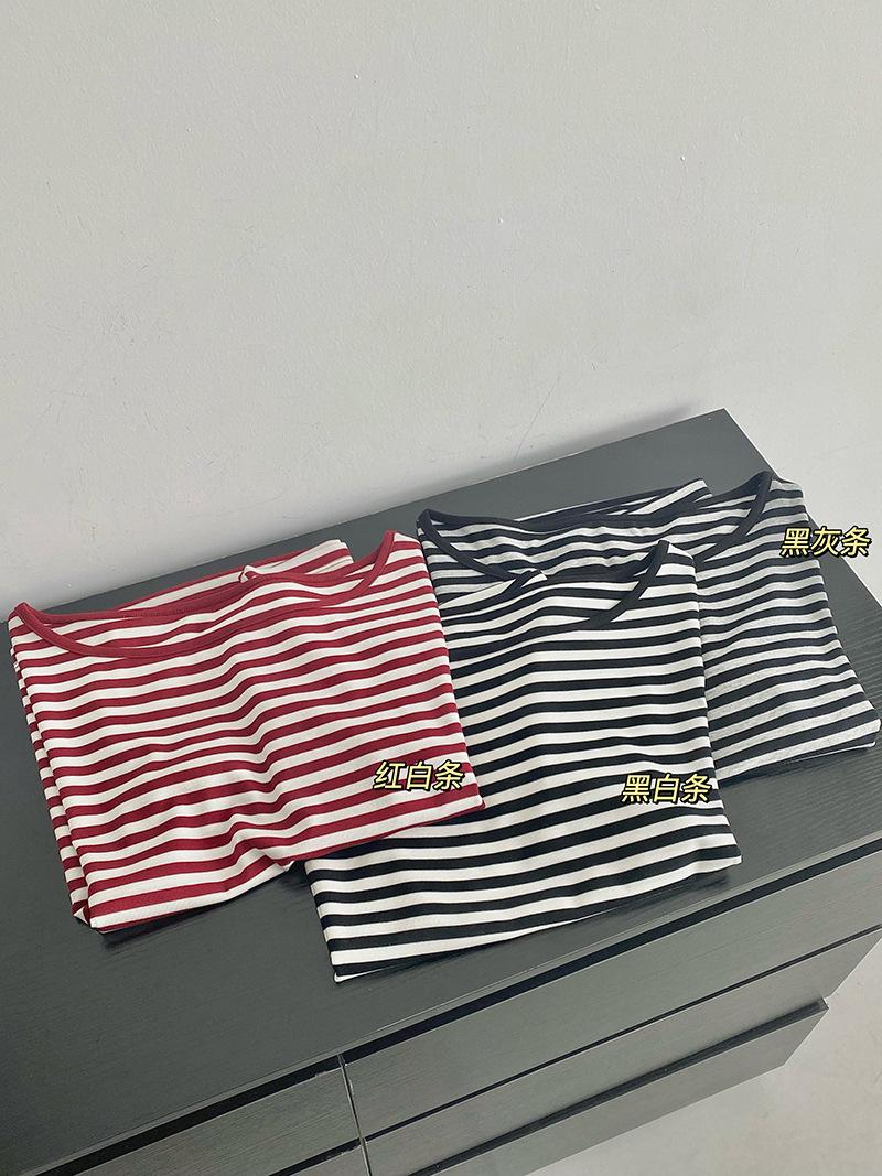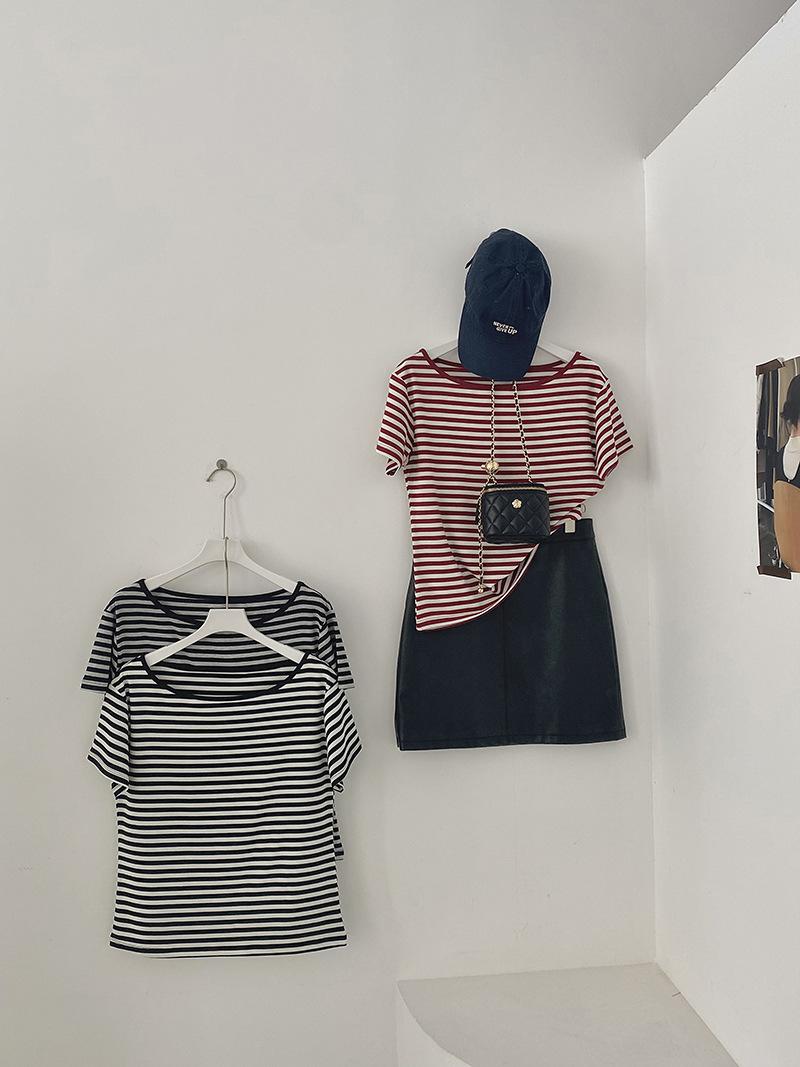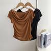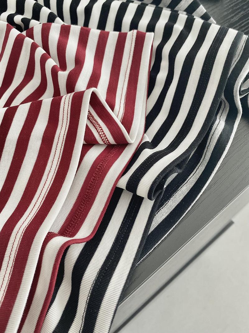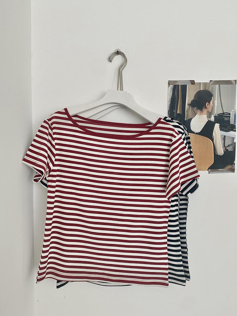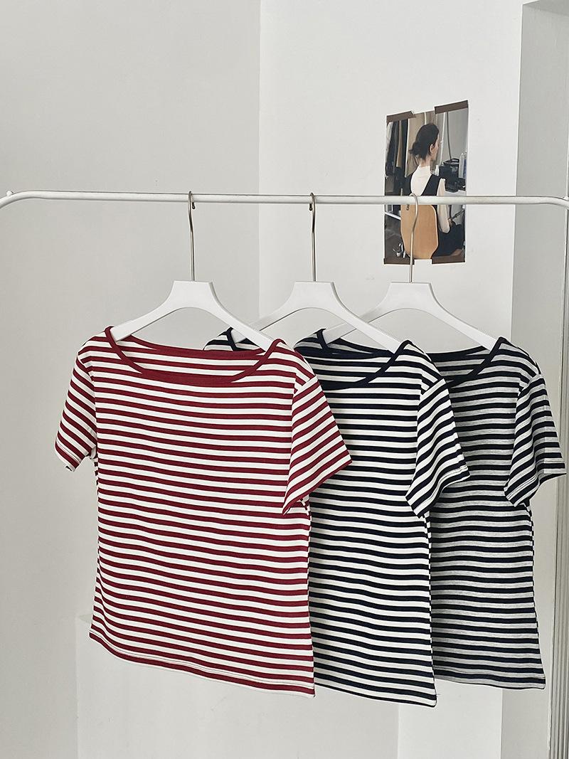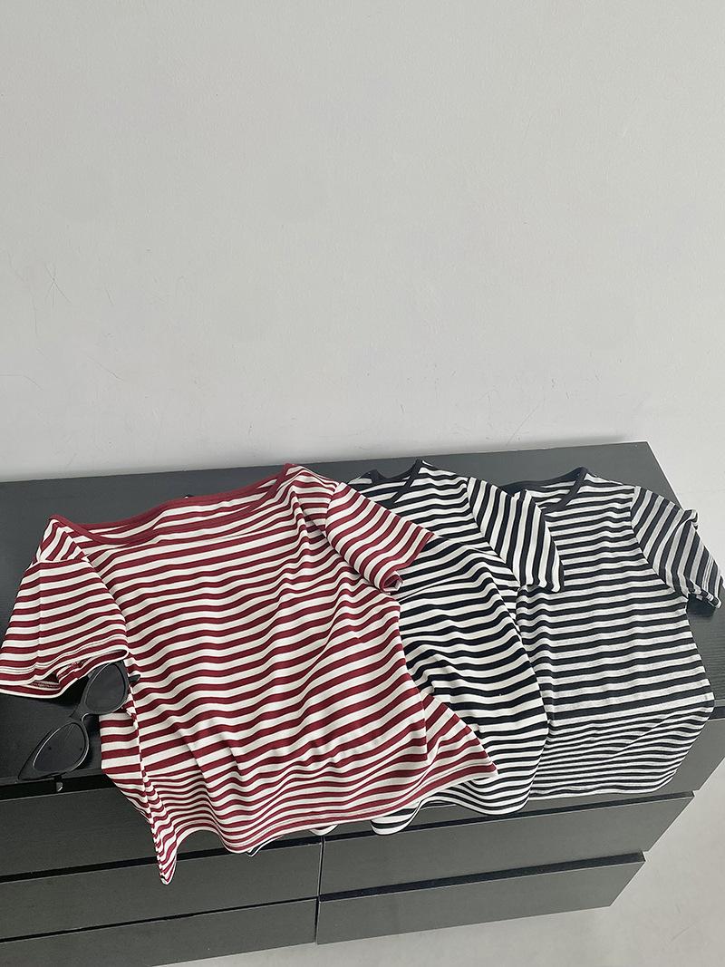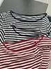 Playera de Lyocell a Rayas con Hombros Descubiertos y Manga Corta Sencilla Adelgazante Moda Versátil Transpirable Top para Mujer