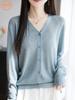Cardigã Tricotado Fino de Manga Comprida com Decote em V Feminino Verão Simples Combina com Tudo Xale Casaco Lã Penteada Tencel Linho Camisa Protetora Solar