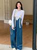 2025 Nuevo Estilo de Otoño Moda Simple y Elegante Estilo Occidental Reductor de Edad Pantalones Vaqueros de Tirantes de Pierna Ancha