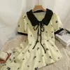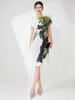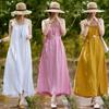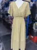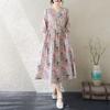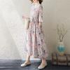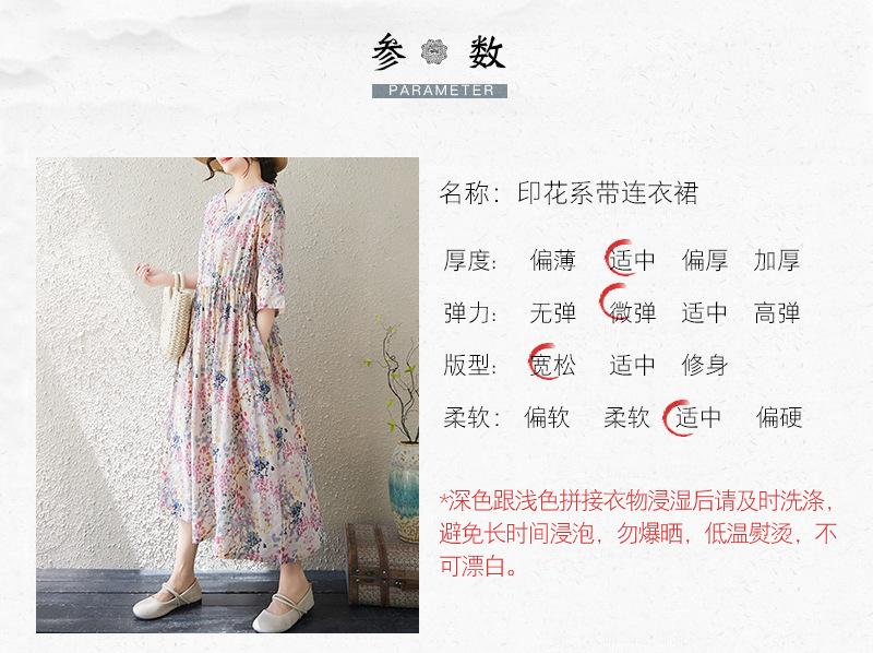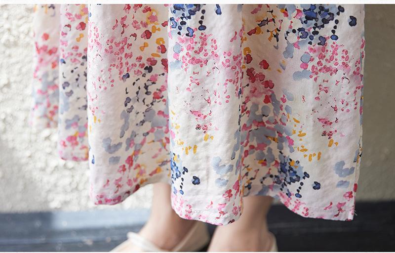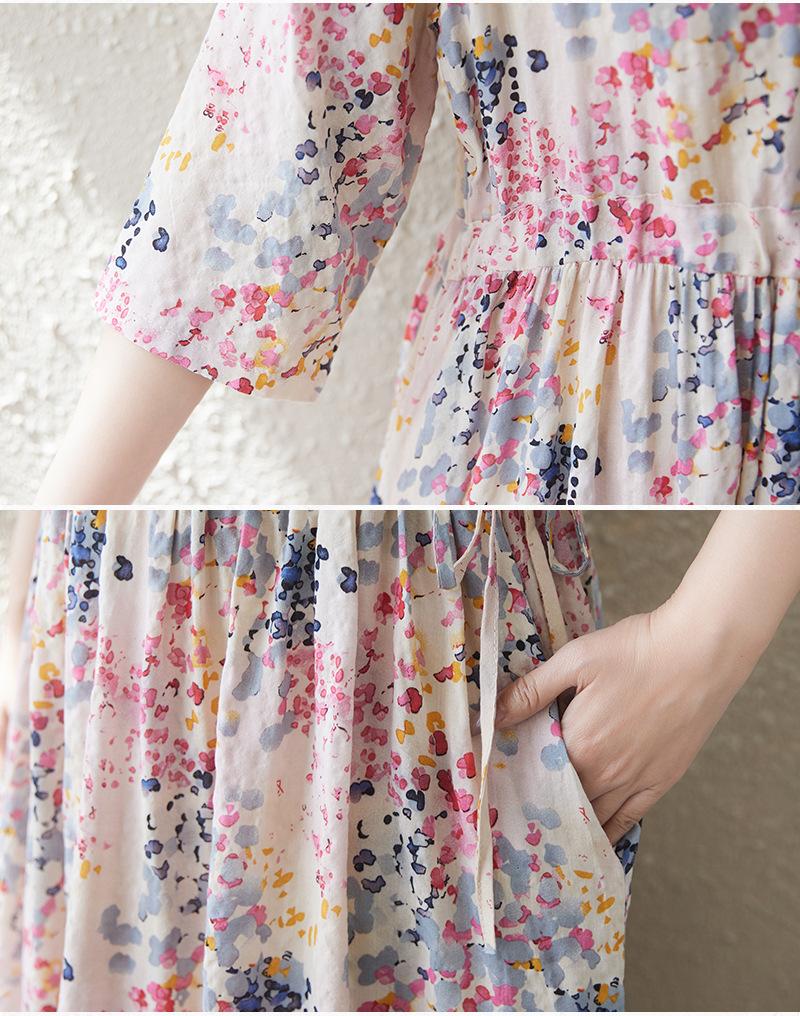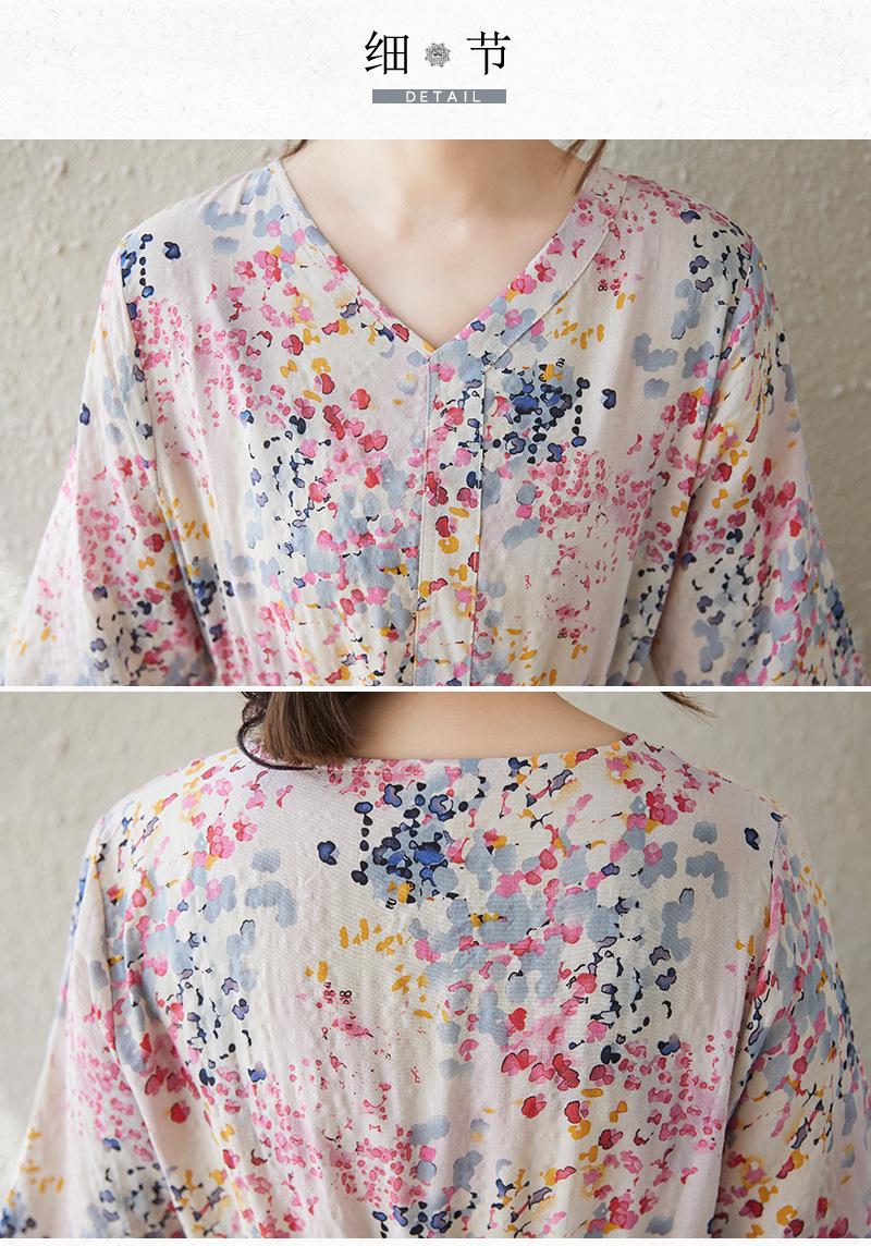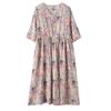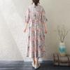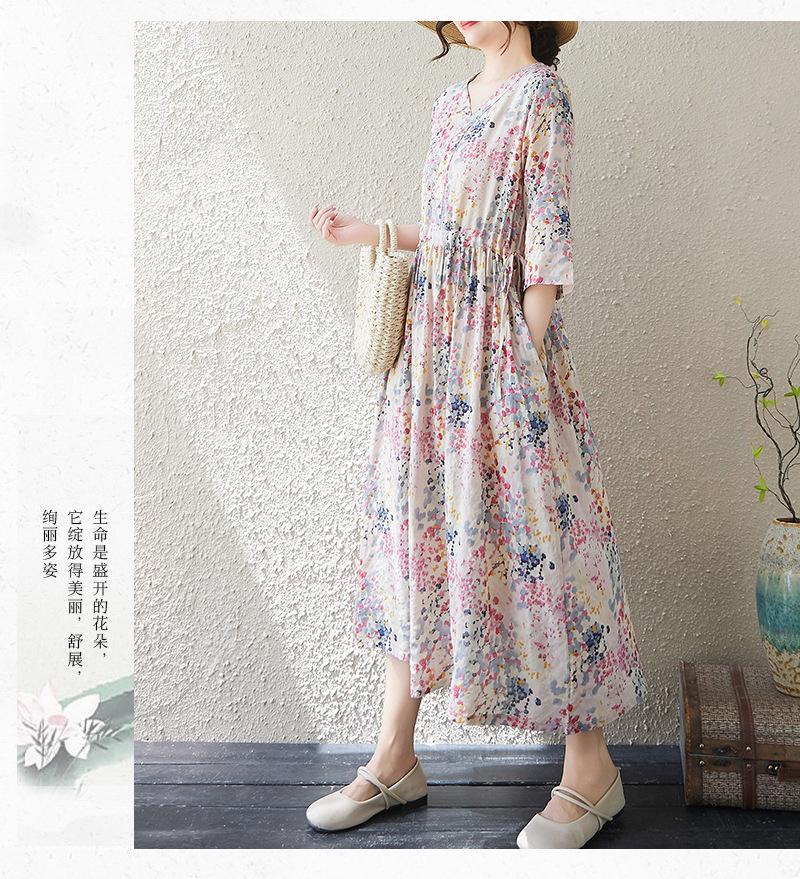 Vestido Retro 2025 para Mujer Cuello en V Cintura Adelgazante Look Falda Versátil Largo Medio Vestido de Té de Verano Bata Estampada Artística