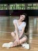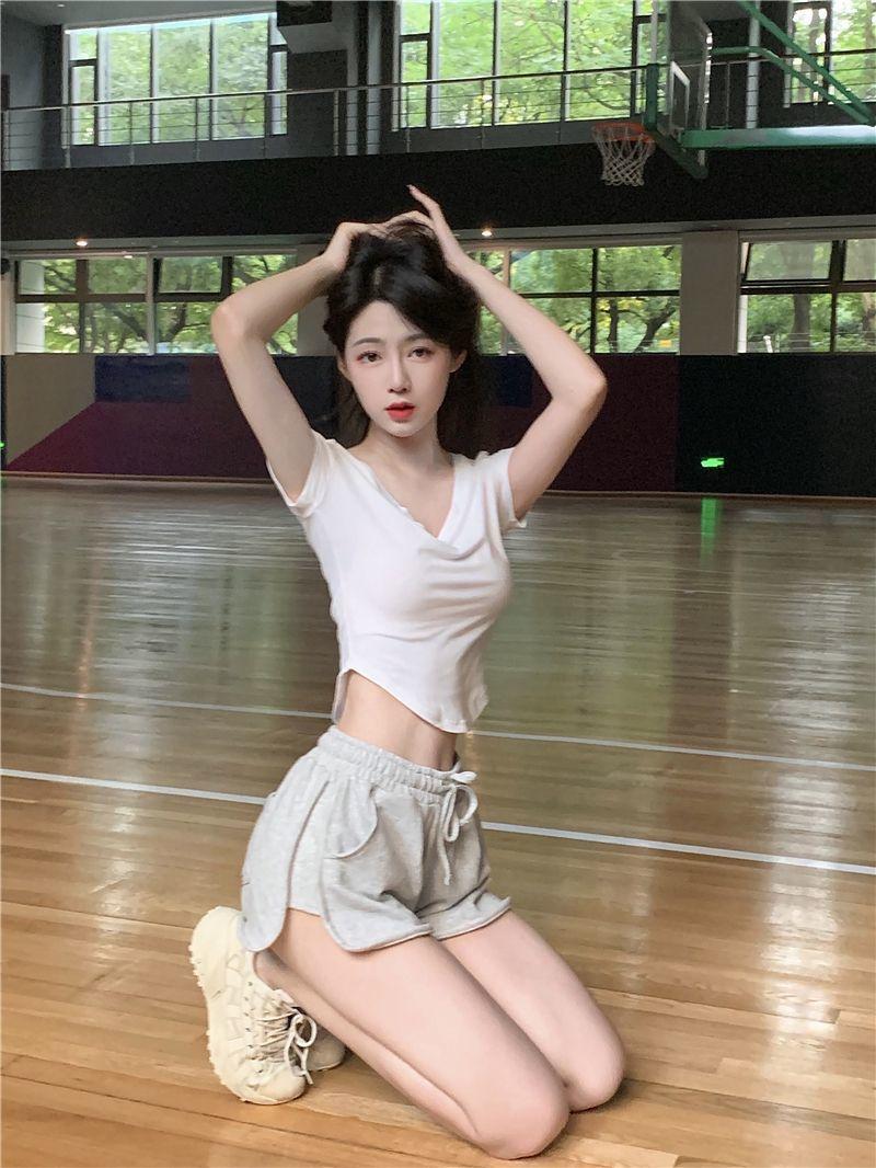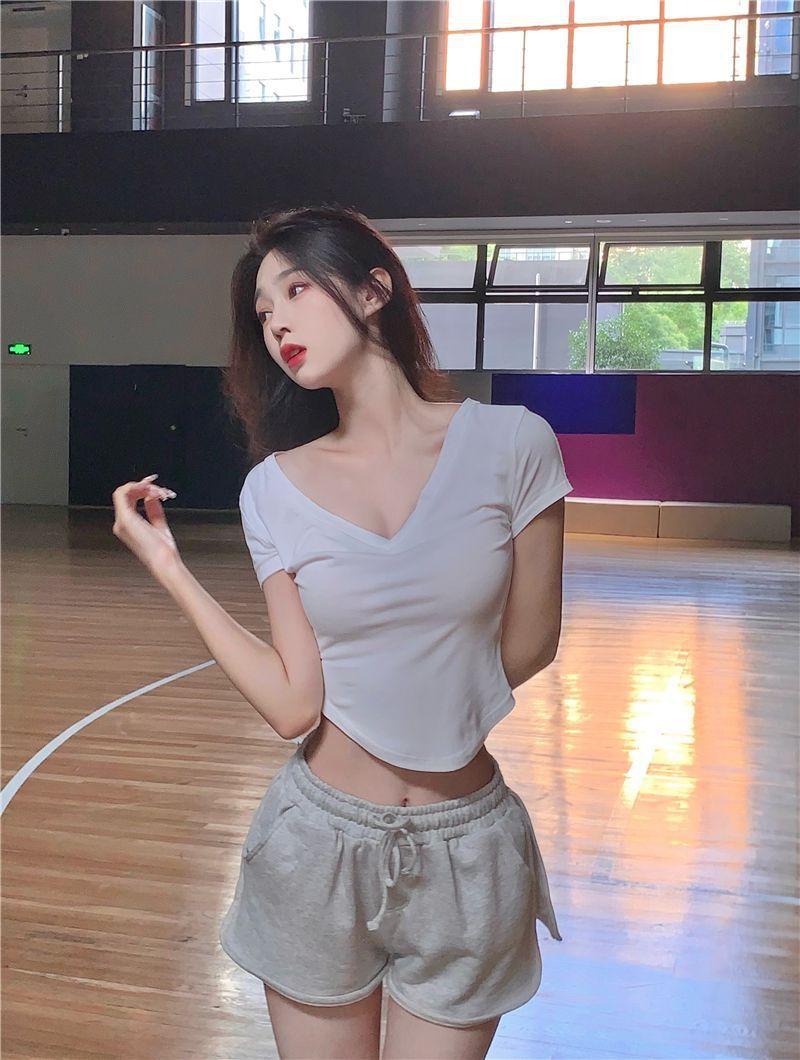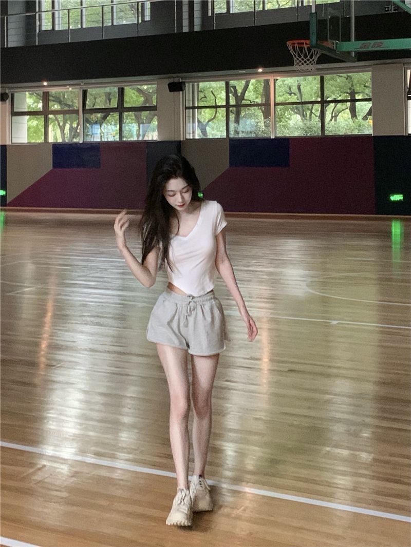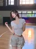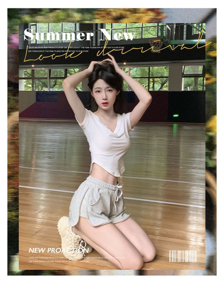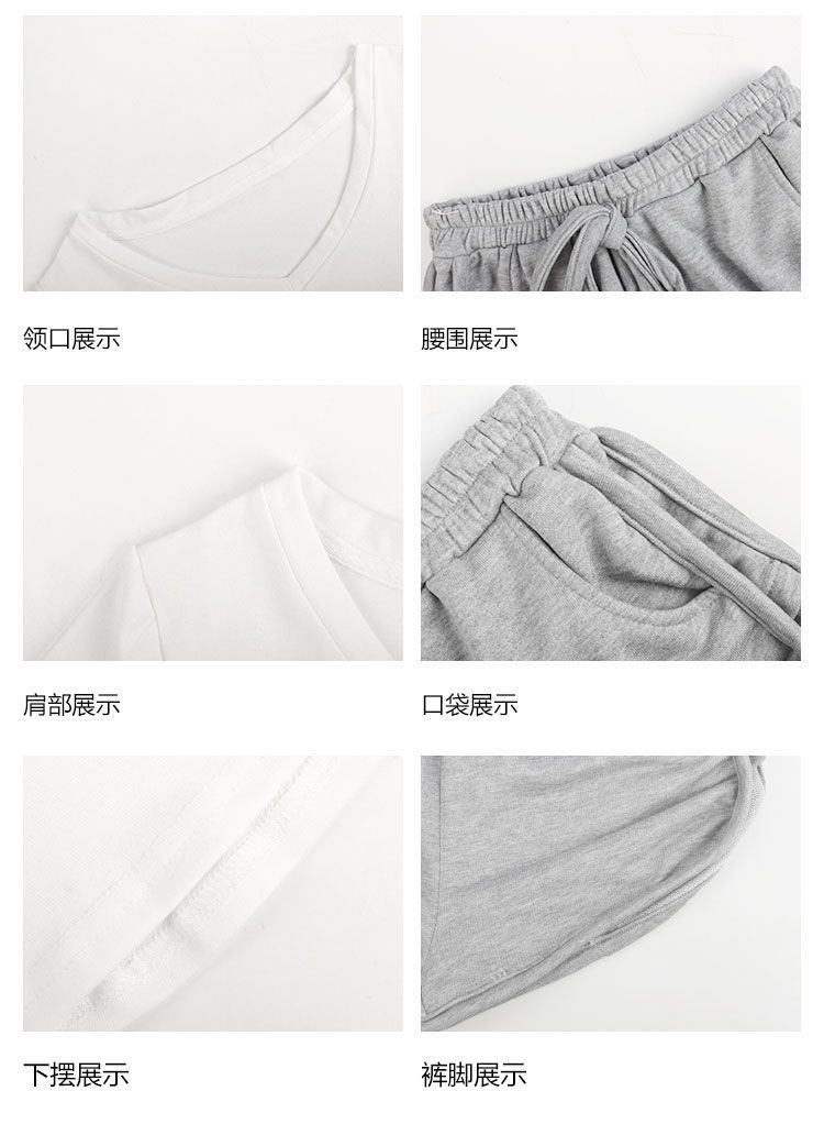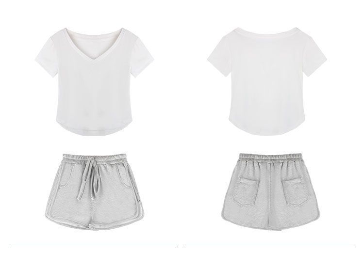 Traje de estilo deportivo de verano de puro deseo Cuello en V Hombro Adelgazante Moda Top Pantalones cortos casuales de cintura suelta para mujer Ins