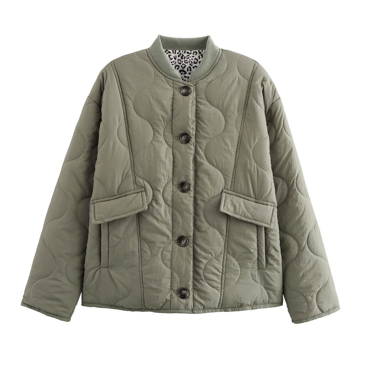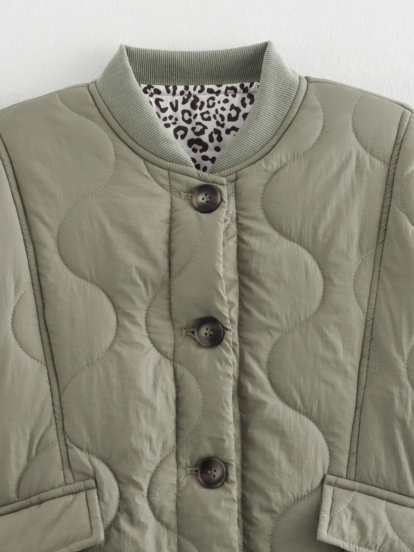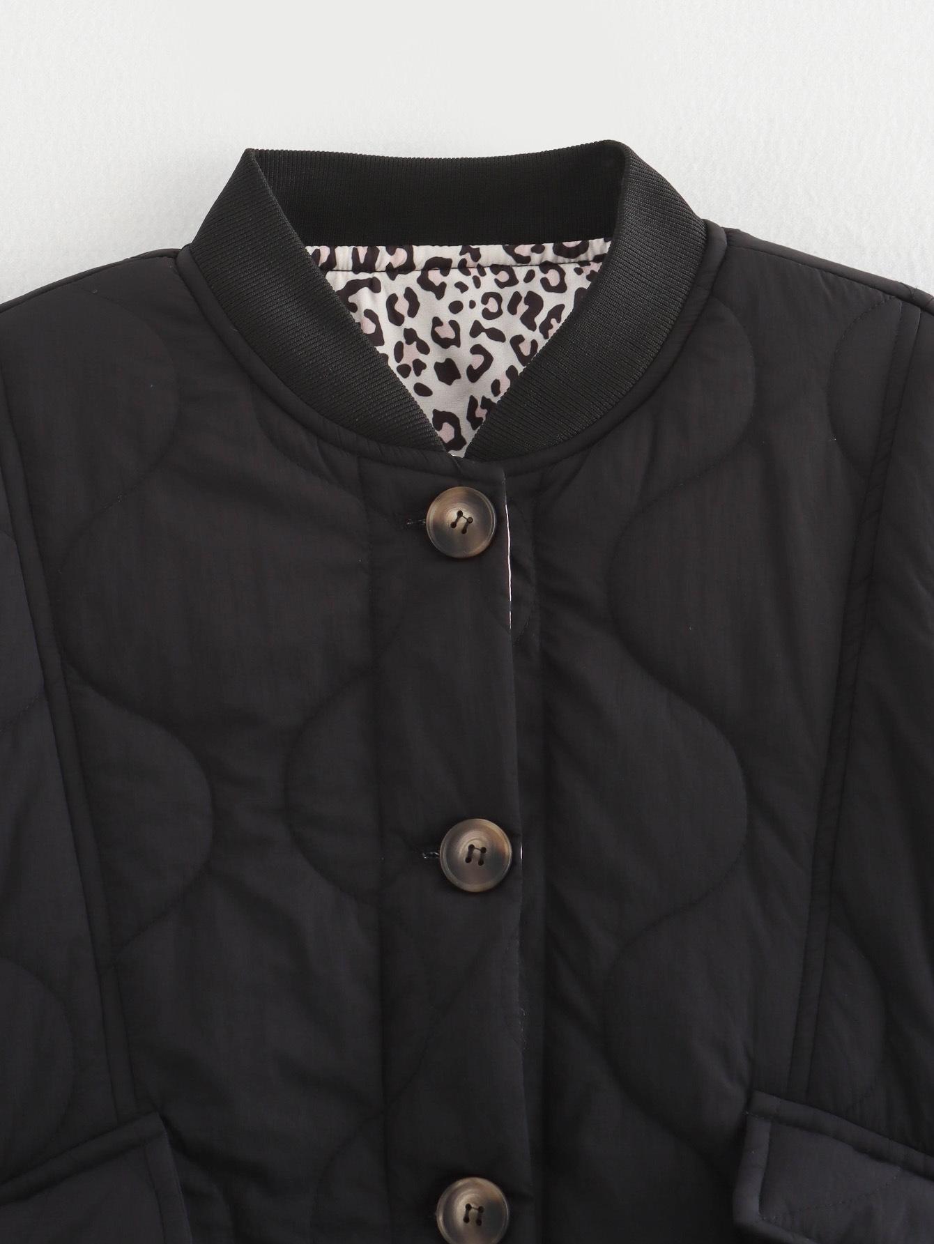 Ropa de Otoño para Mujer Nueva 2024 Estilo Europeo y Americano Moda Simple Versátil Acolchada Estampado de Leopardo Algodón Abrigo