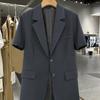 2025 Nuevo Estilo de Verano Beige Chaqueta de Traje de Moda con Cuello en V de Manga Corta y un Botón para Mujer Estilo Coreano Look Adelgazante Top Versátil