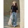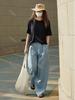 Verano Nuevo Estilo Coreano Perezoso Sencillo Cool Suéter de Cuello Redondo Cómodo Adelgazante Casual Top para Mujer
