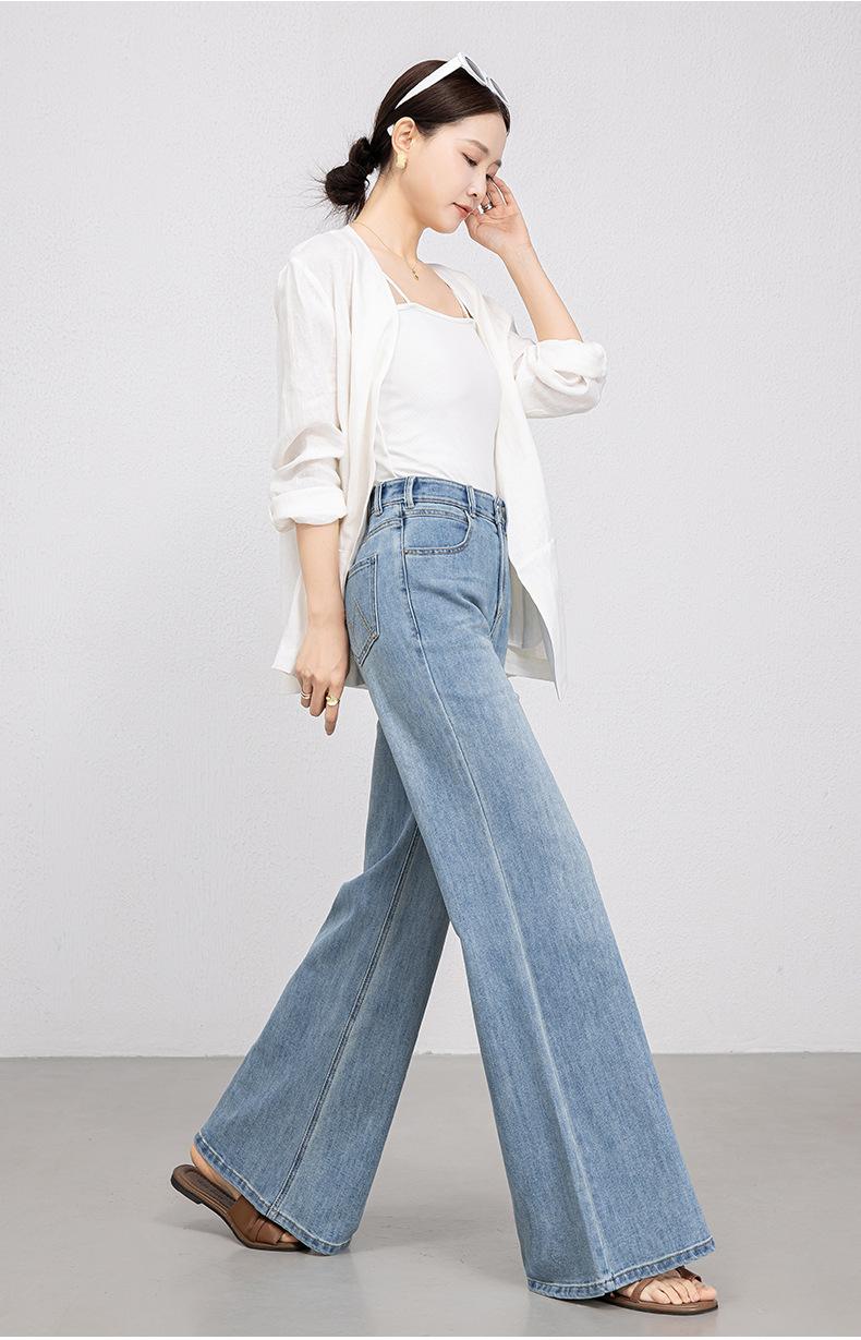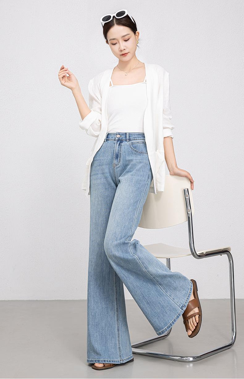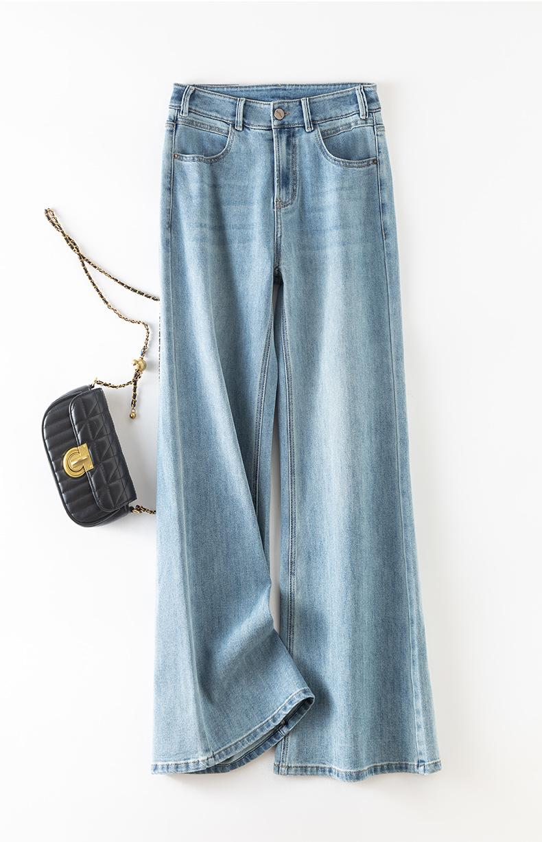 Si el micro-jean ligero y transpirable para mujer 2025 verano nuevo cintura alta pantalones acampanados caídos 8180